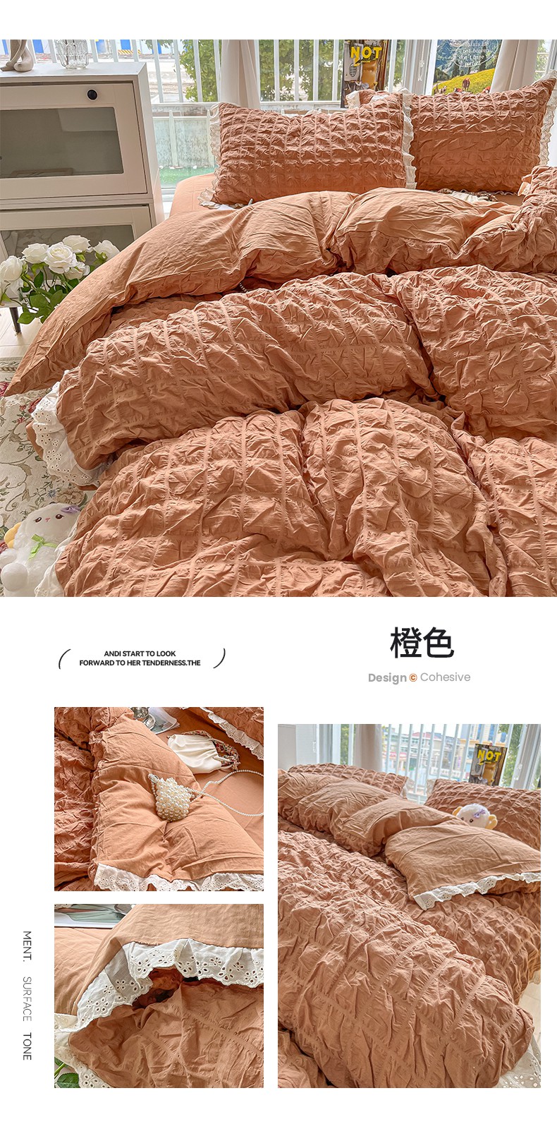 当前位置: 91家纺网 > 商品网购 > 床品套件 > 四件套 > 化纤普通四件套 > 盼季2023新款奶油风公主风小清新花边泡泡纱床上四件套宿舍三件套 花边泡泡纱-焦糖