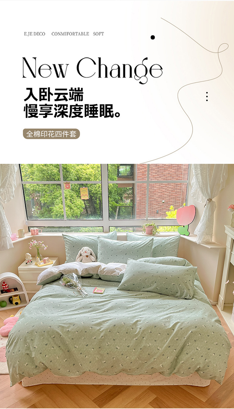 (总)柠馨 2025新款全棉纯棉印花花边床盖四件套-随心配系列,浅薇,点点,复苏,可爱森林,编织生活-绿,绮幻,素颜幽兰,馥郁,枝枝桃桃,半夏,风吟,花笺,梦影,山觅,山奈,星觅,烟雨,叶澜,云漫