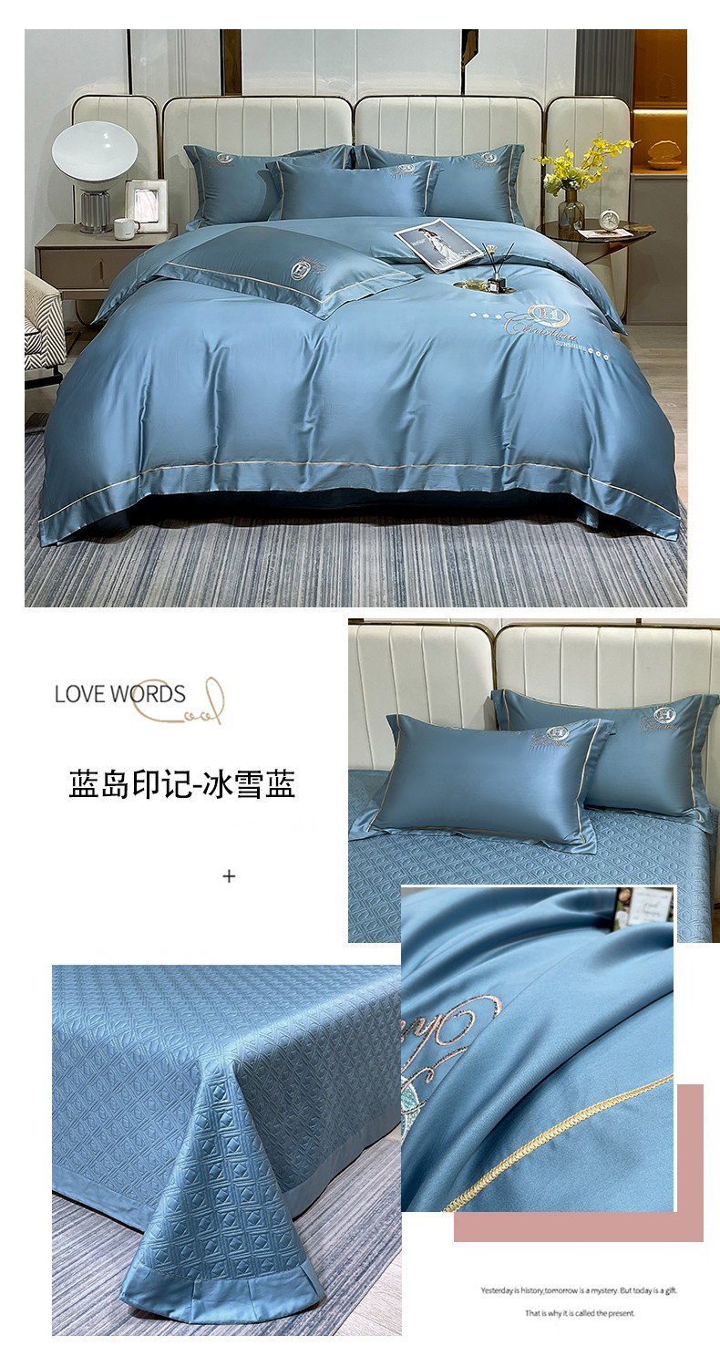 当前位置: 91家纺网 > 商品网购 > 床品套件 > 四件套 > 长绒棉四件套 > 小时代家纺 2023新款60s新疆长绒棉床盖四件套 蓝岛印记-冰雪蓝
