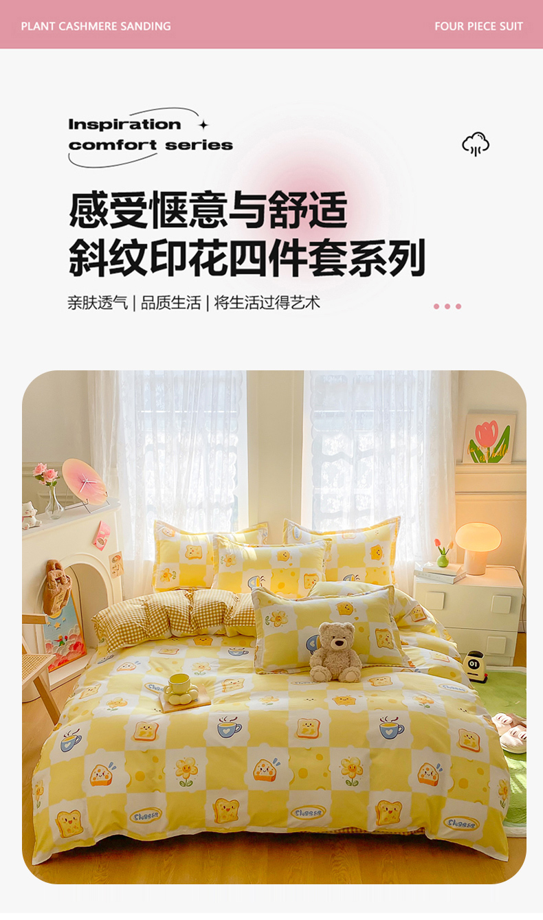 当前位置: 91家纺网 > 商品网购 > 床品套件 > 四件套 > 化纤普通四件套 > 简冠家纺 2023直播爆款北欧风亲肤植物羊绒磨毛四件套 午后奶茶