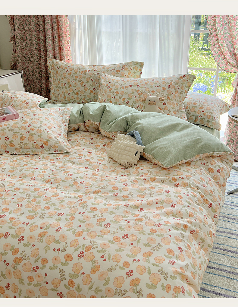 (总)盛馨2023新款全棉印花13372系列四件套,粉红浪漫粉,蜜语花香黄,慕斯言,四叶草,甜橘,幸福花语绿