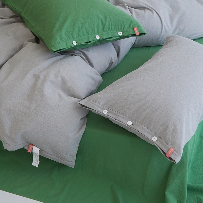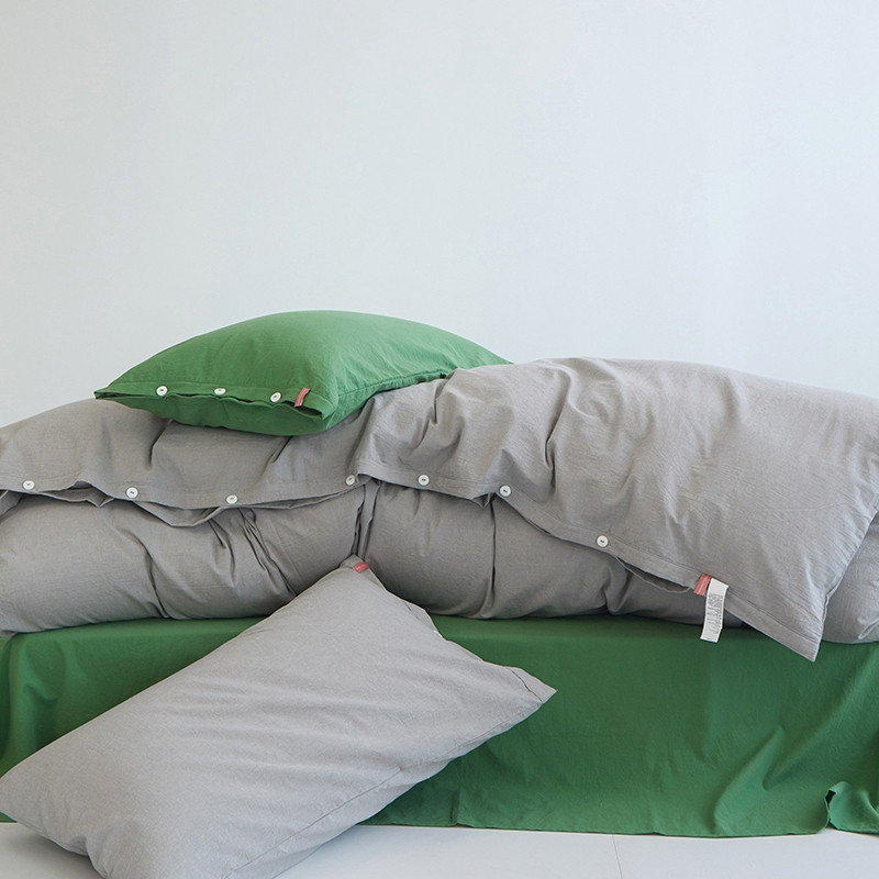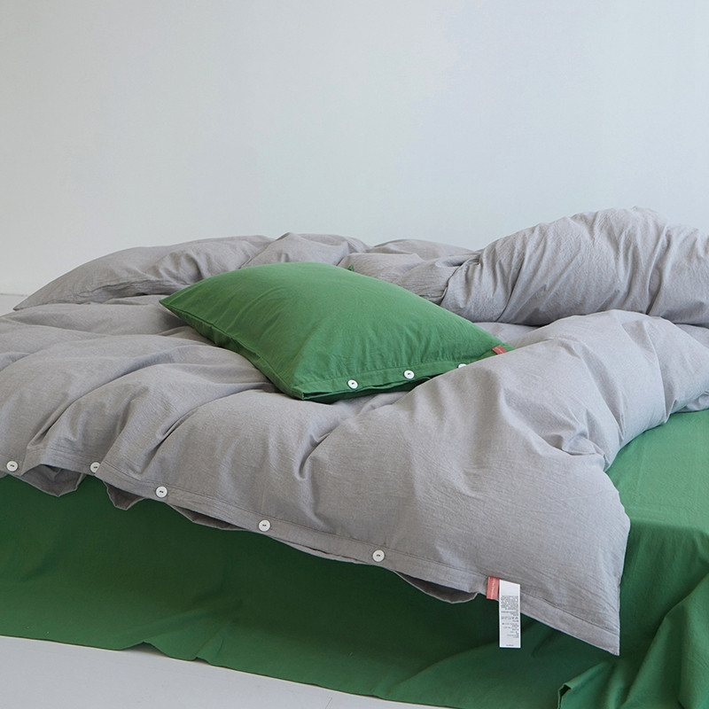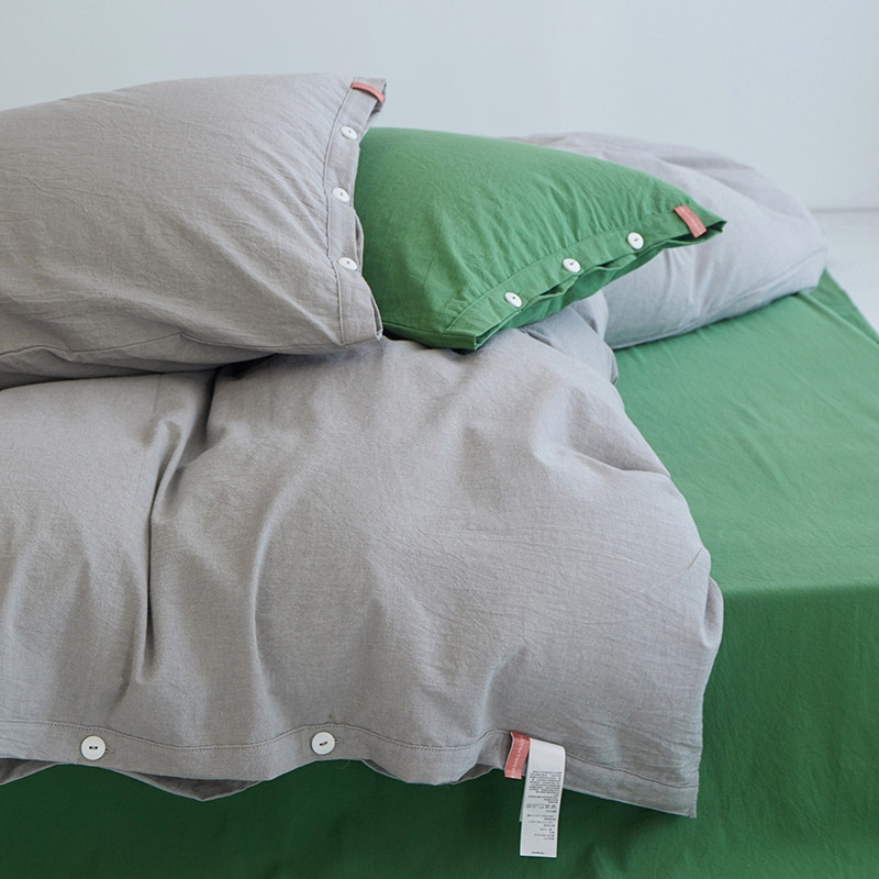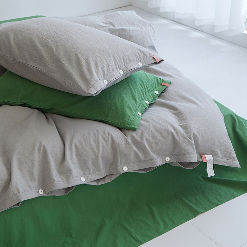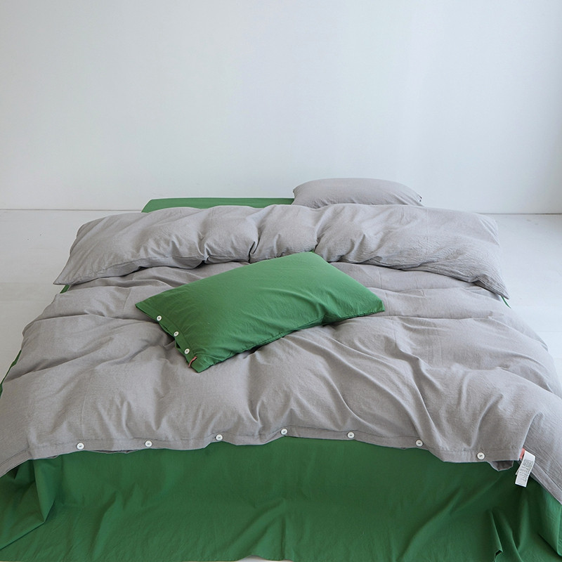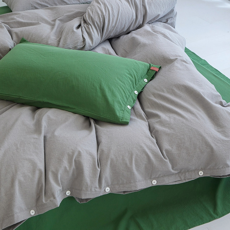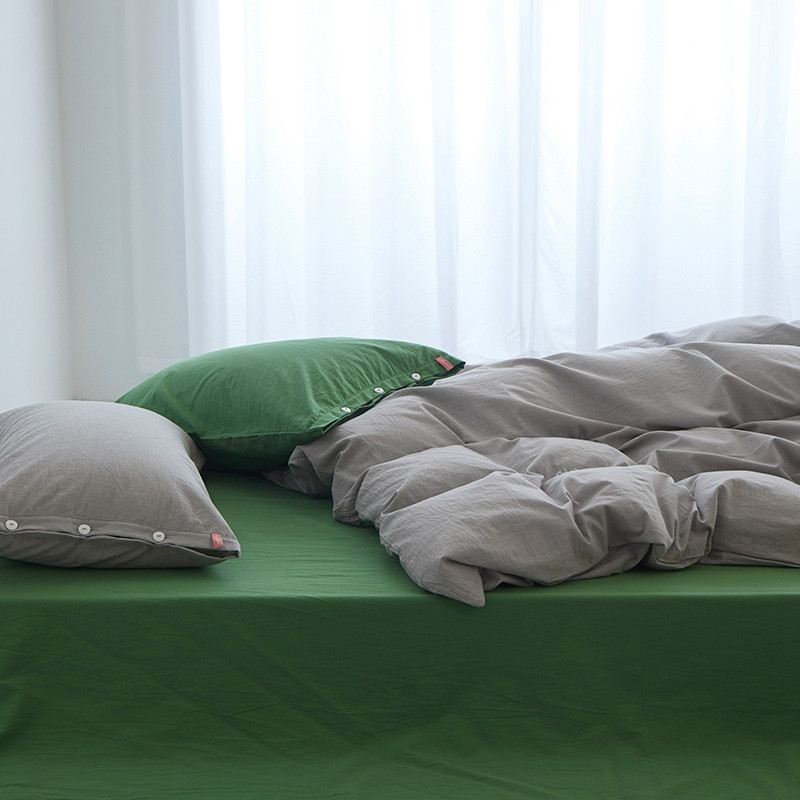 当前位置: 91家纺网 > 商品网购 > 床品套件 > 四件套 > 水洗棉四件套 > 安莱生活水洗棉全棉色经色纬高支高密纽扣款工艺混搭拼色四件套(系列二) 银灰+军绿(银灰军绿)