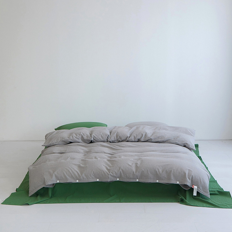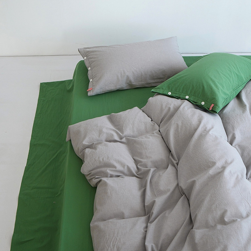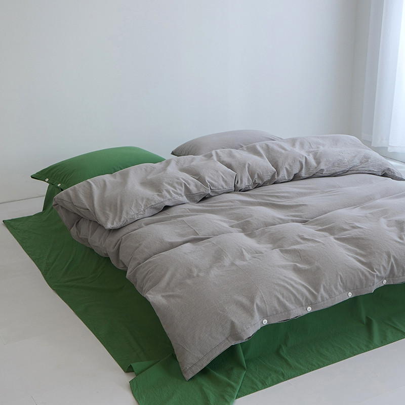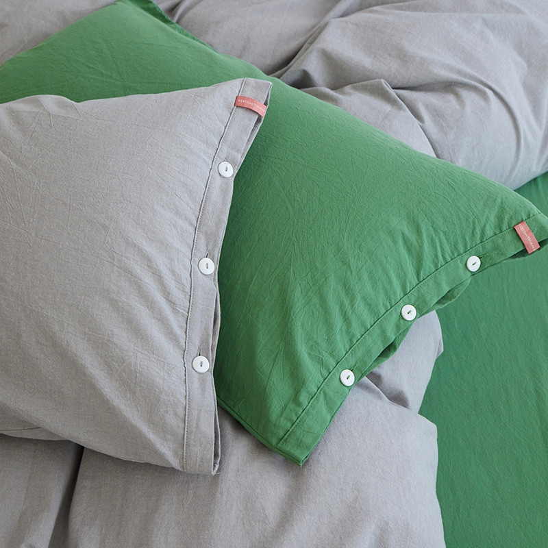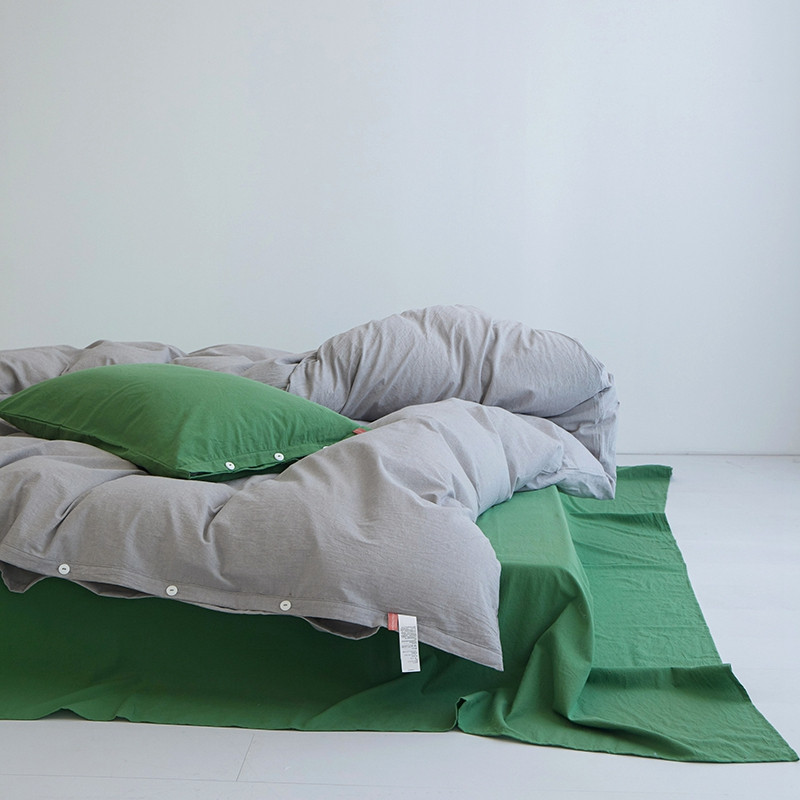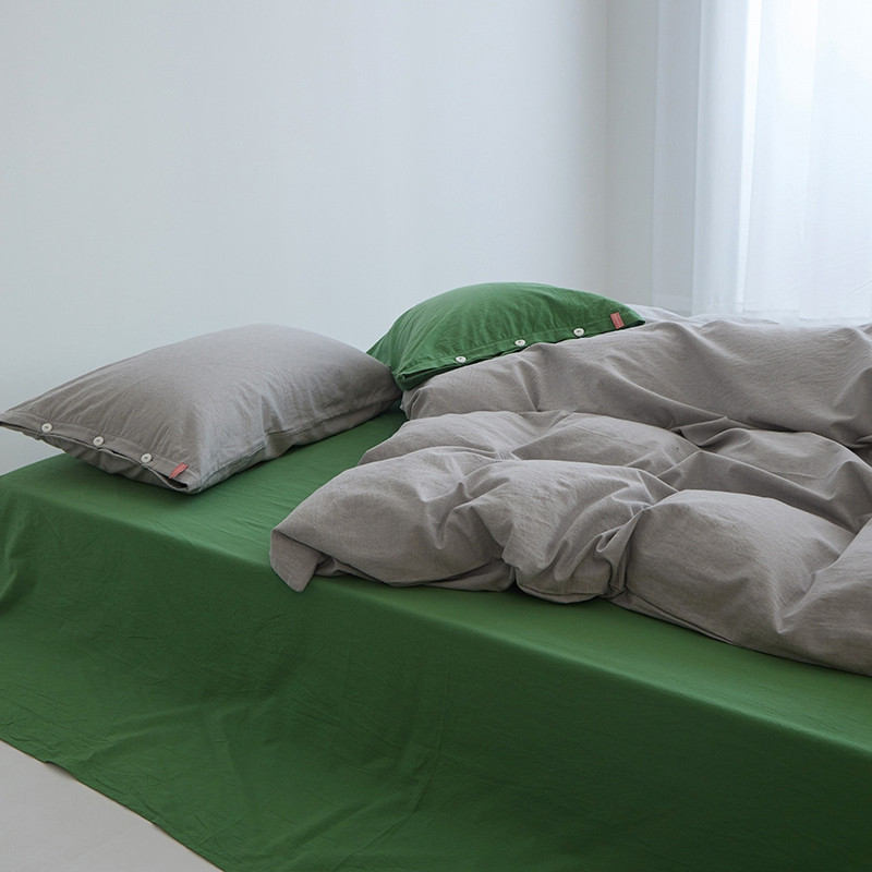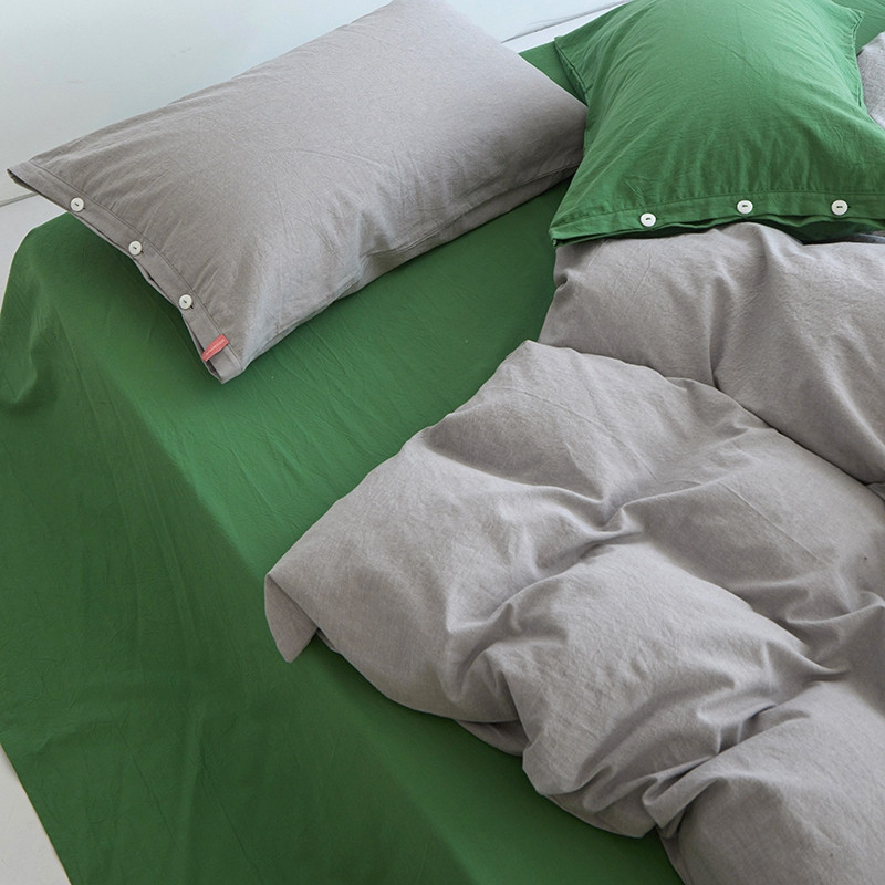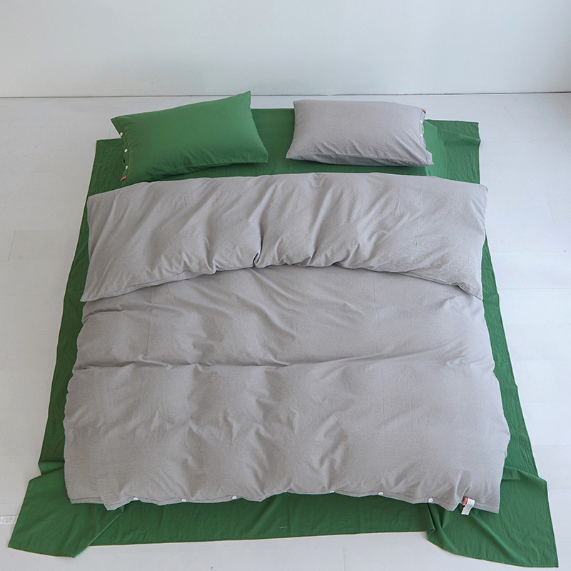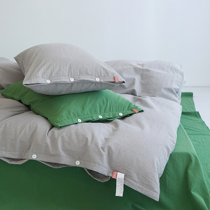 当前位置: 91家纺网 > 商品网购 > 床品套件 > 四件套 > 水洗棉四件套 > 安莱生活水洗棉全棉色经色纬高支高密纽扣款工艺混搭拼色四件套(系列二) 银灰+军绿(银灰军绿)