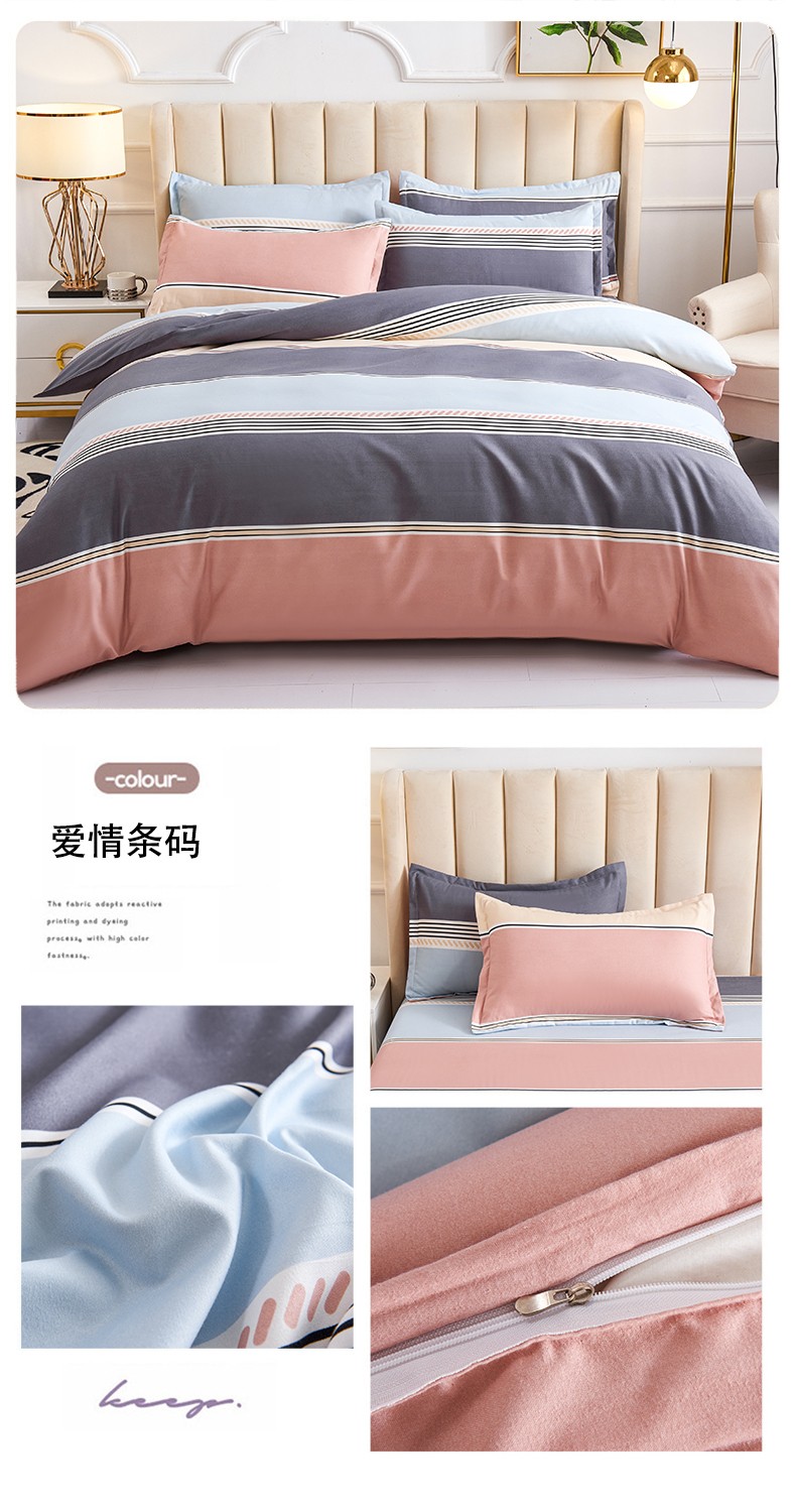 商品名称:鑫缘2025新款印花植物羊绒加厚磨毛四件套1.2米学生三件套 爱情条码
