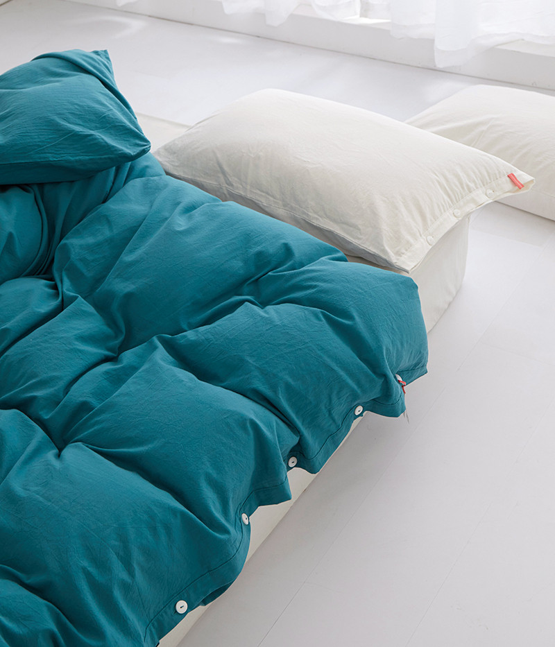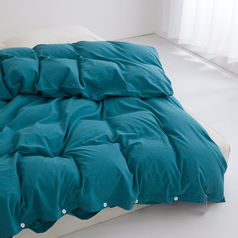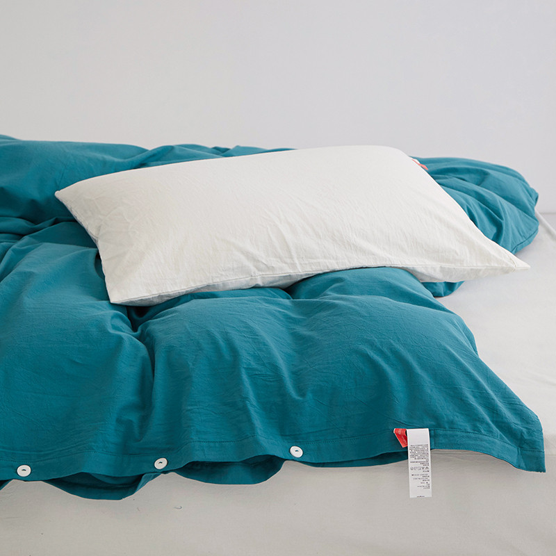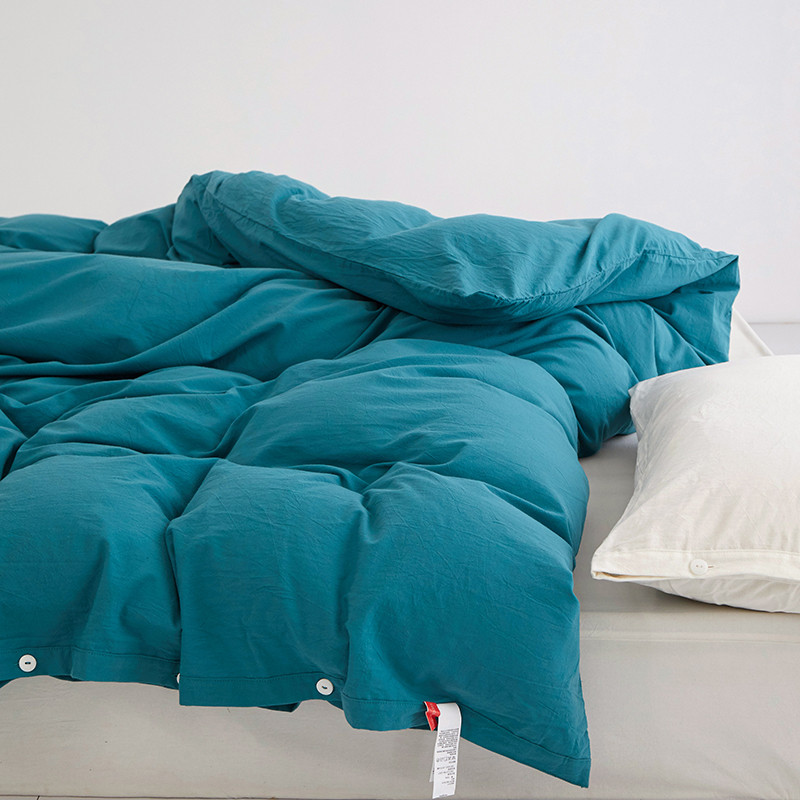 商品名称:安莱生活 2023新款水洗棉全棉色织高支高密纽扣款工艺单品被套 筠雾
