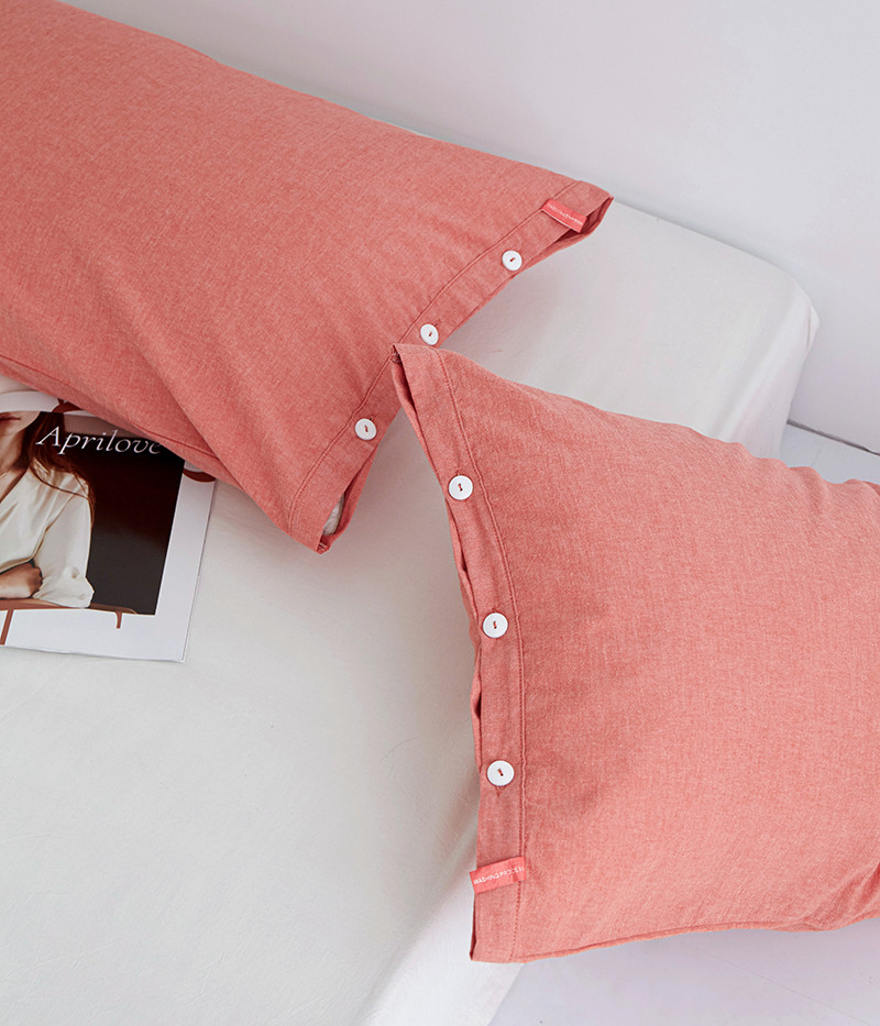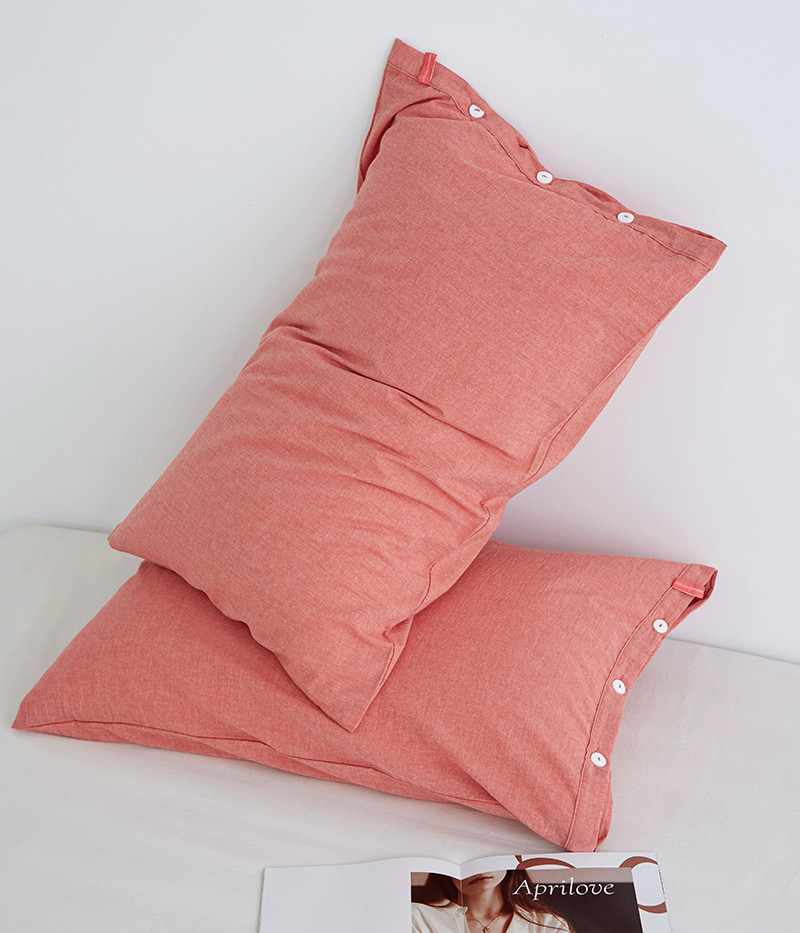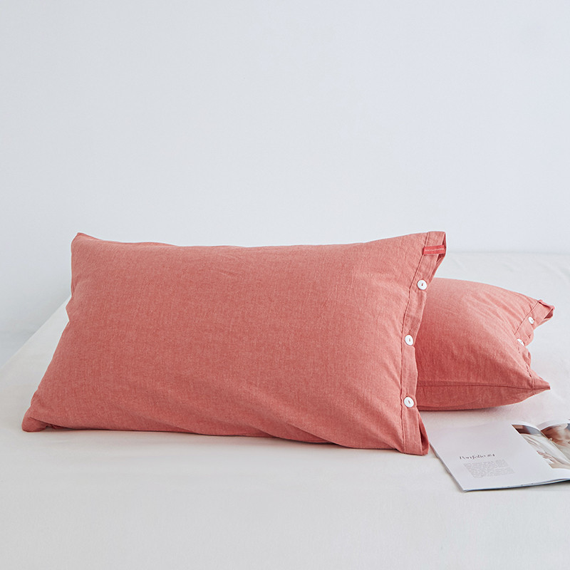 安莱生活 2023新款水洗棉全棉色织高支高密纽扣款工艺单品枕套 橘红