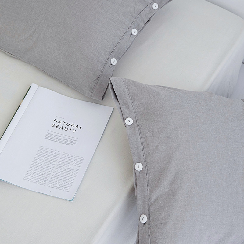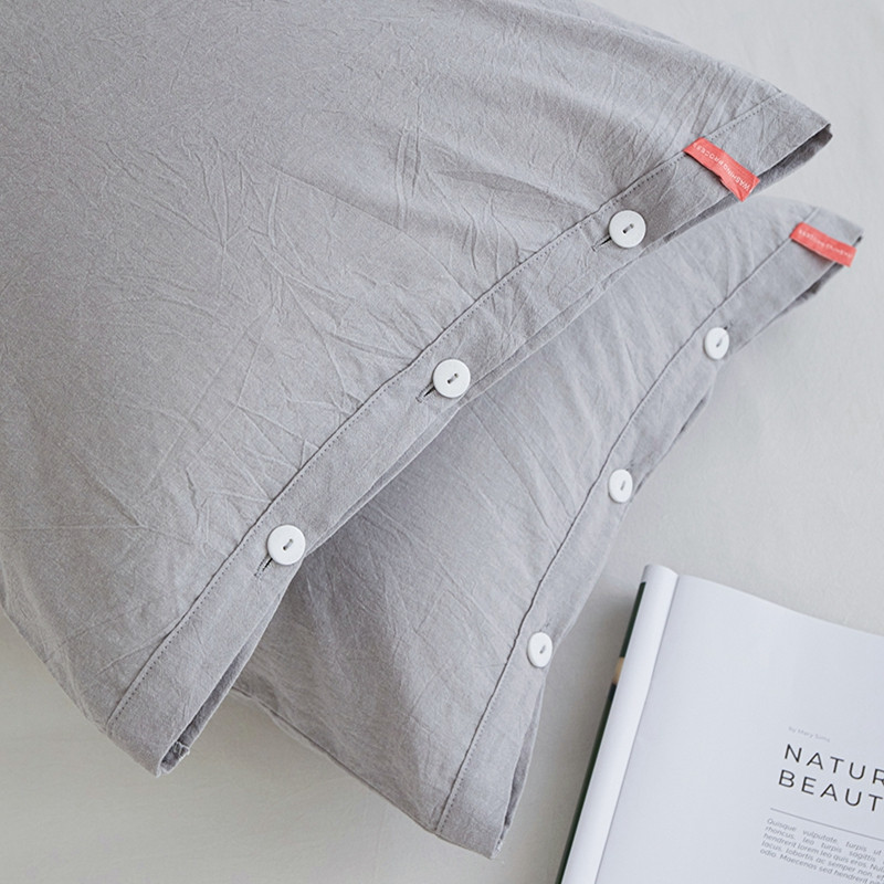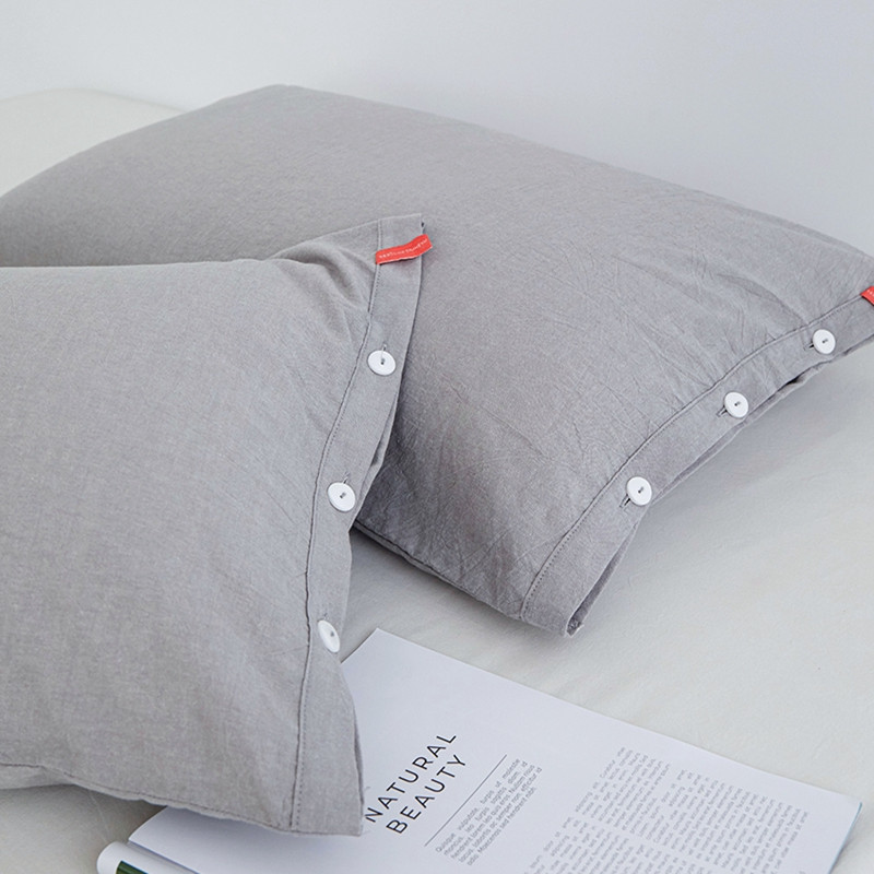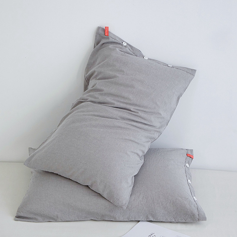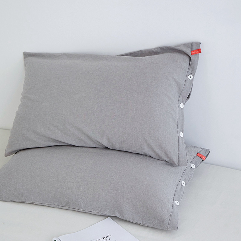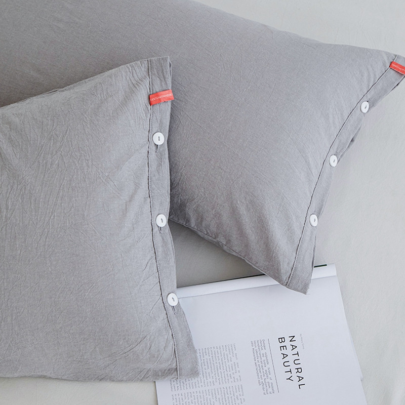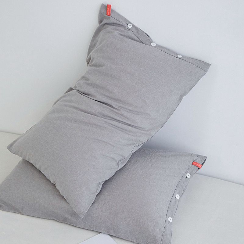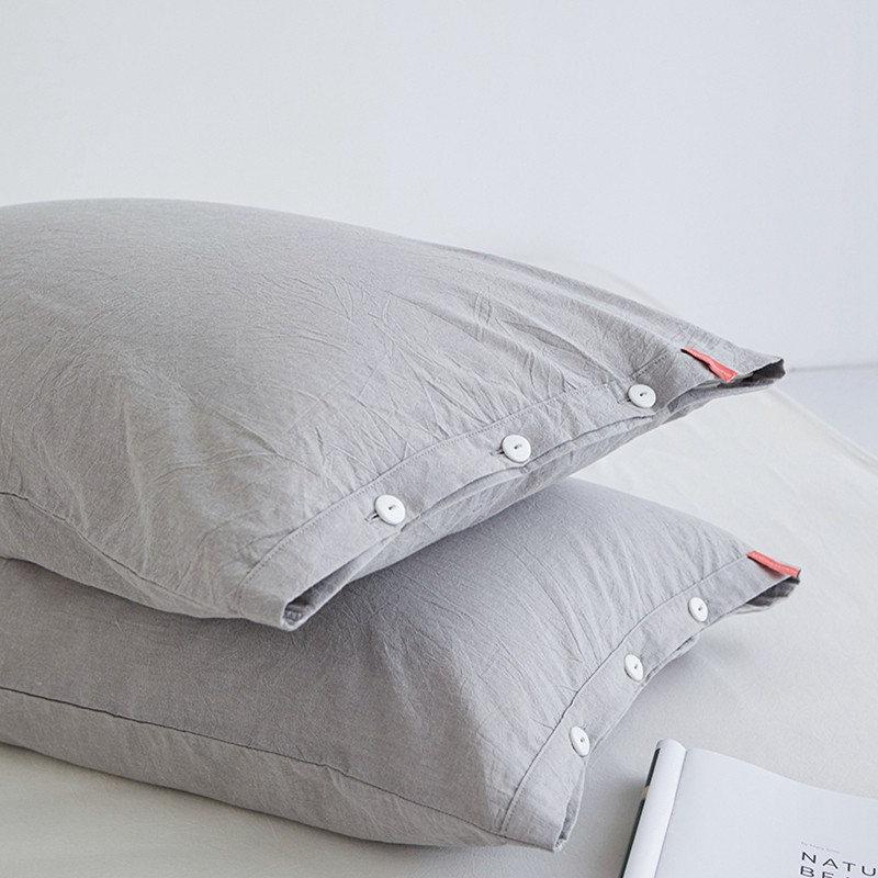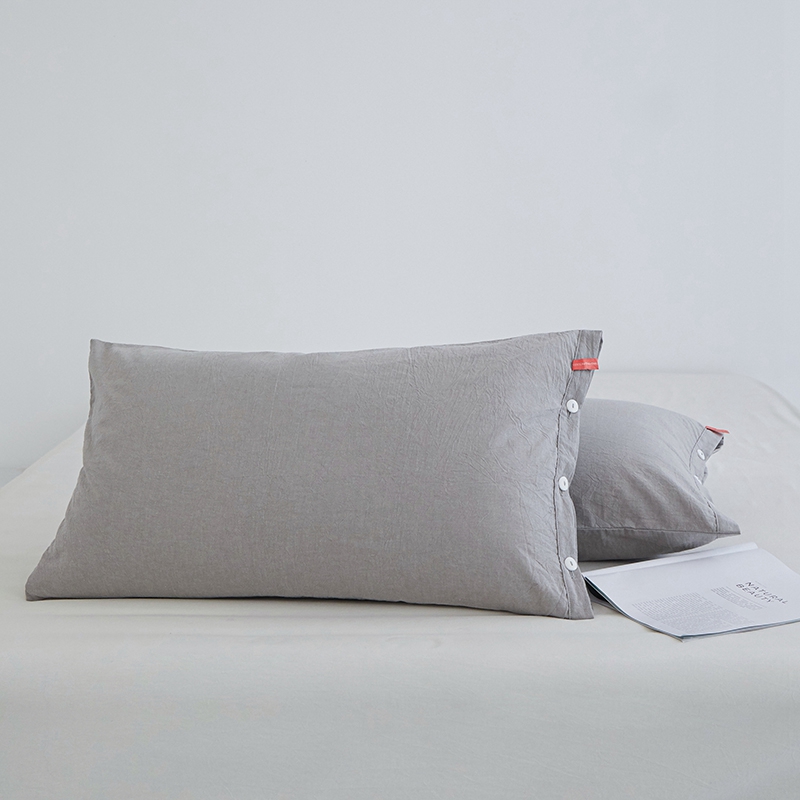 商品名称:安莱生活 2023新款水洗棉全棉色织高支高密纽扣款工艺单品枕套 银灰