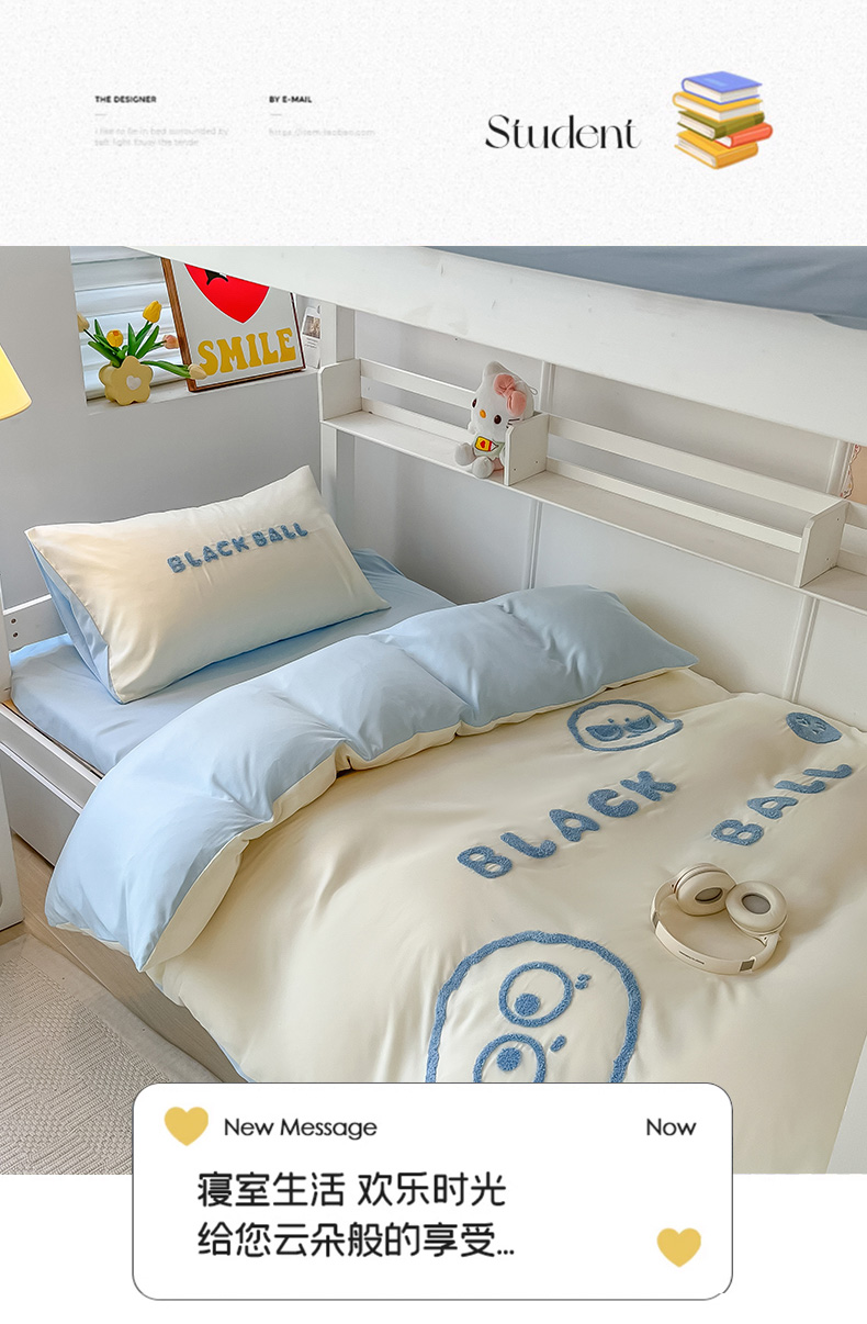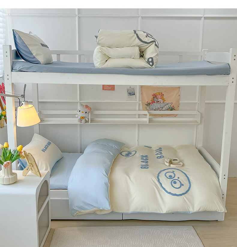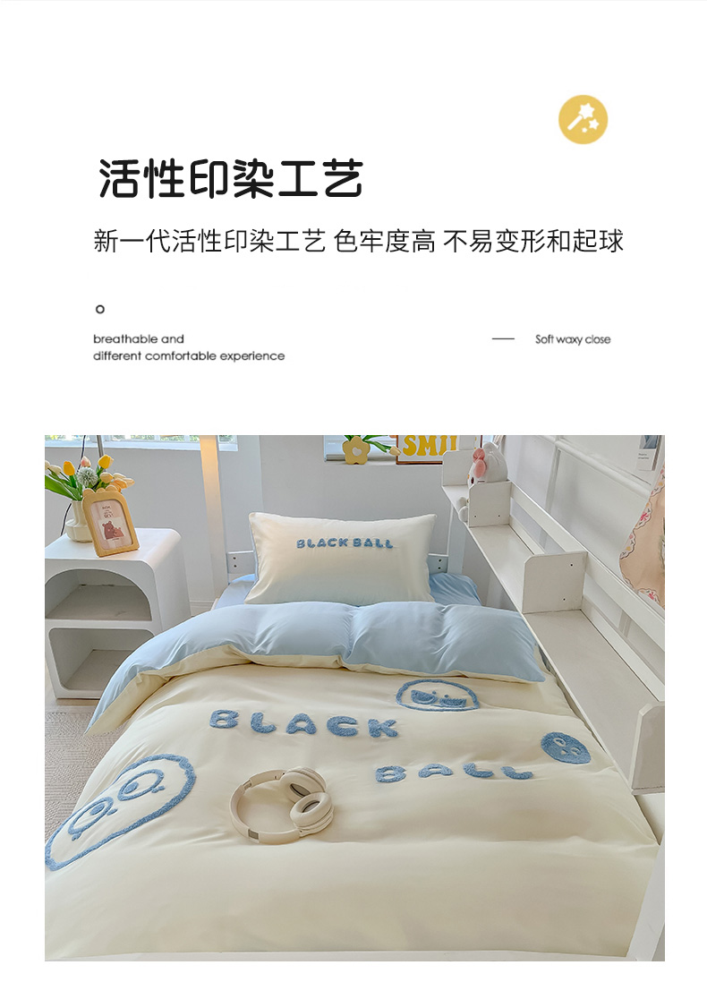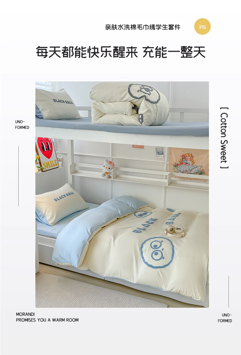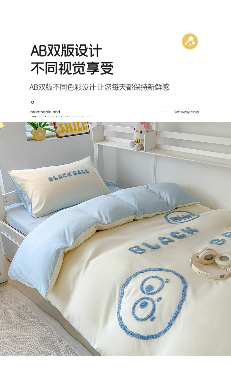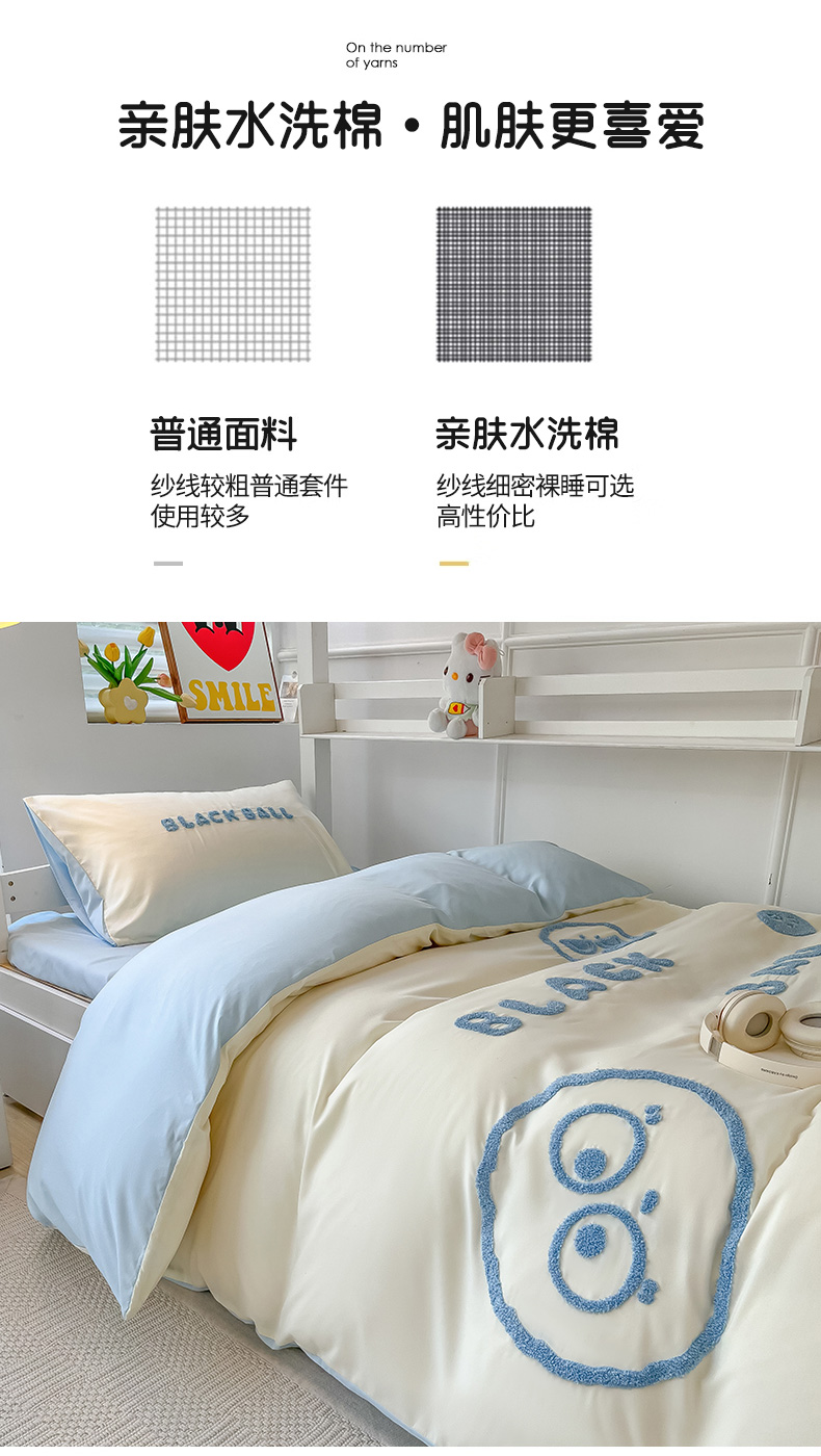 当前位置: 91家纺网 > 商品网购 > 床品套件 > 四件套 > 水洗棉四件套 > 眠帛 2023新款水洗棉毛巾绣煤球系列学生三件套六件套 煤球天空蓝