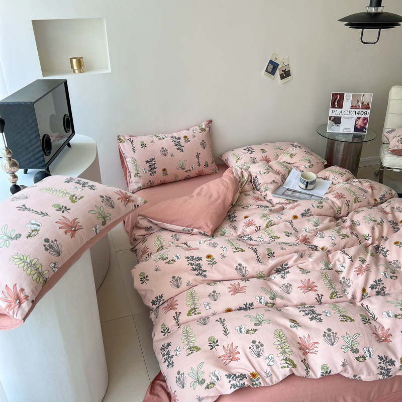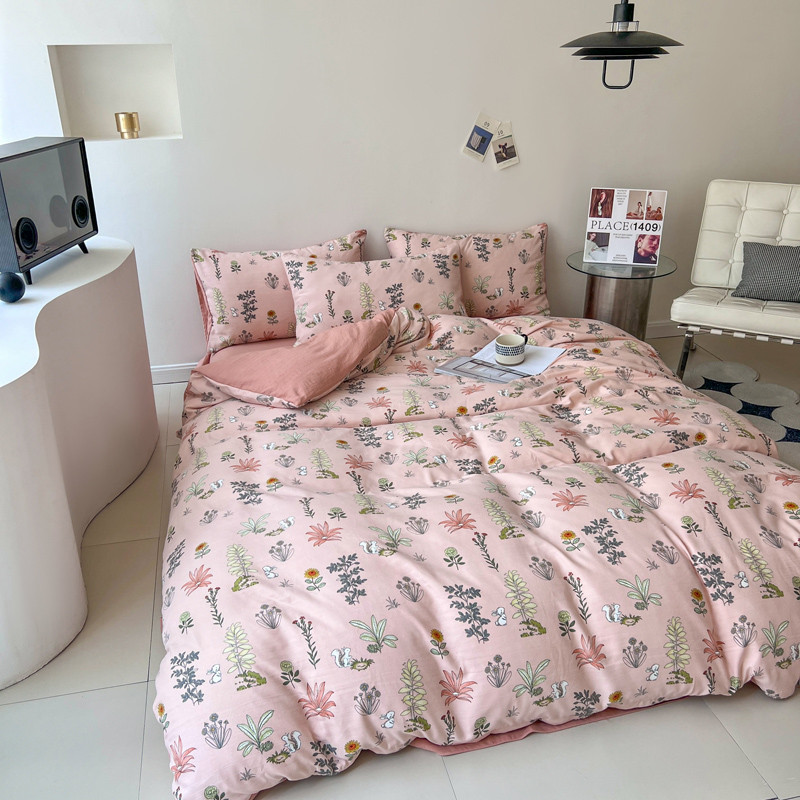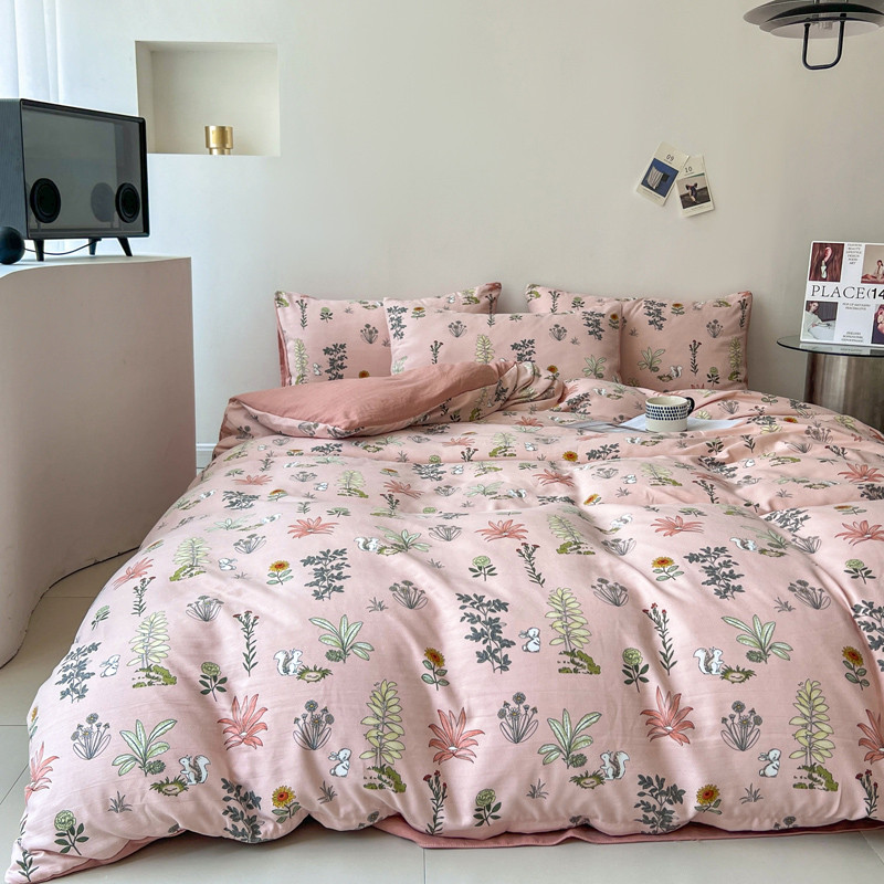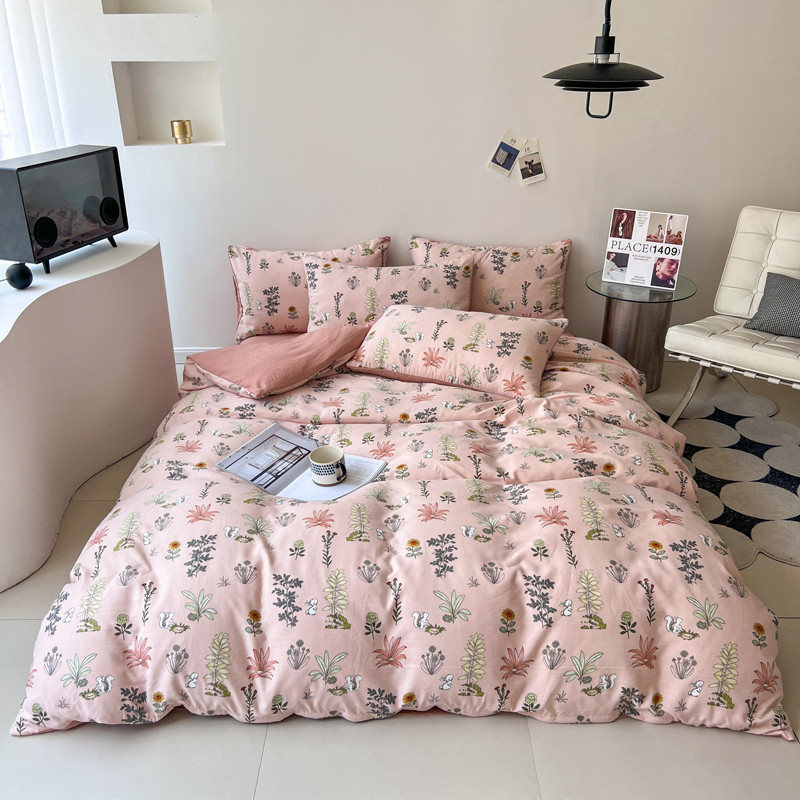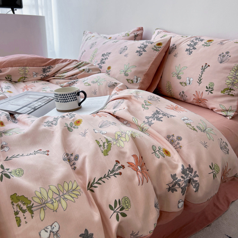 仟网汇 2023新款提花水洗印花双层纱四件套直播爆款 森林时光