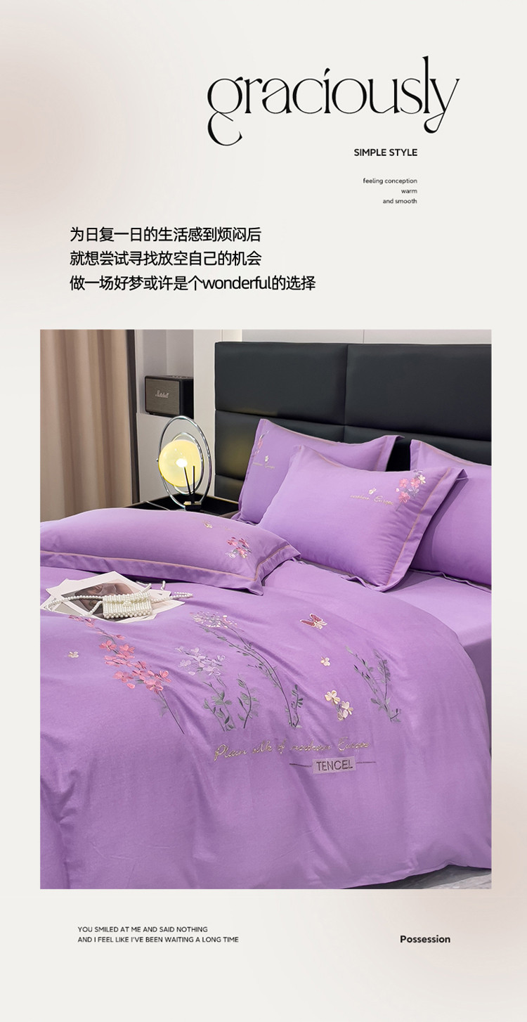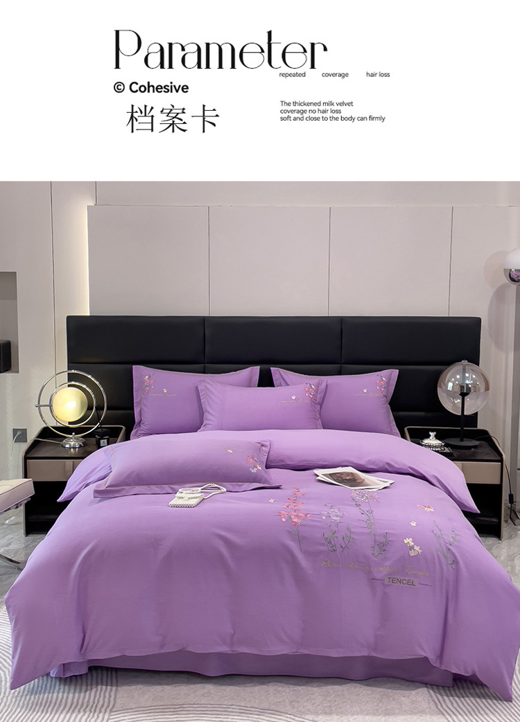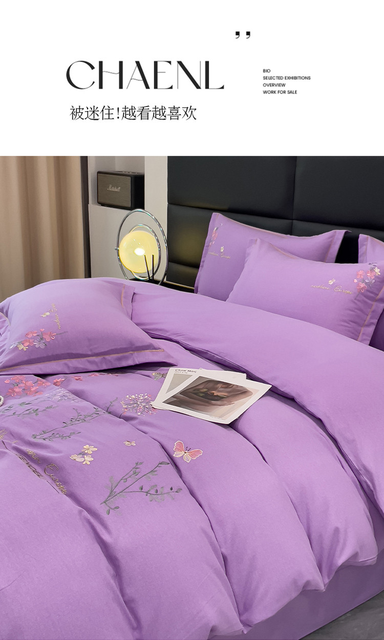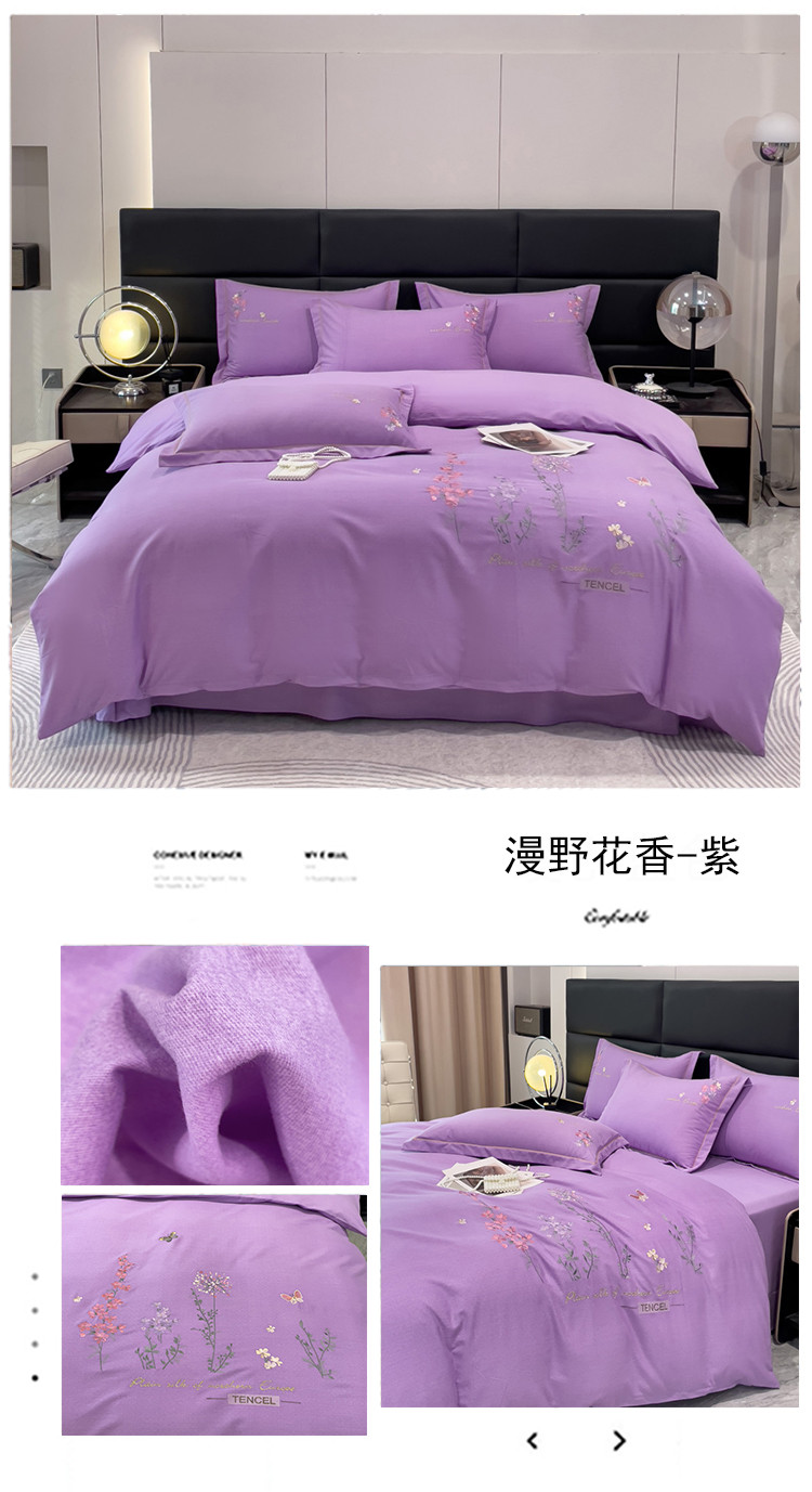 商品名称:云锦2023秋冬新品全棉磨毛绣花四件套-漫野花香 漫野花香紫