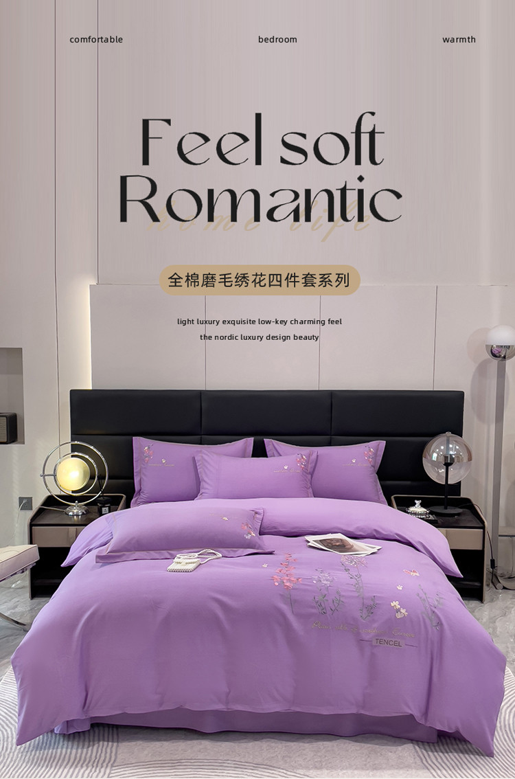 云锦2023秋冬新品全棉磨毛绣花四件套-漫野花香 漫野花香紫