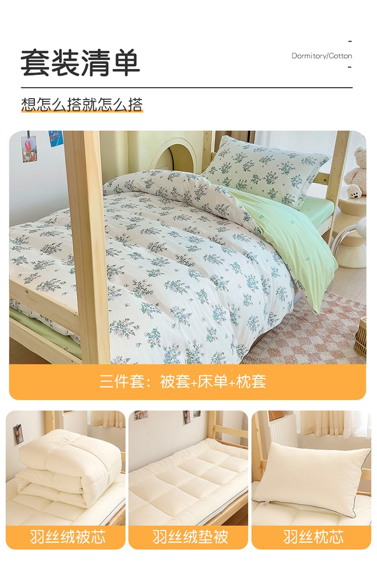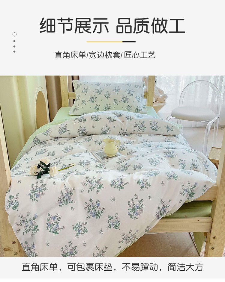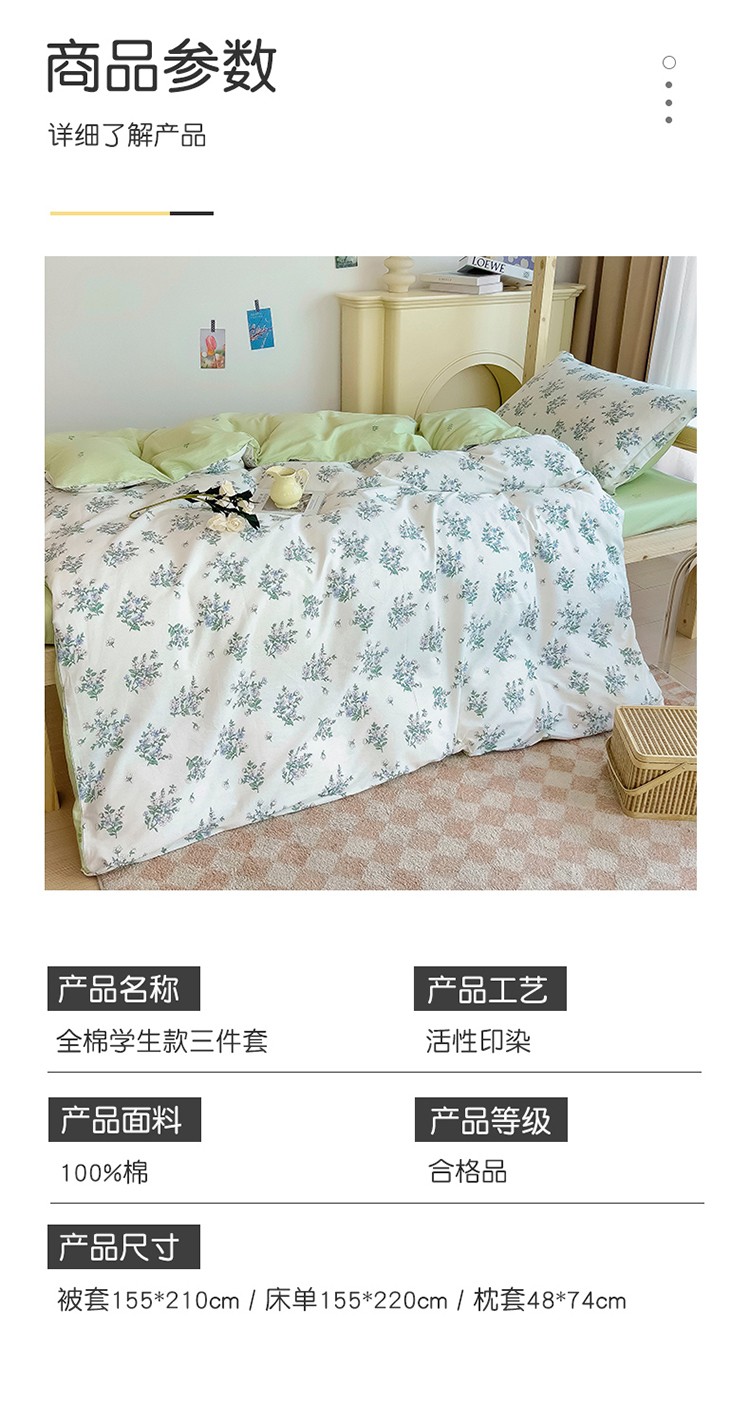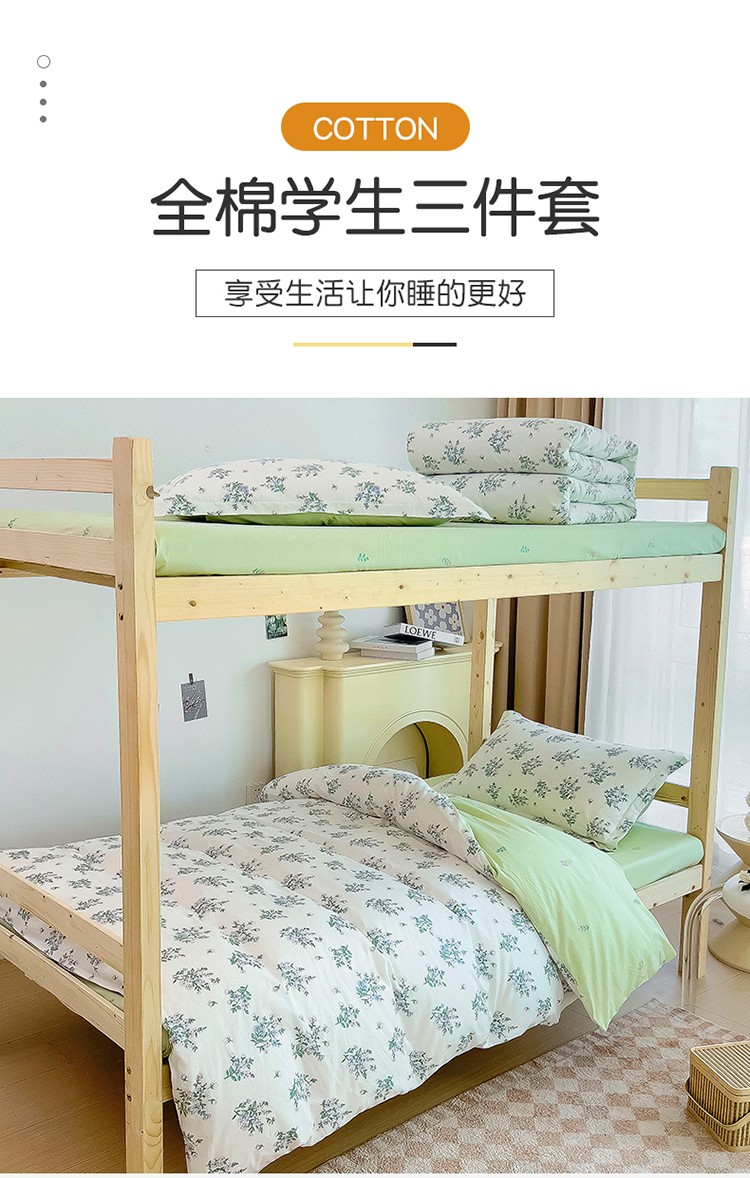 商品名称:全棉印花款大学生单人上下铺宿舍床三件套多件套 兰花情