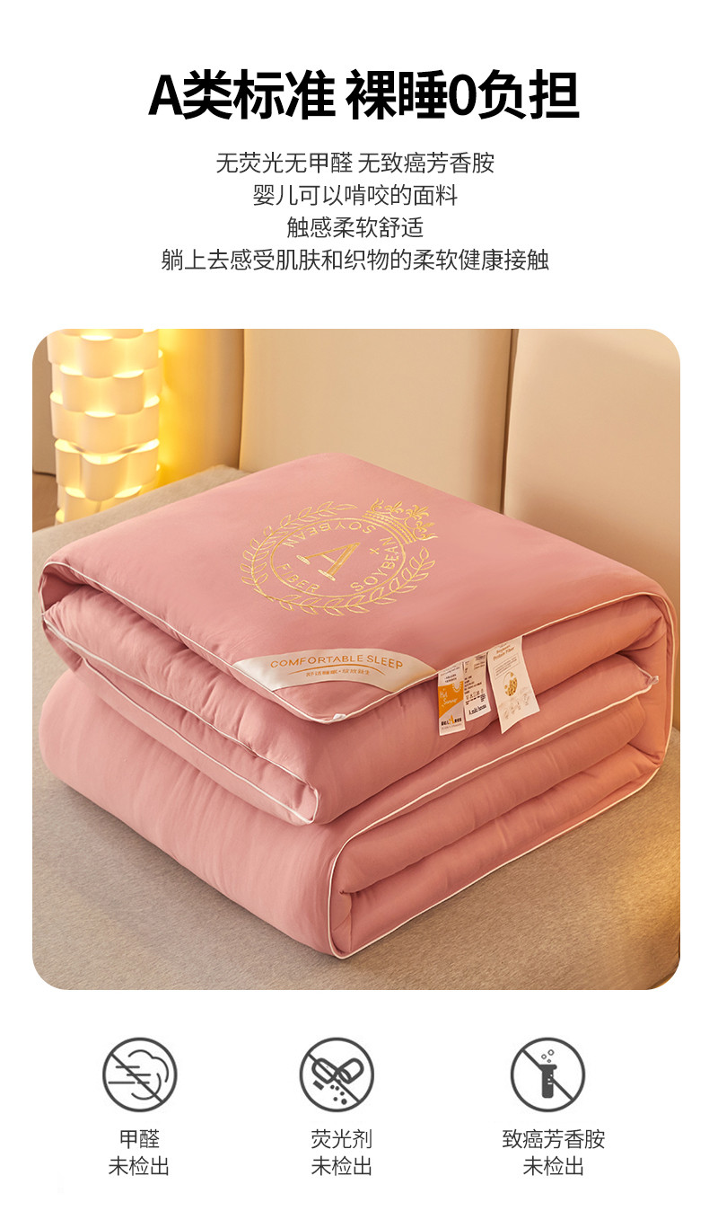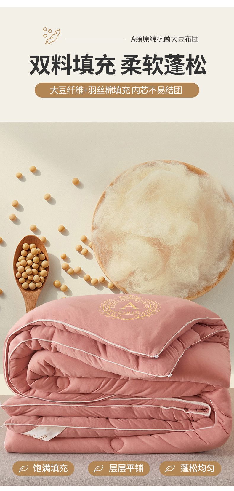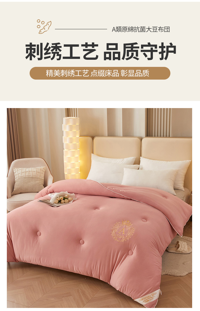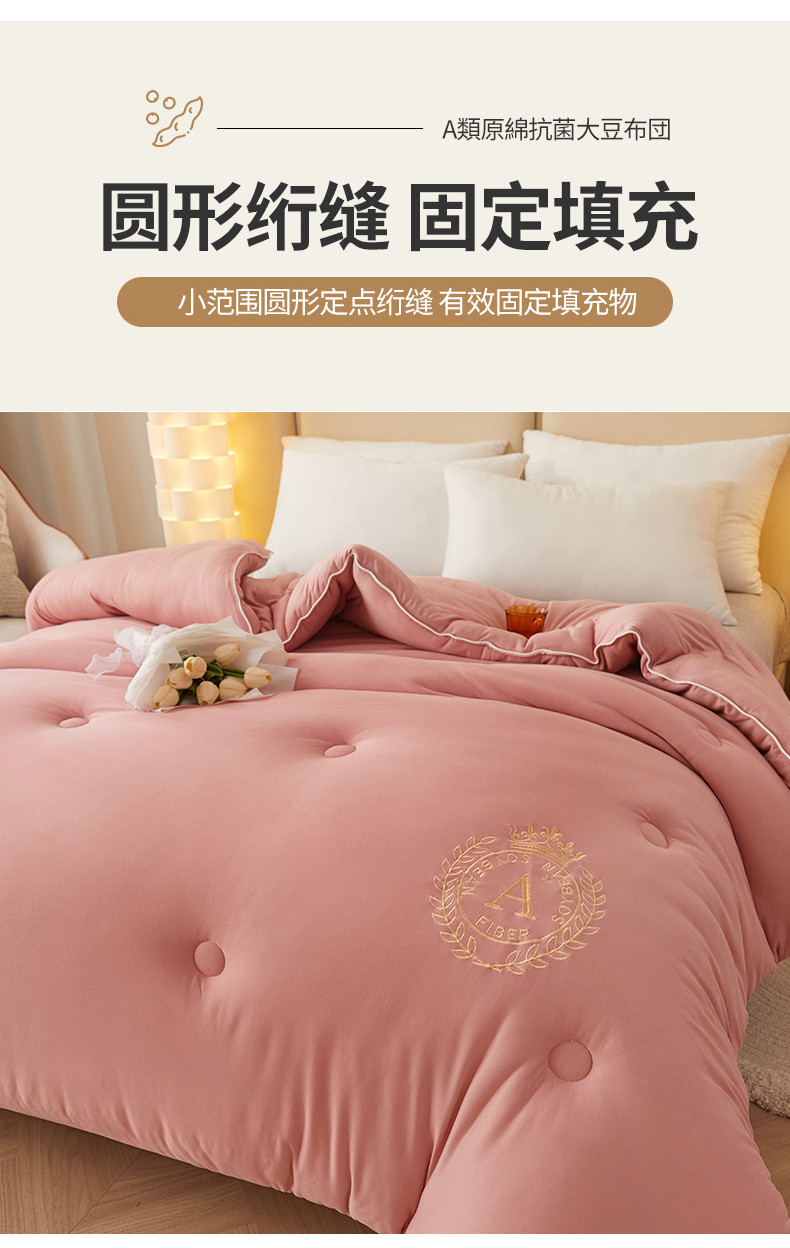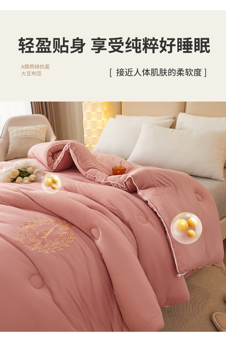商品名称:恒畅 2023新款A类针织棉大豆刺绣秋冬被冬被 香妃粉
