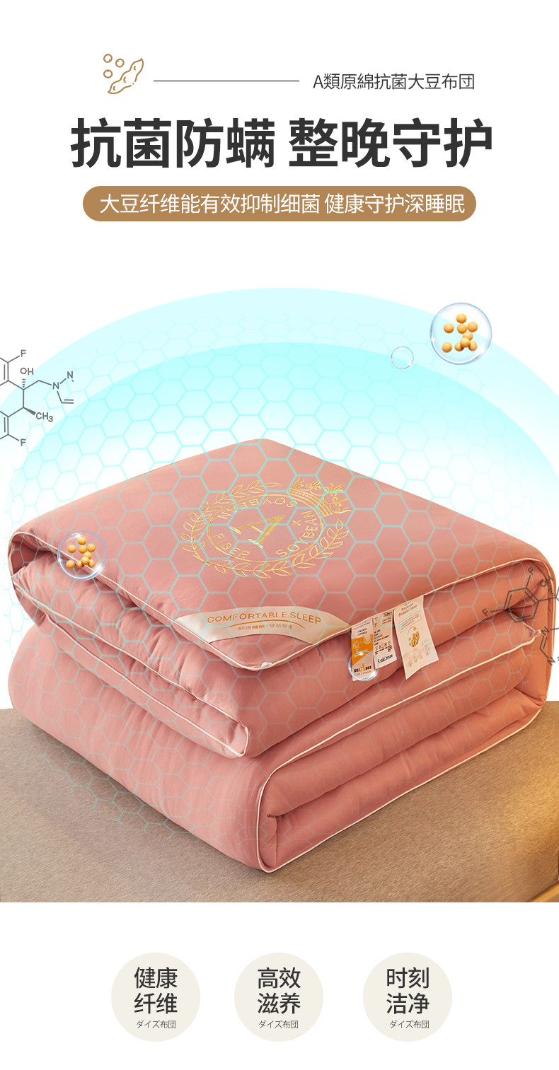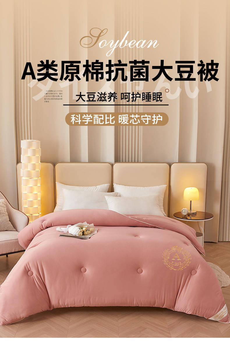 (总)恒畅 2025新款A类针织棉大豆被系列,冬被-抹茶绿,冬被-豆沙粉,冬被-奶昔白