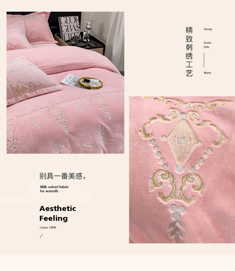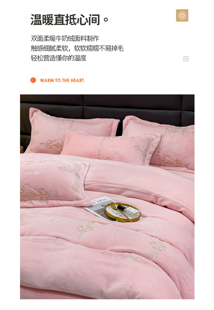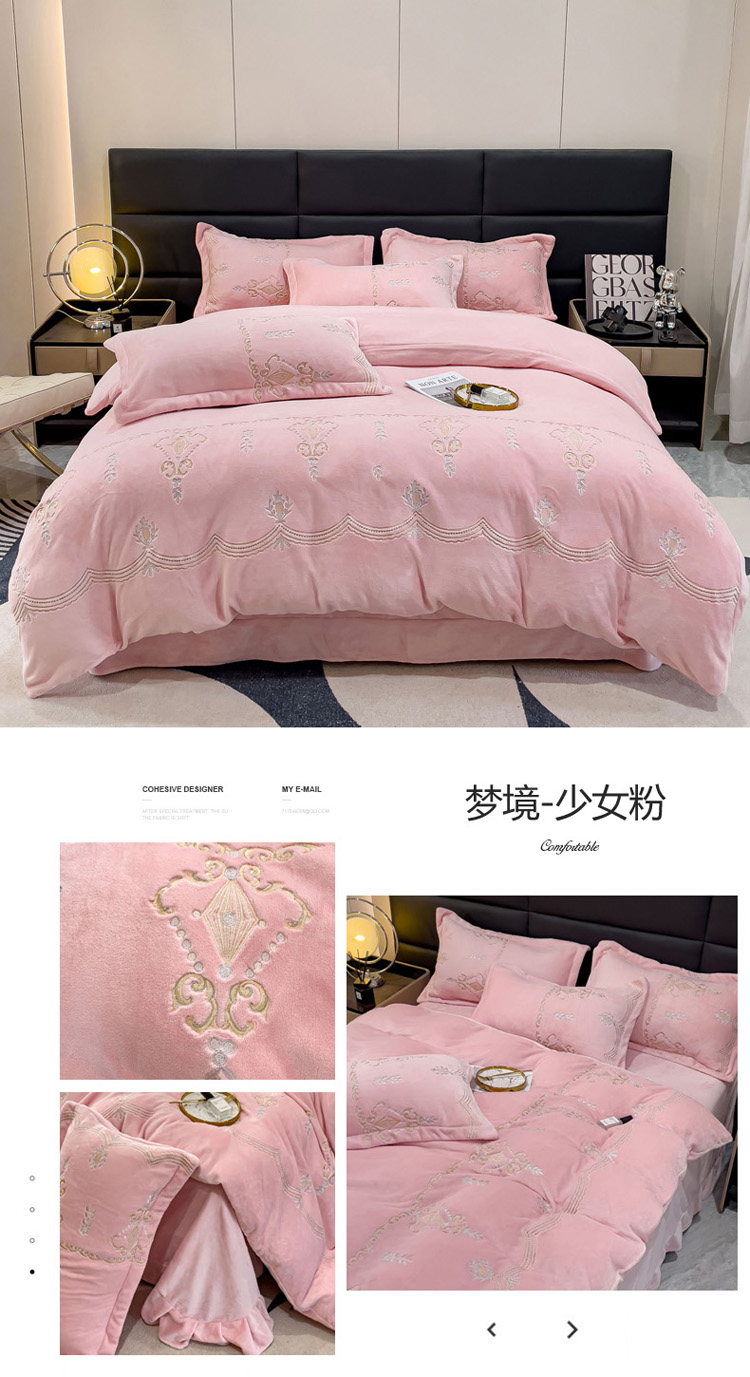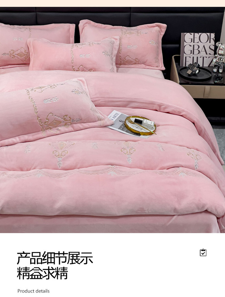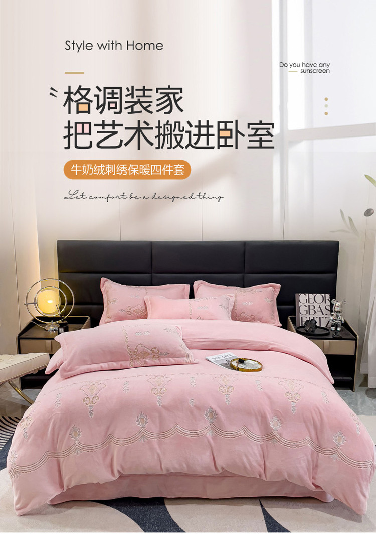 (总)星尚家纺 2024新款全消光230g牛奶绒刺绣保暖四件套-花漾,晨雾绿,豆沙粉,樱花粉