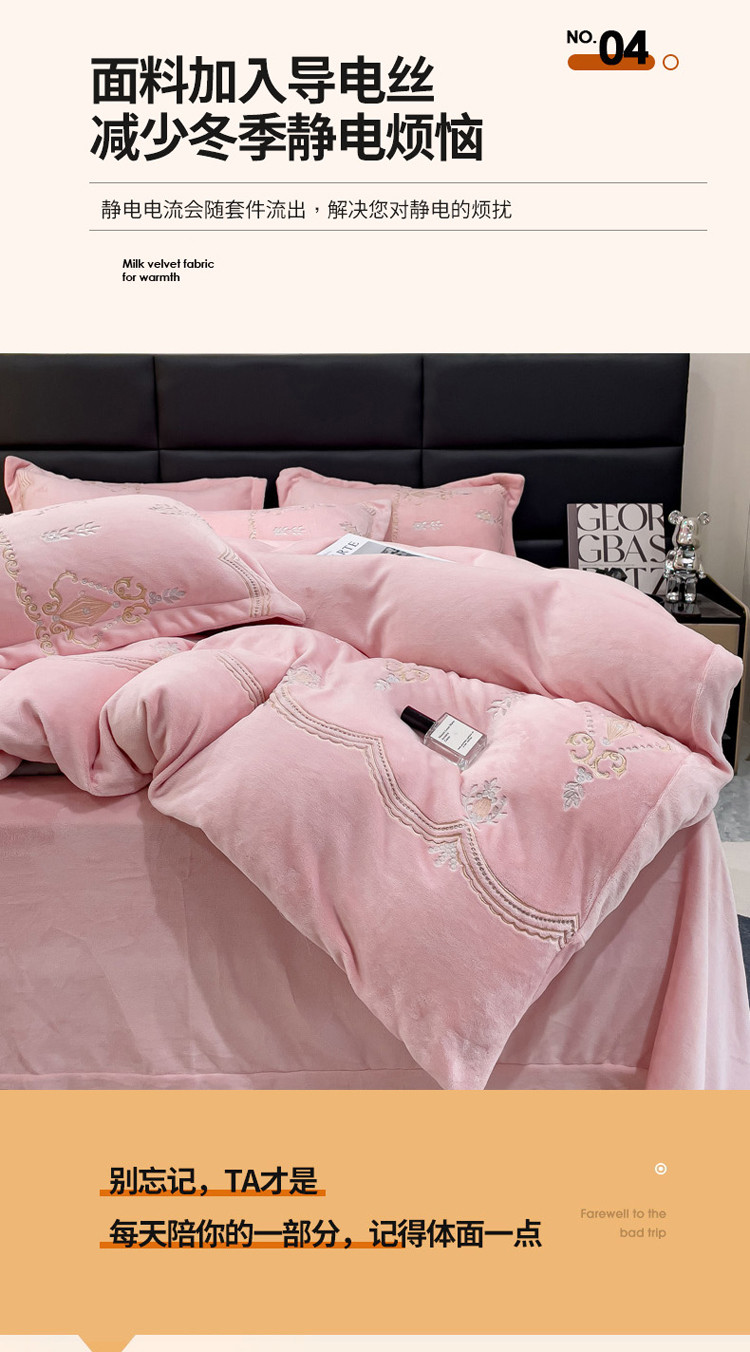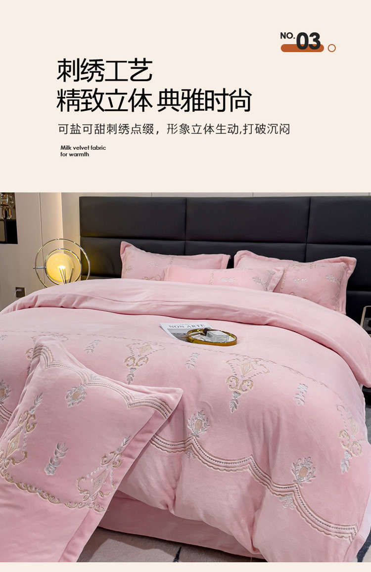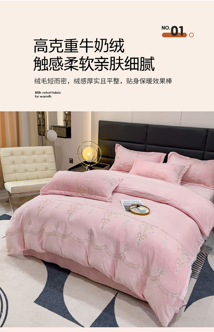 (总)星尚家纺 2025新款全消光A类母婴级加厚保暖牛奶绒绣花刺绣四件套,豆沙粉,卡其棕,梵星绿,孔雀蓝,高级灰,香芋紫,樱花粉