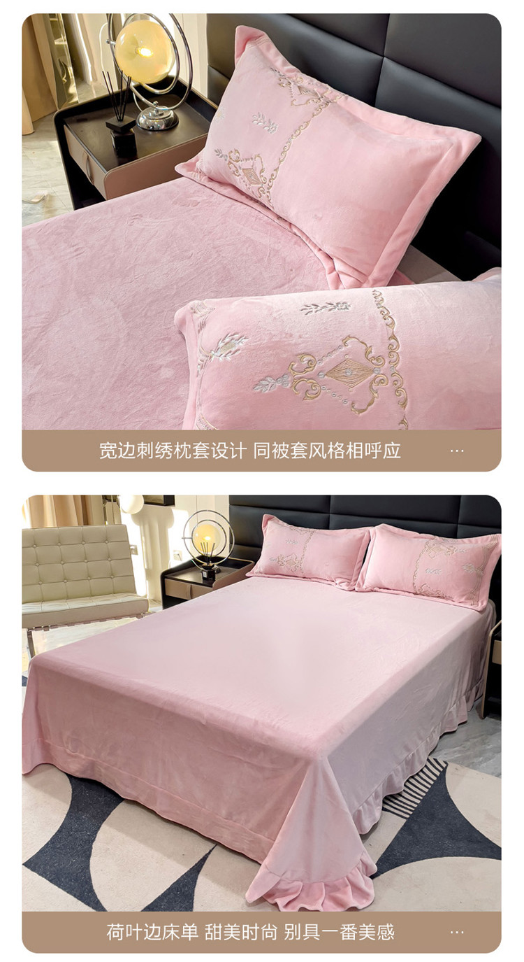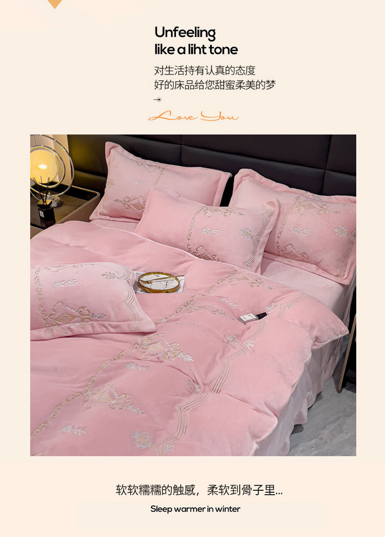 (总)星尚家纺 2024新款加厚保暖全消光牛奶绒夹棉床裙四件套-玫瑰之恋,粉玉,寐紫,浅蓝,水绿