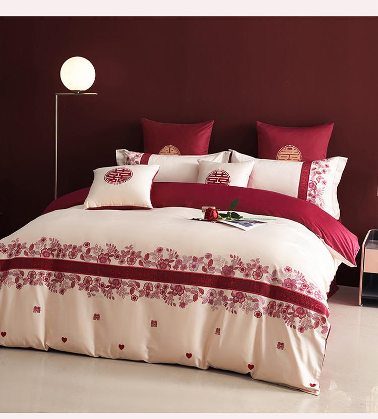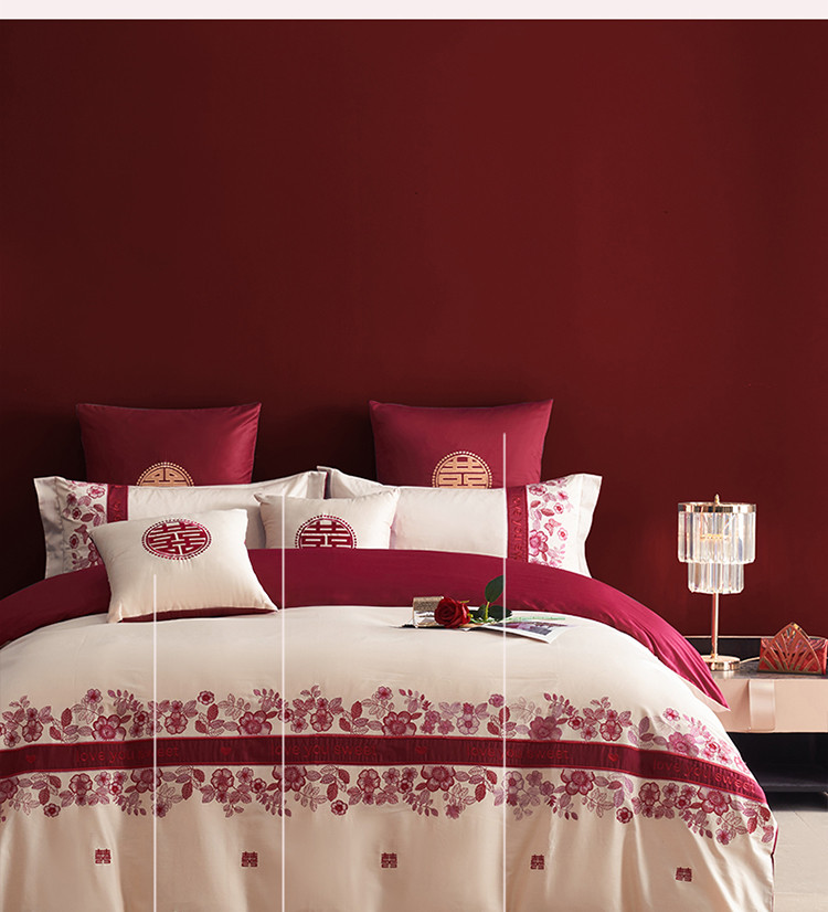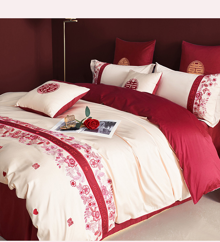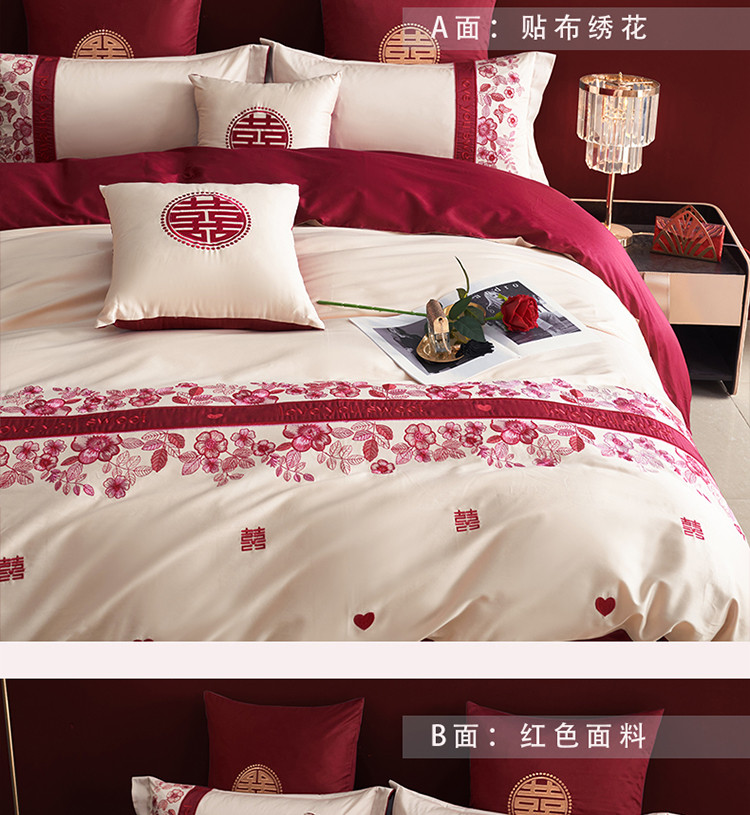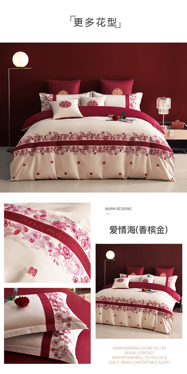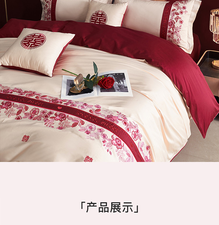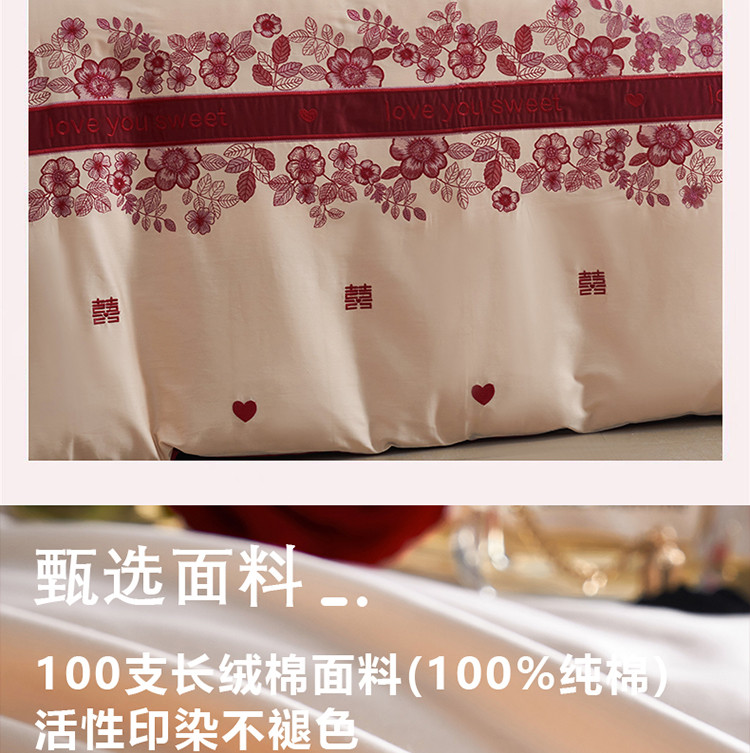 (总)甜咪咪婚庆 2025新款50支长绒棉全棉婚庆床单床盖四件套多件套刺绣工艺,洛可可,爱恋小熊,爱意久久,多子多福,花田喜事,节节高升,克拉恋人,浪漫情怀,怦然心动红,怦然心动玉,甜心玫瑰,温莎公主,伊甸园,醉红妆