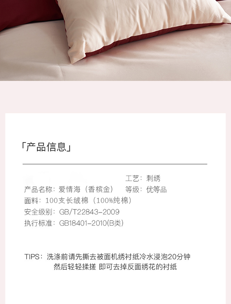 商品名称:甜咪咪 2023年新品居家公主风长绒棉婚庆套件 爱情海香槟金
