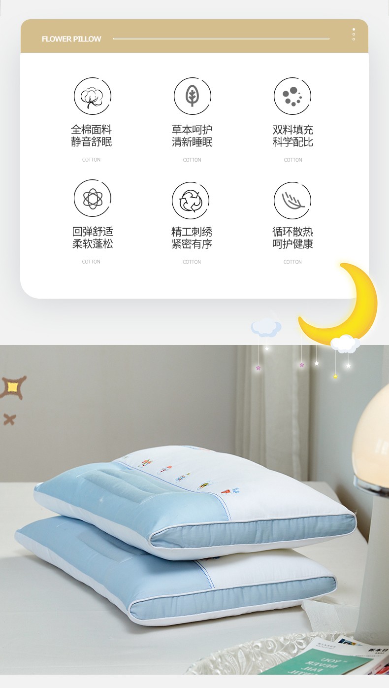 商品名称:(总)2023新款 全棉卡通决明子枕头 学生护颈低枕平枕芯