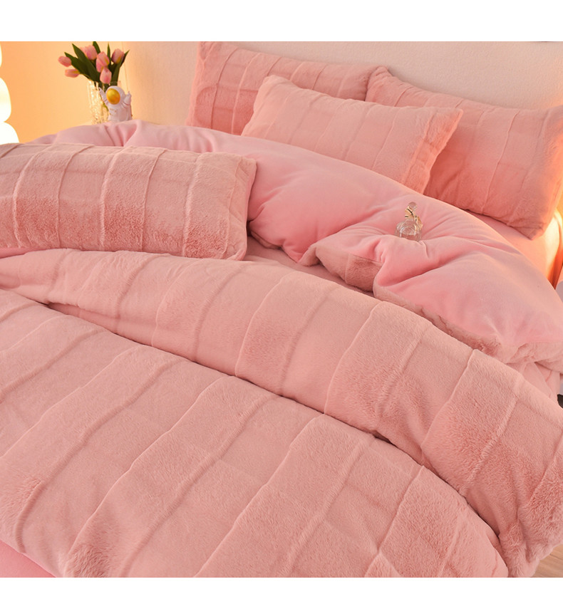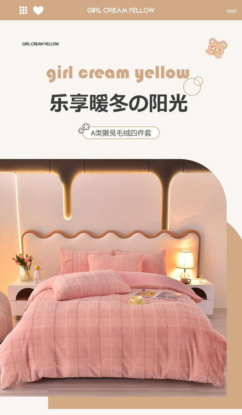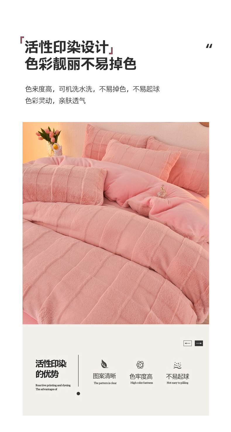 商品名称:喜梦缘家纺2025新款直播爆款兔毛绒兔兔绒懒兔绒立体剪花牛奶绒四件套