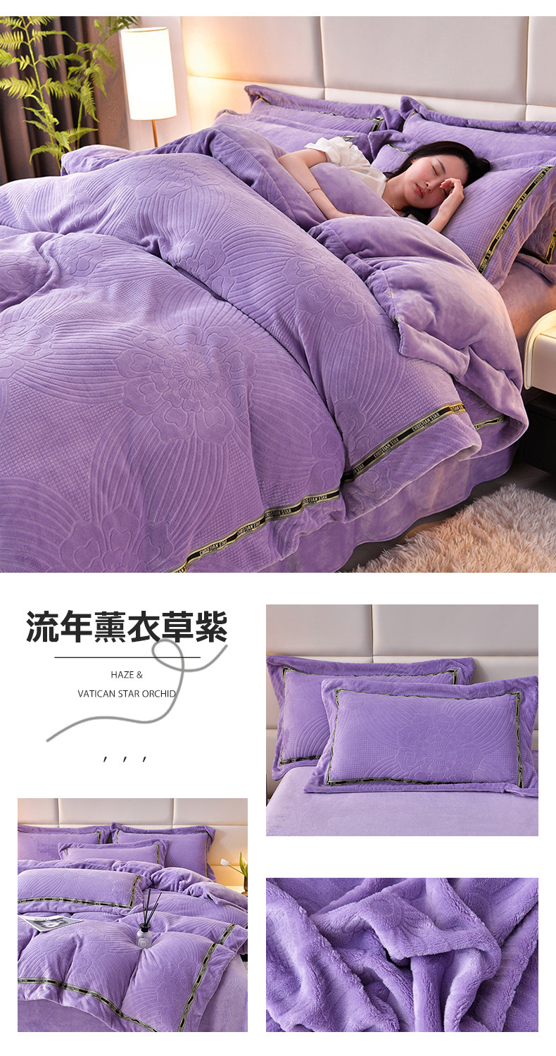 商品名称:妮恒美 2023新款牛奶绒雕花压线款四件套 流年薰衣草紫