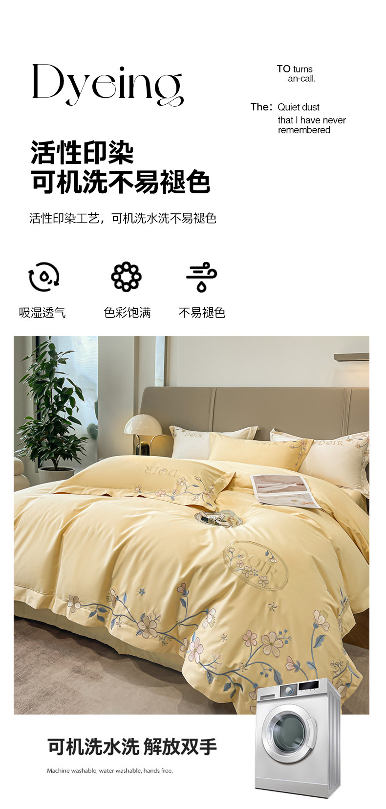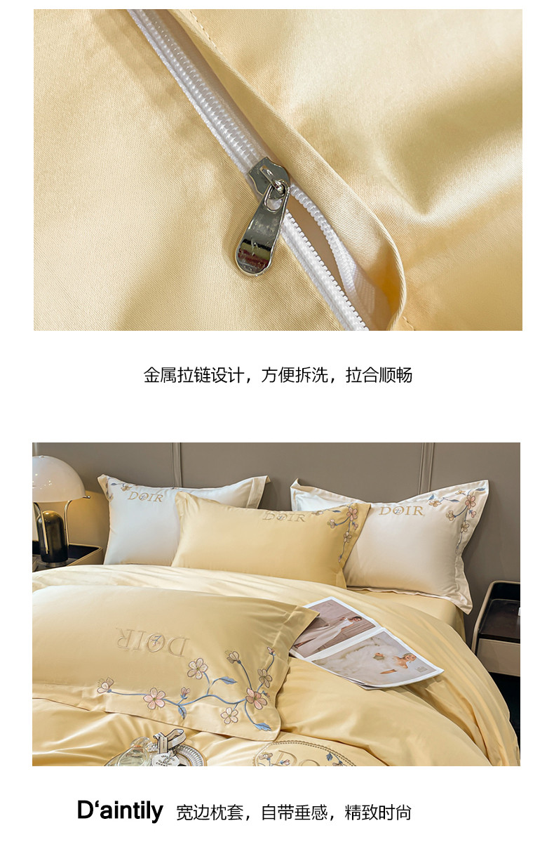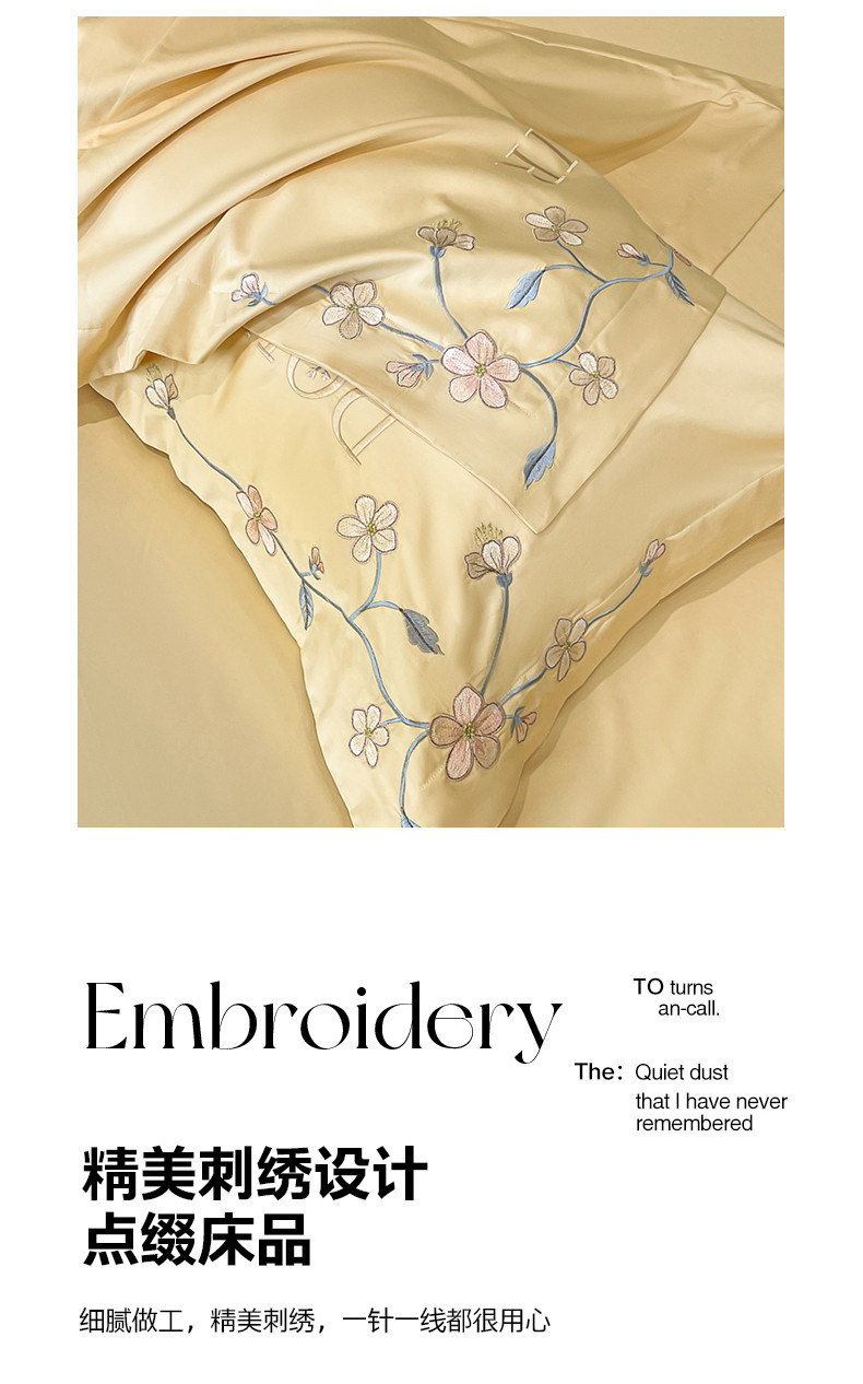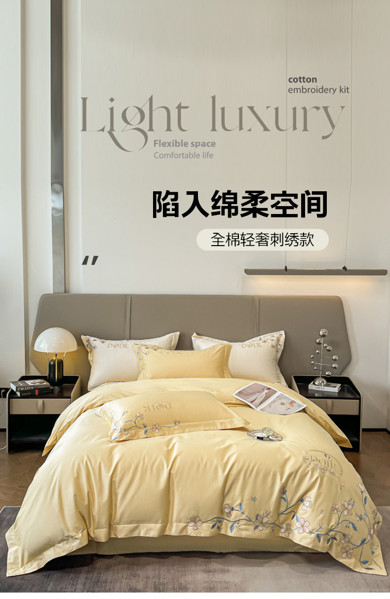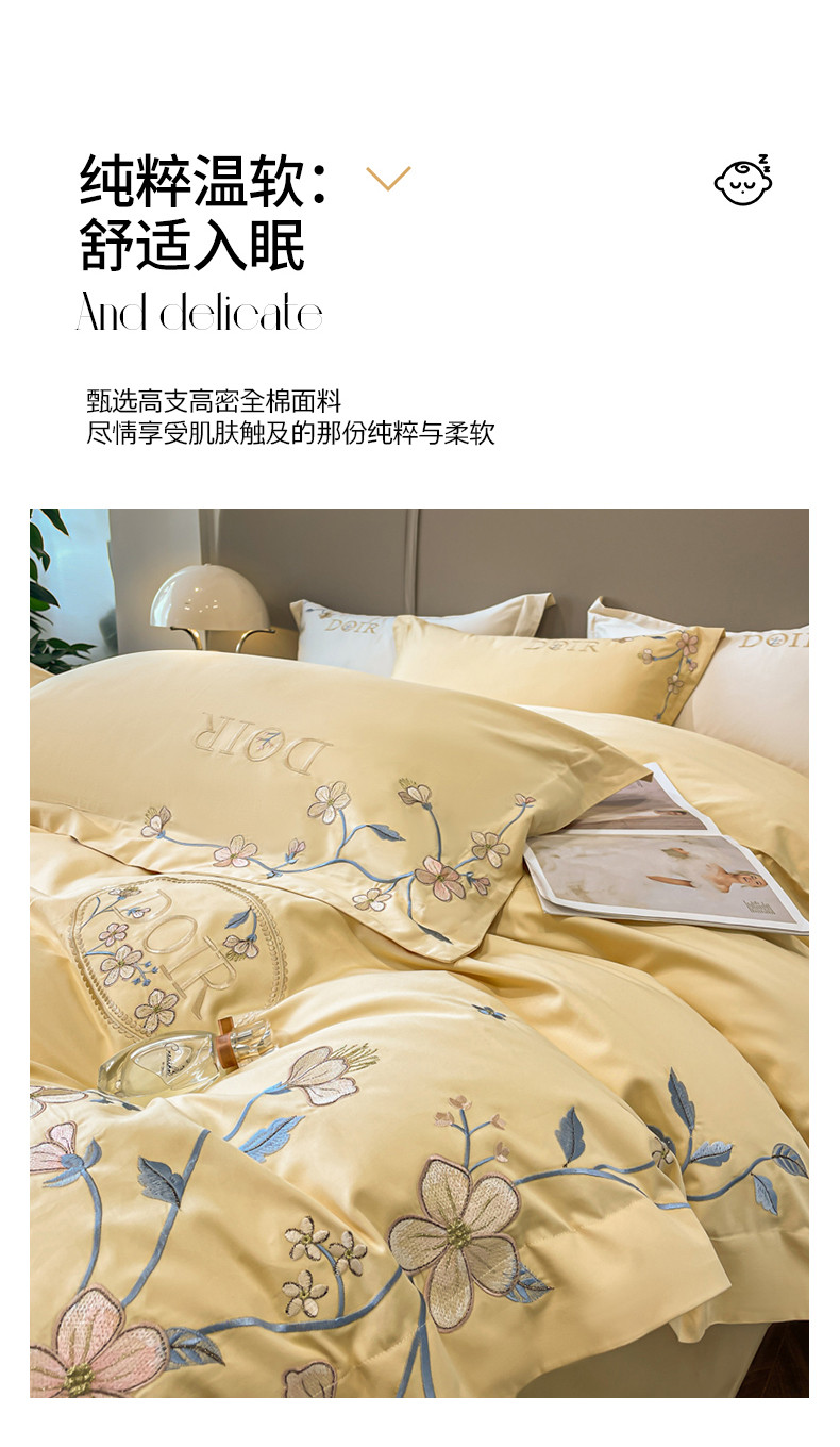 商品名称:丞音 高档礼盒2024新款长绒棉轻奢纯棉花卉刺绣四件套 香榭丽-琉璃黄