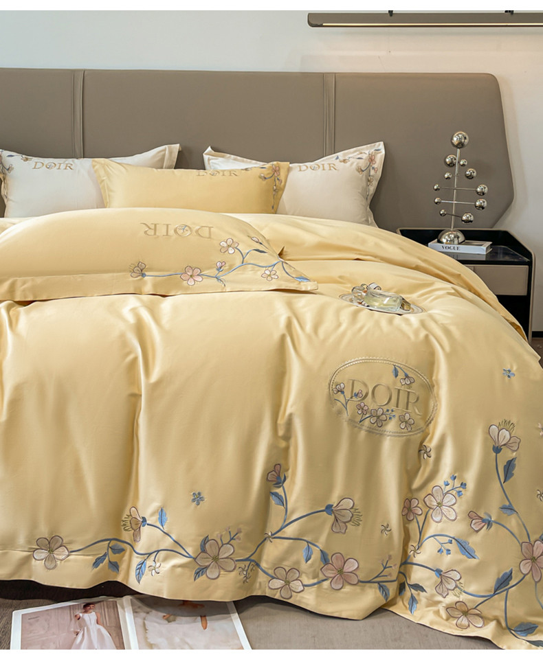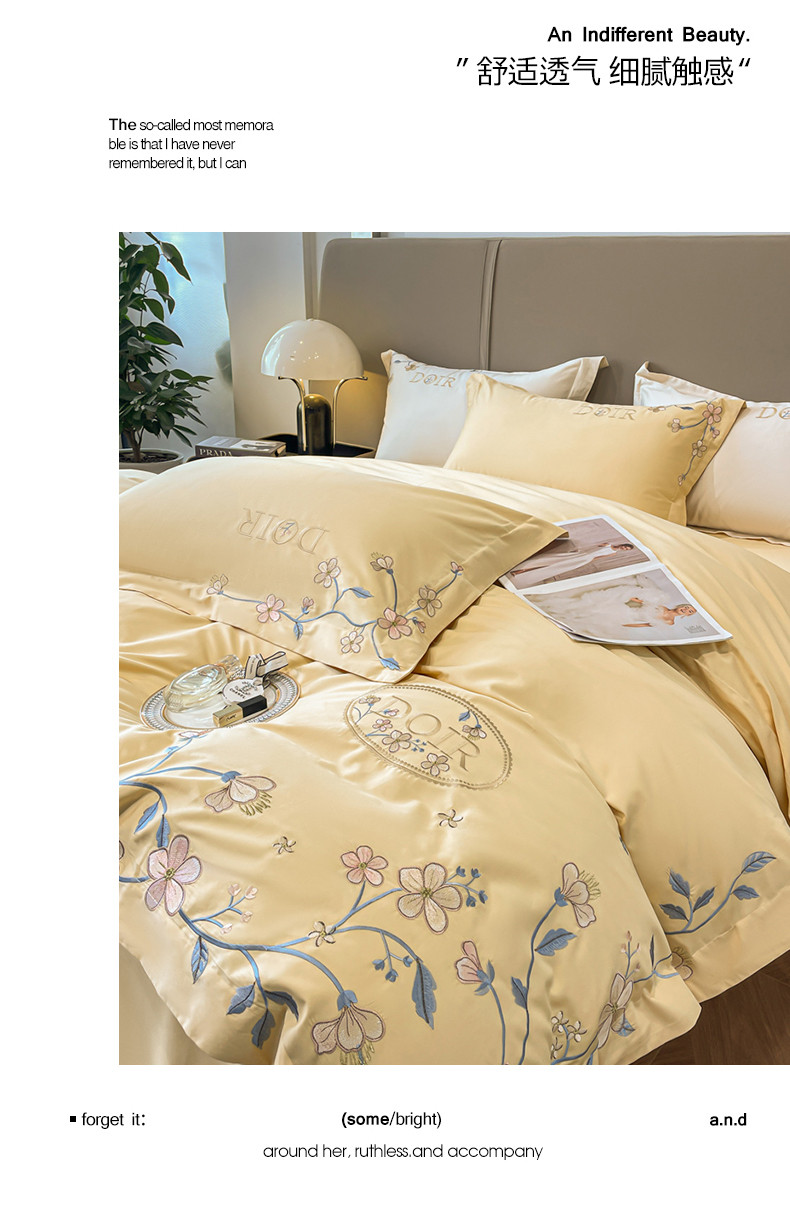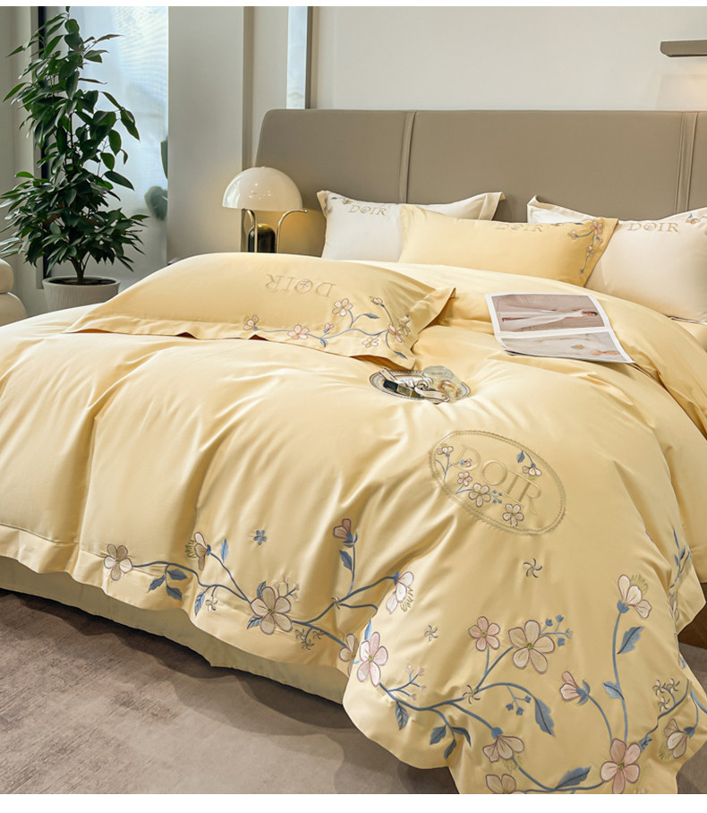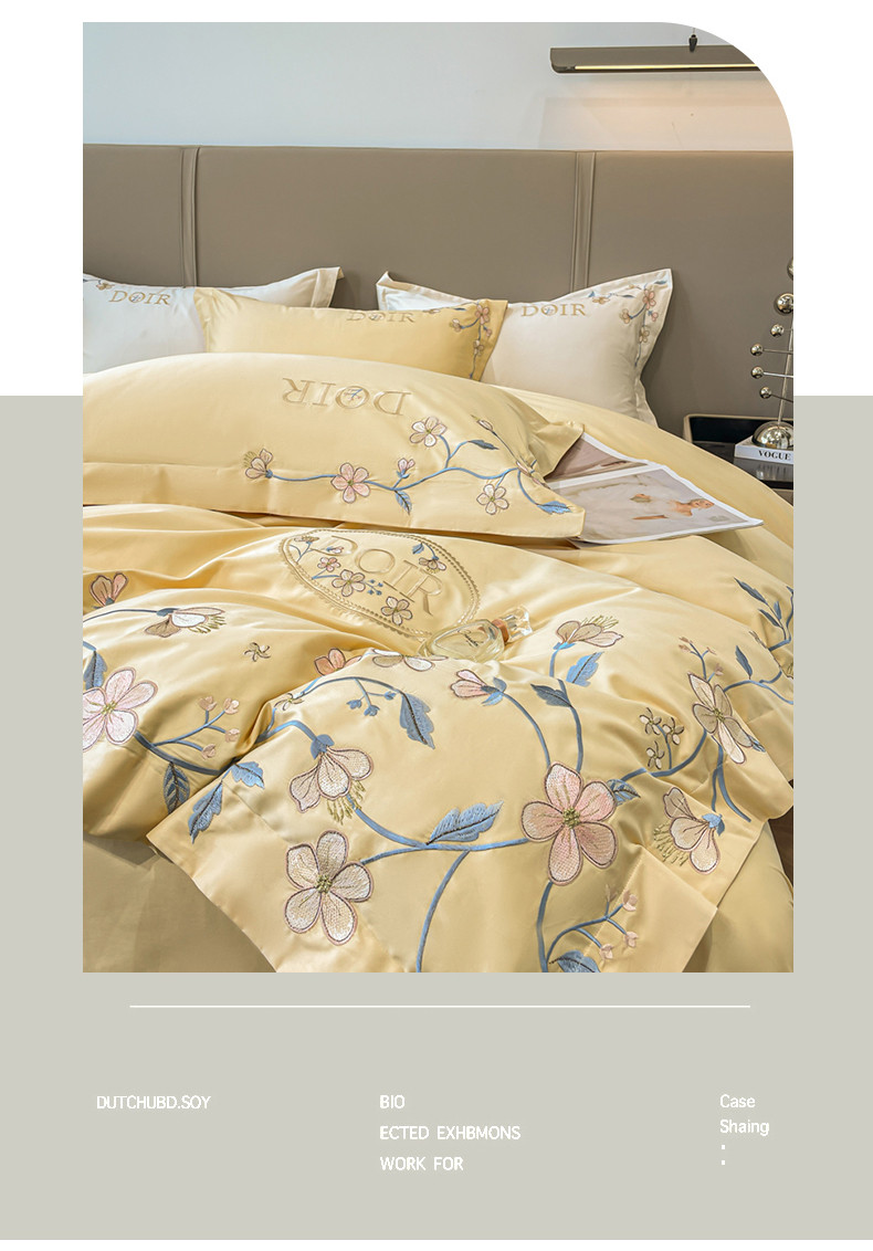丞音 高档礼盒2024新款长绒棉轻奢纯棉花卉刺绣四件套 香榭丽-琉璃黄