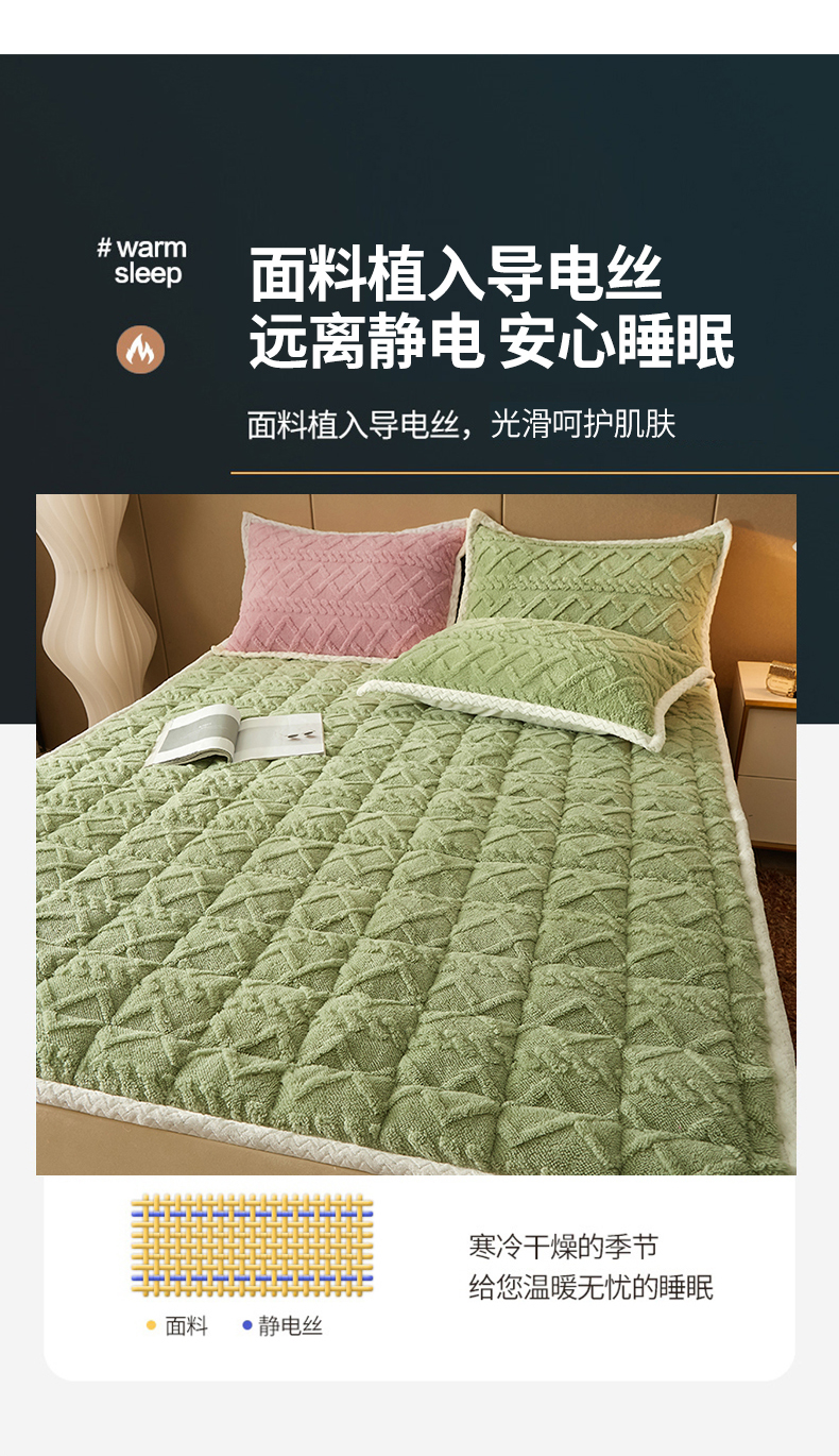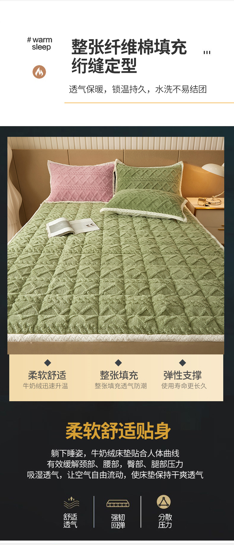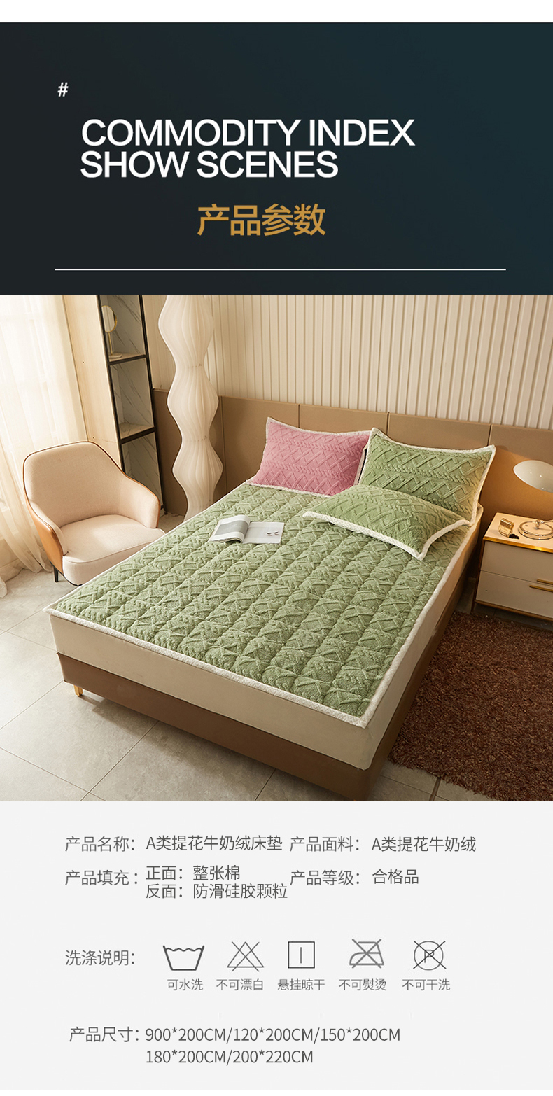 商品名称:东宇 2024新款A类提花牛奶绒床垫 茶绿