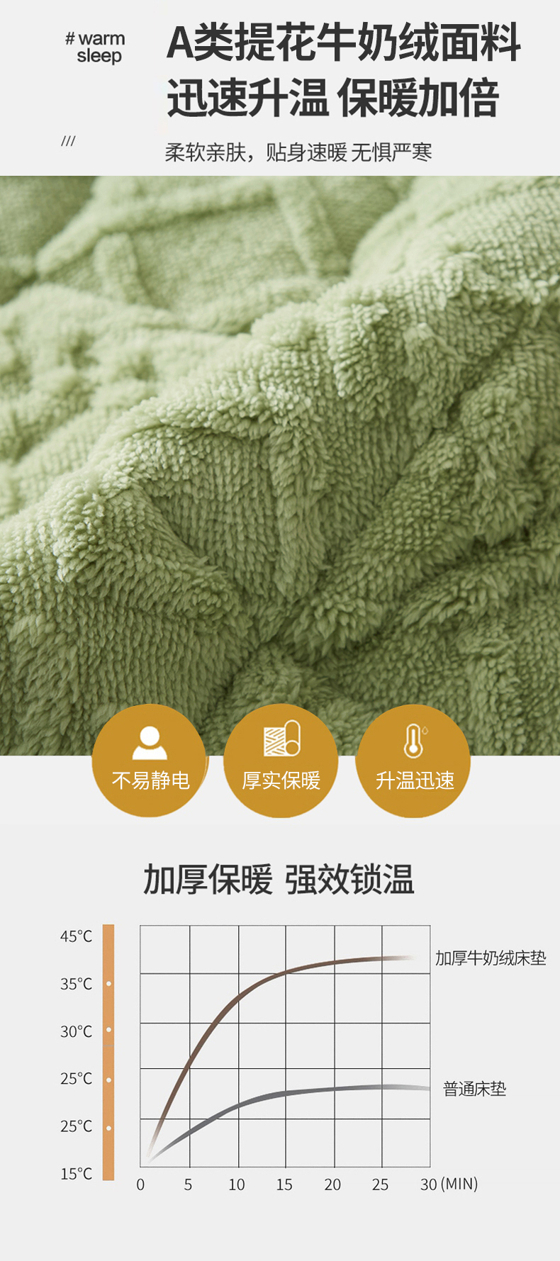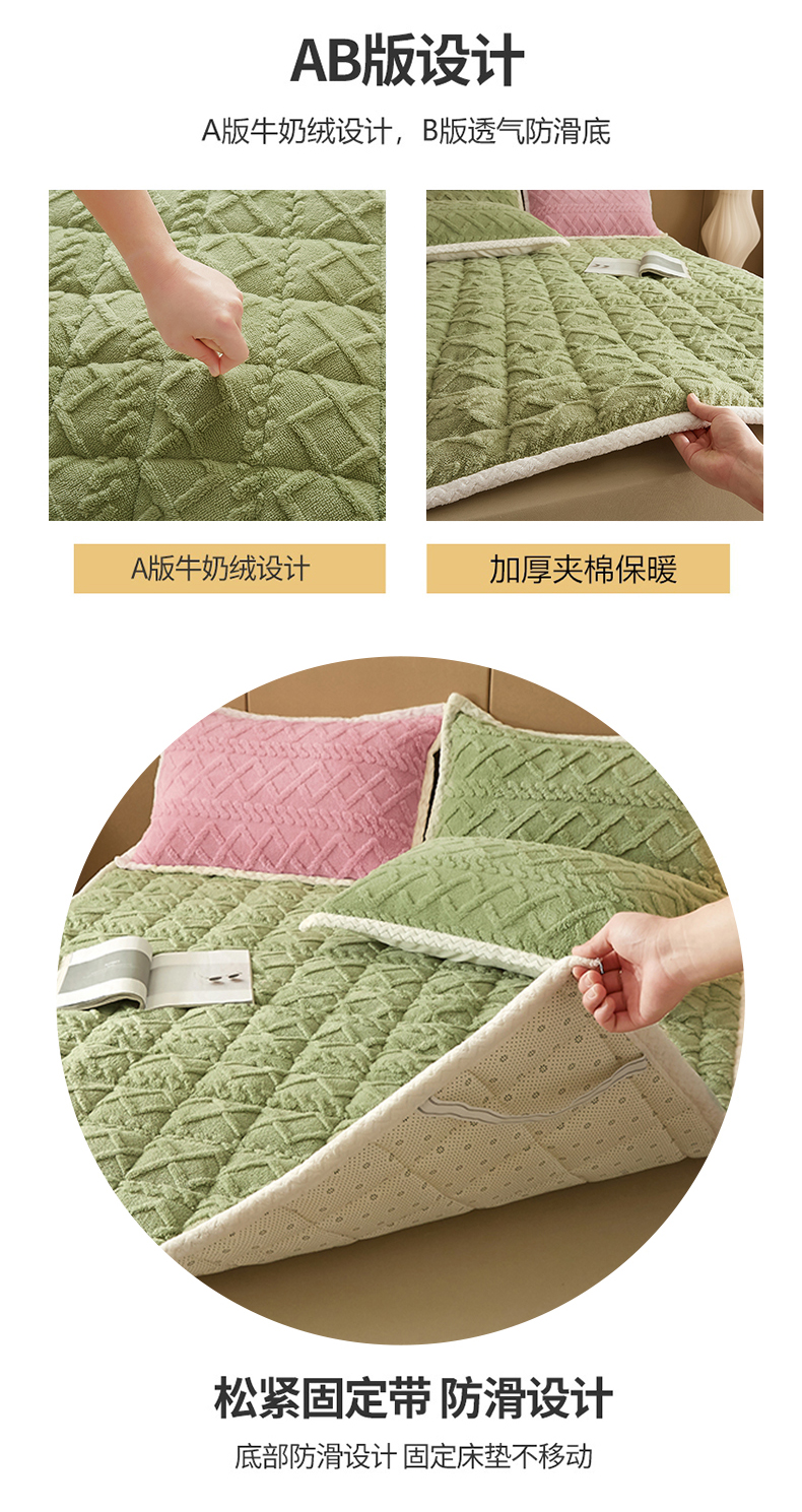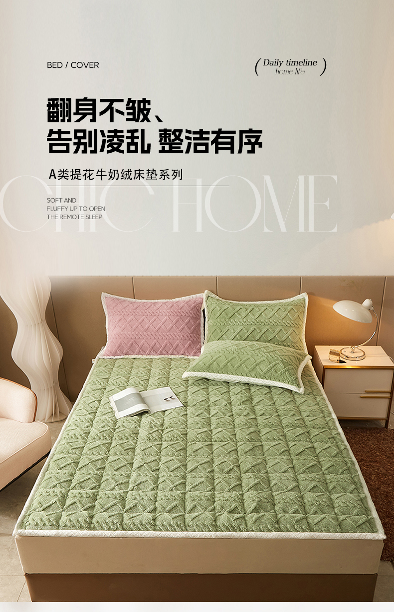 商品名称:东宇 2024新款A类提花牛奶绒床垫 茶绿
