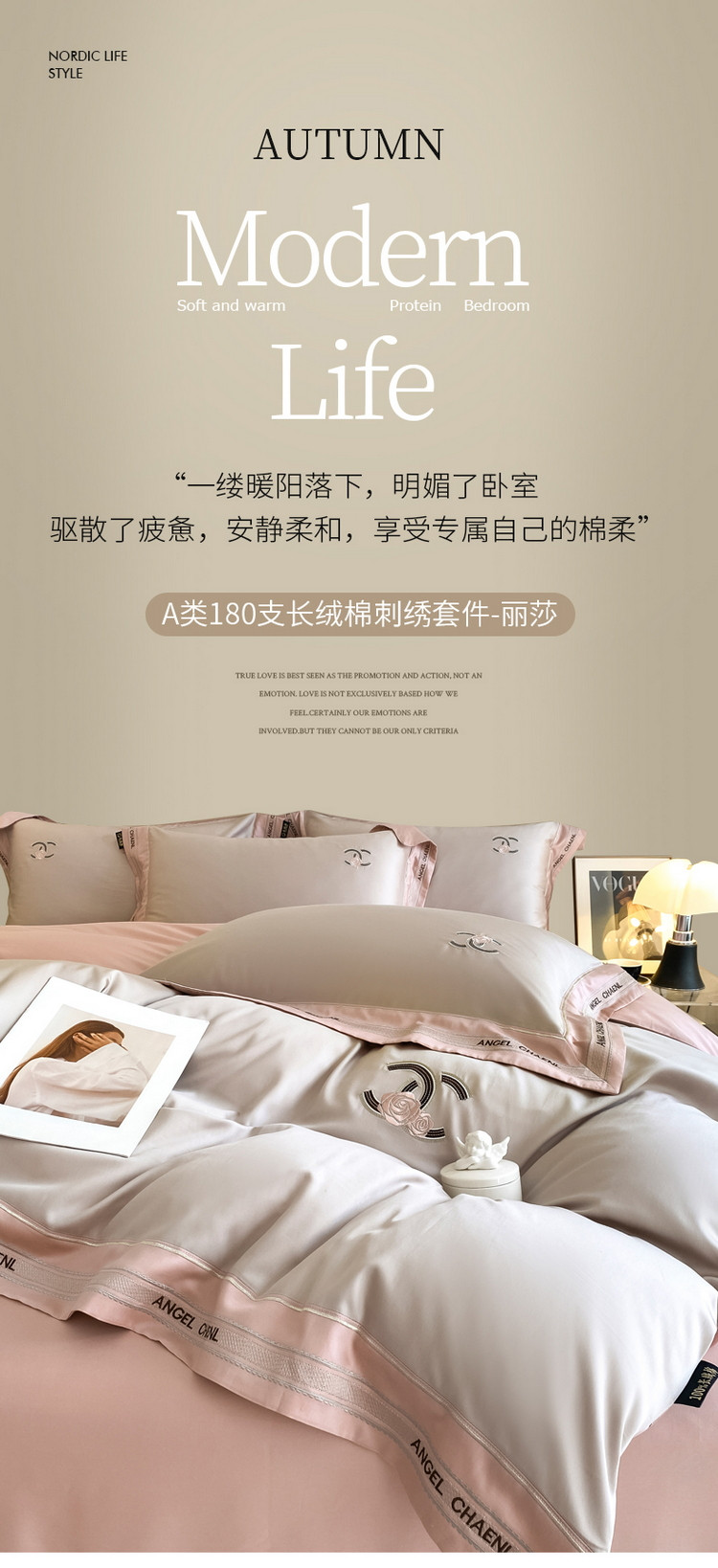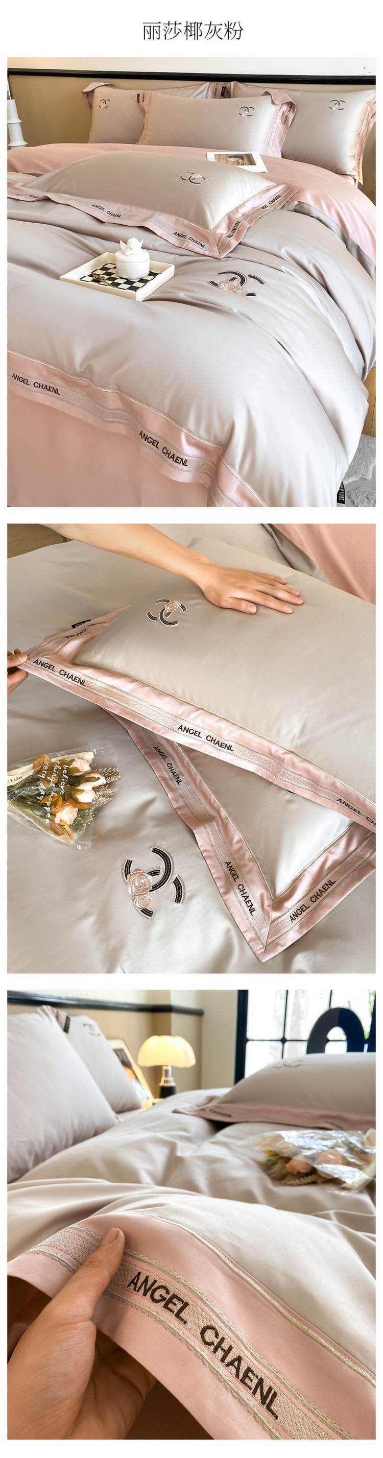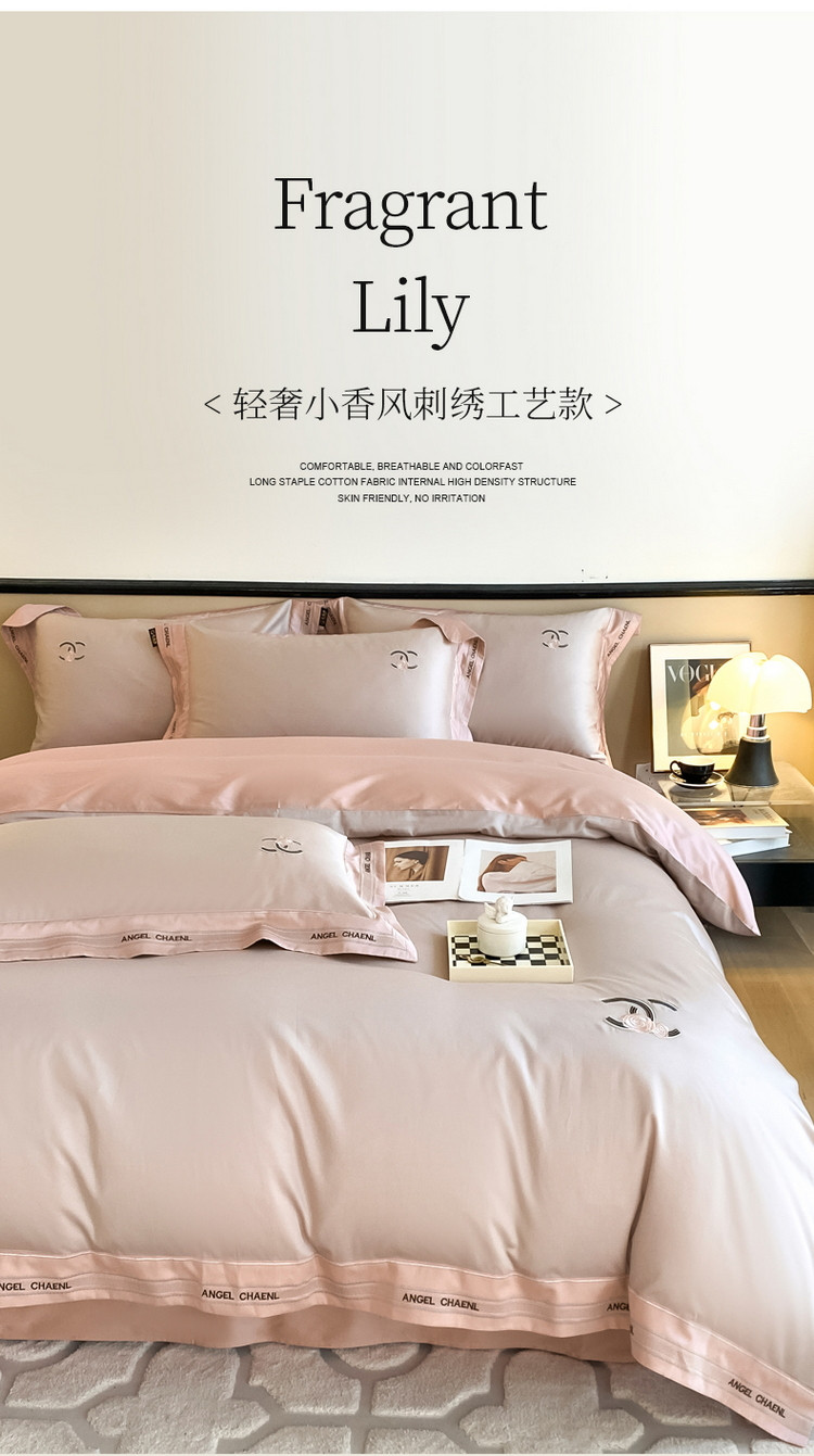 当前位置: 91家纺网 > 商品网购 > 床品套件 > 四件套 > 长绒棉四件套 > 618家纺 2023新款100支长绒棉轻奢刺绣四件套-丽莎系列 椰灰粉