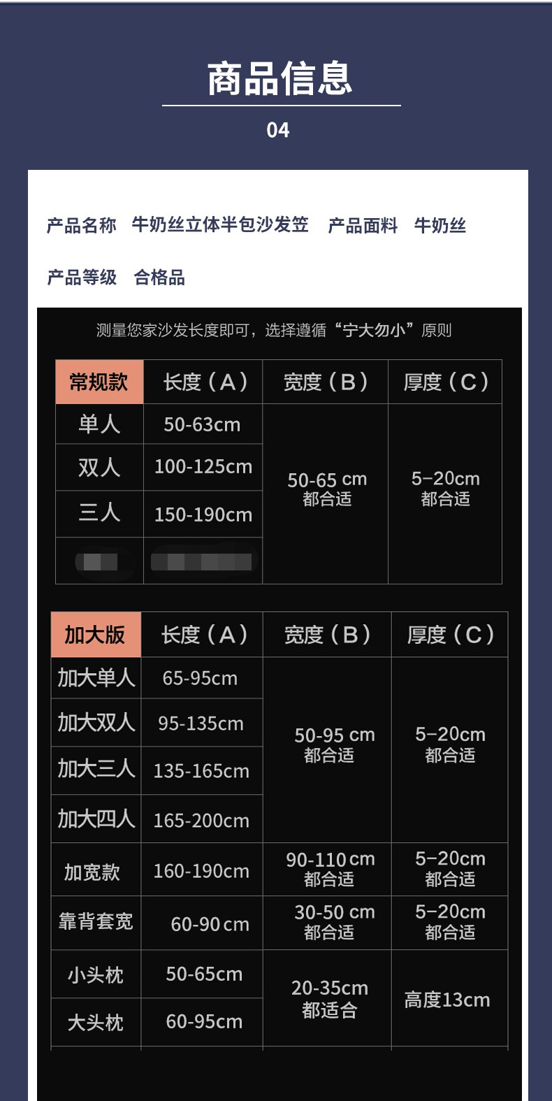靠背套宽 宽30-50长60-90高5-20cm | ¥7.00 |