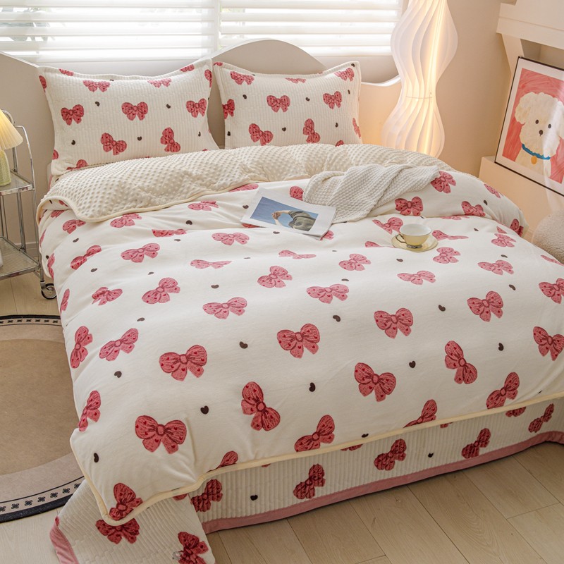 当前位置: 91家纺网 > 商品网购 > 床品套件 > 三件套 > 青竹苑2023新款床盖款四件套牛奶绒夹棉床盖宝宝绒豆豆被套学生三件套 洛丽塔
