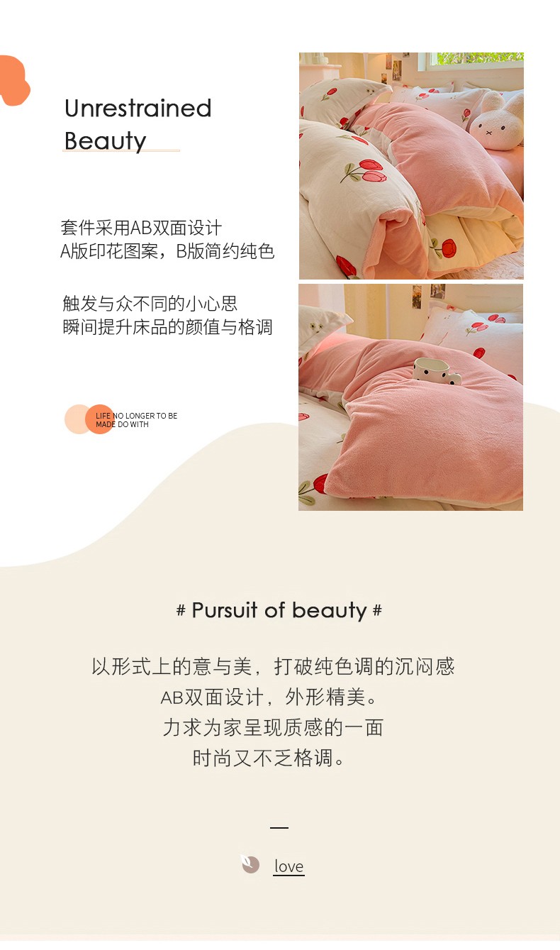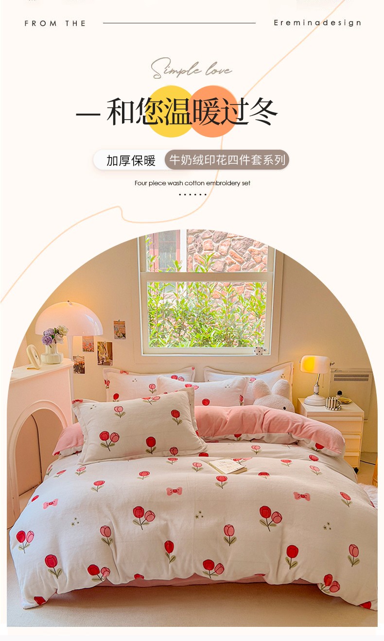 (总)慕尚家纺 2025新款豆豆绒刺绣四件套,大耳狗 白蓝,玫瑰 白粉