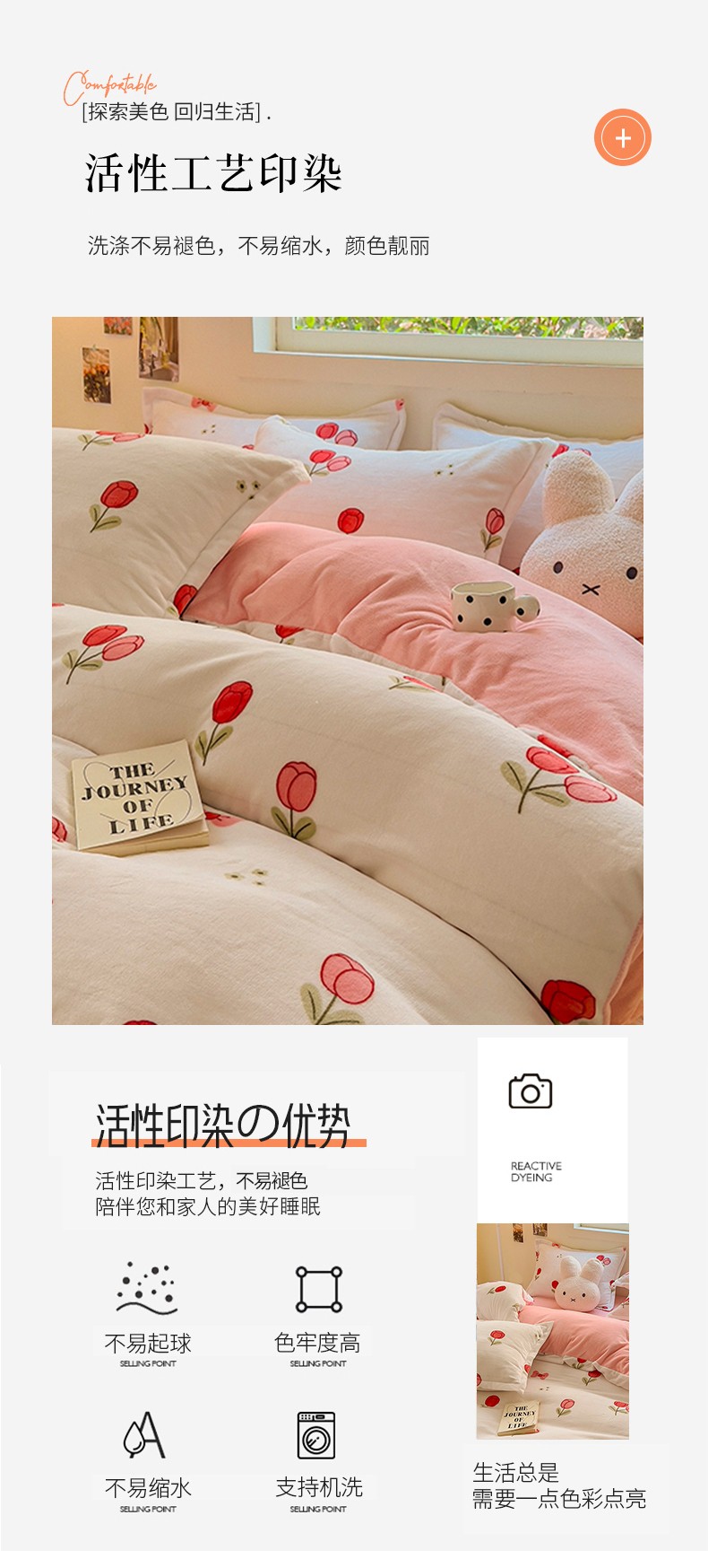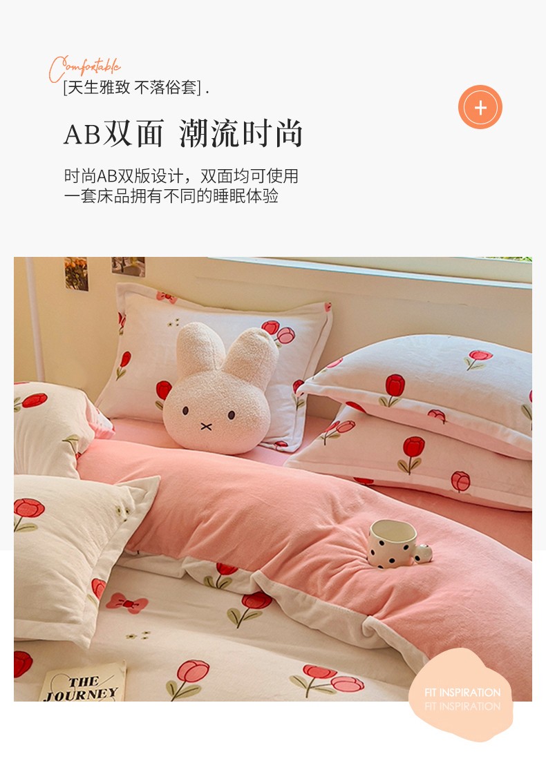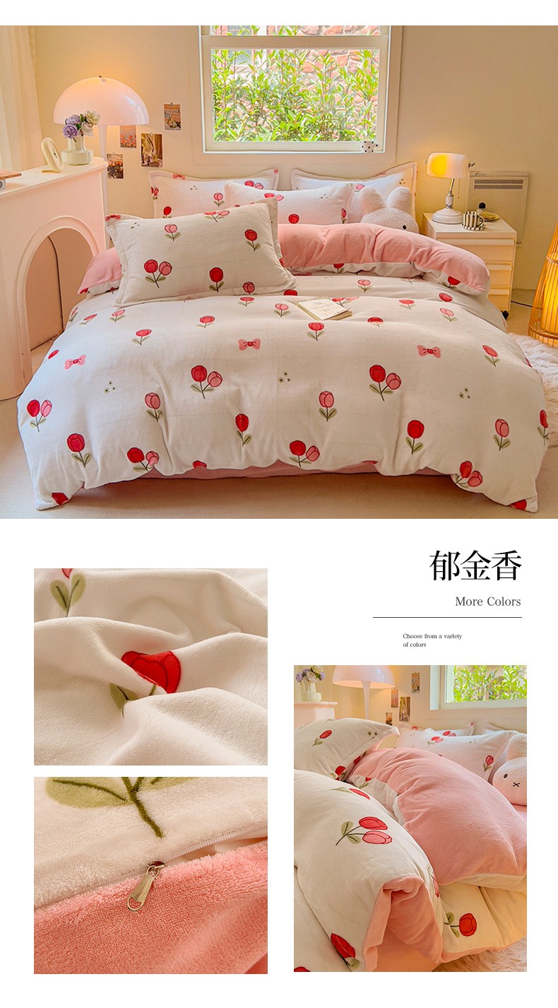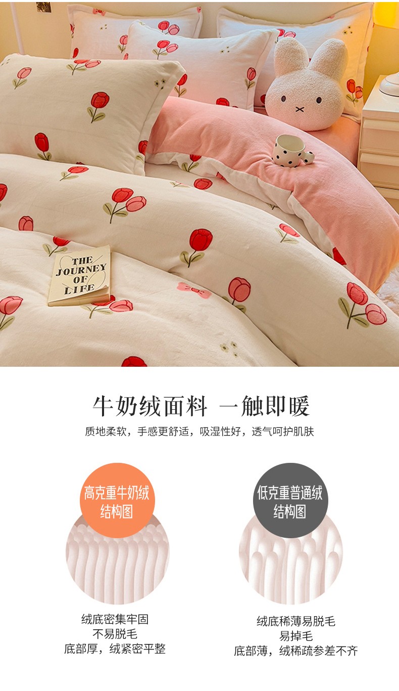 商品名称:慕尚 2025新款高克重加厚牛奶绒印花单被套-田园花卉系列 郁金香