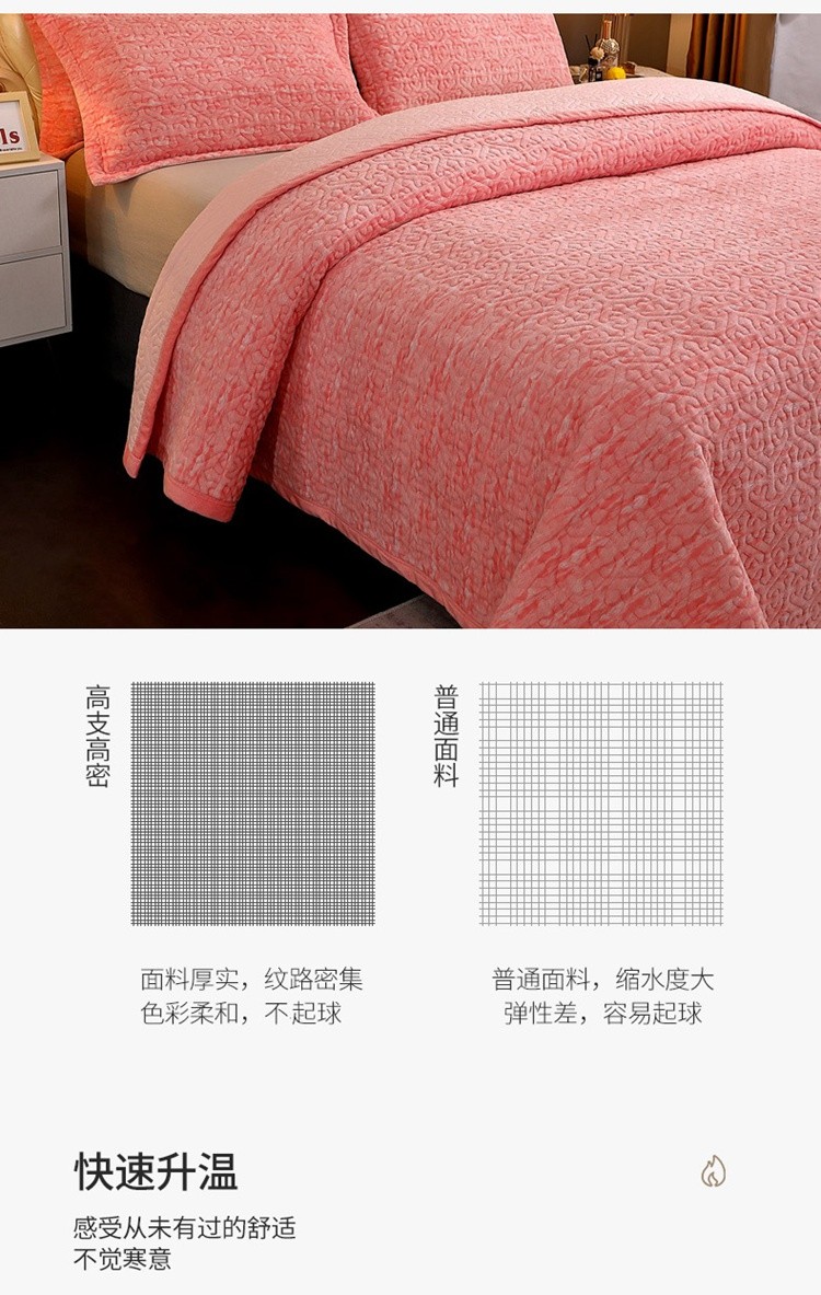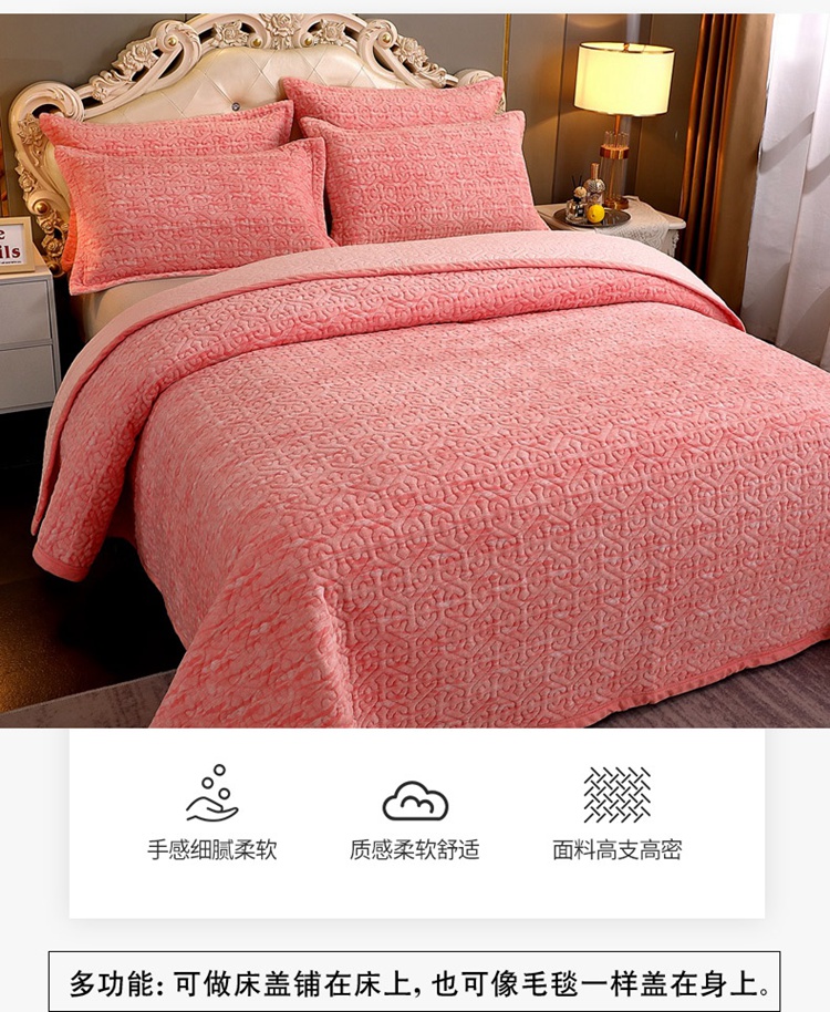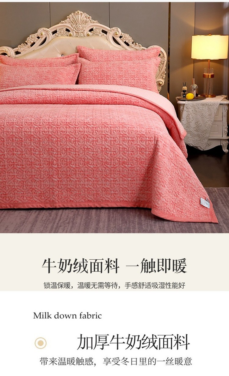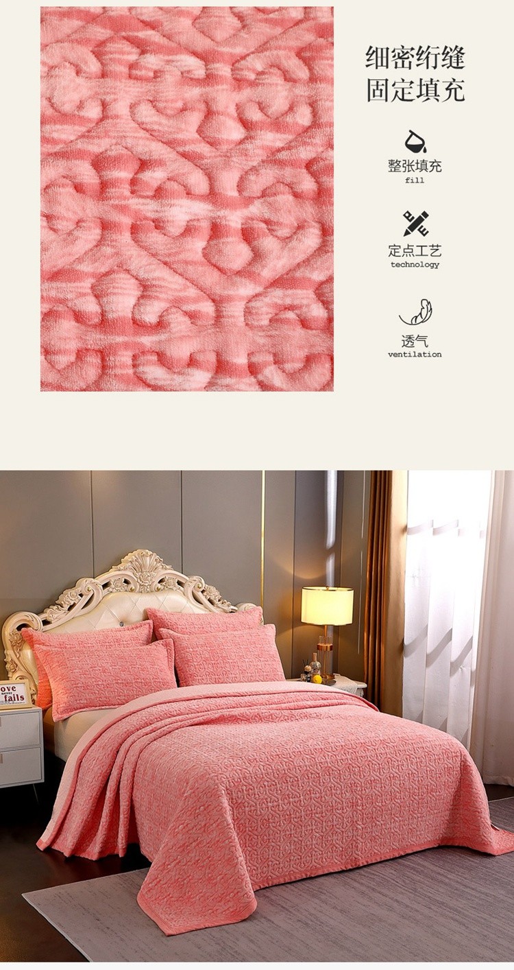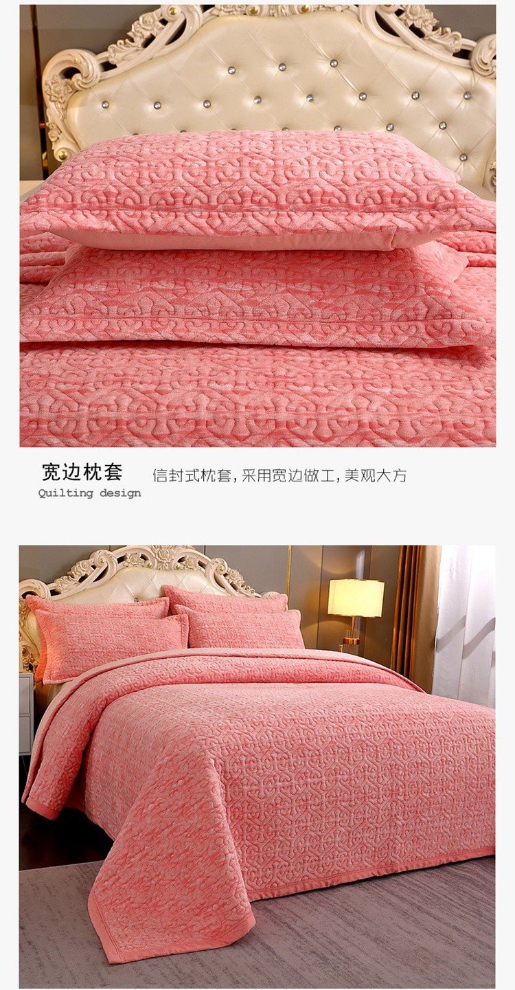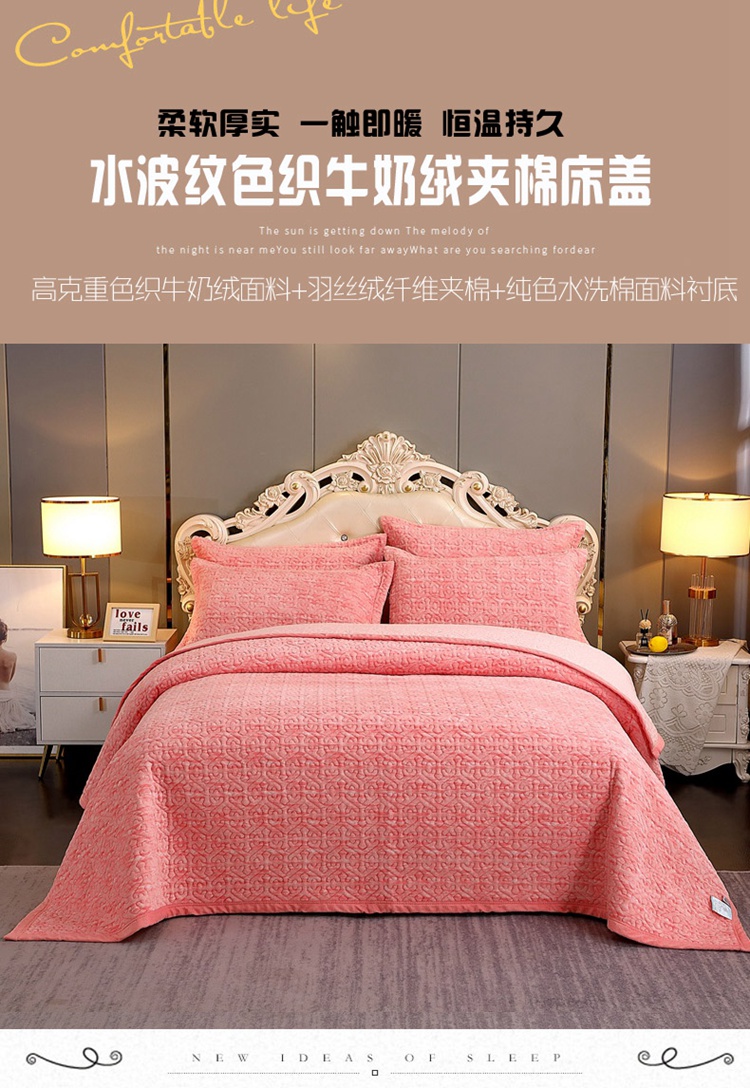 • 91家纺网 家纺一手货源 找家纺 2023新款水波纹色织牛奶绒床盖三件套 涟漪-粉玉