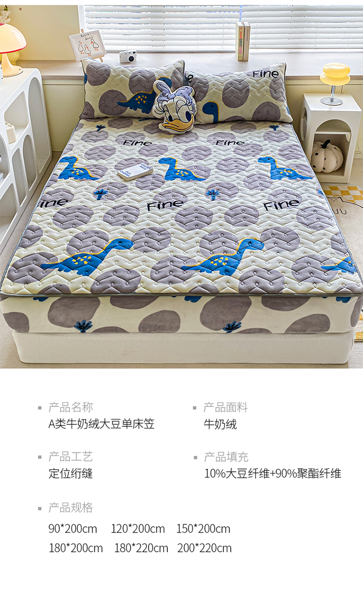 商品名称:卡伦家纺 2025新款A类牛奶绒大豆纤维抗菌夹棉床笠 星幻恐龙
