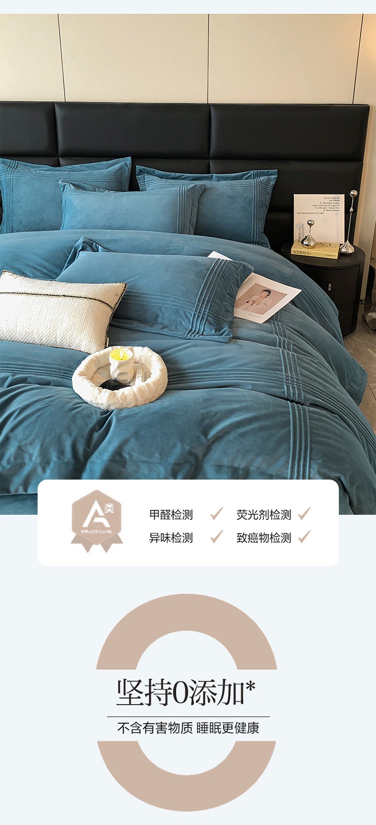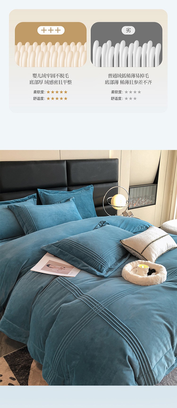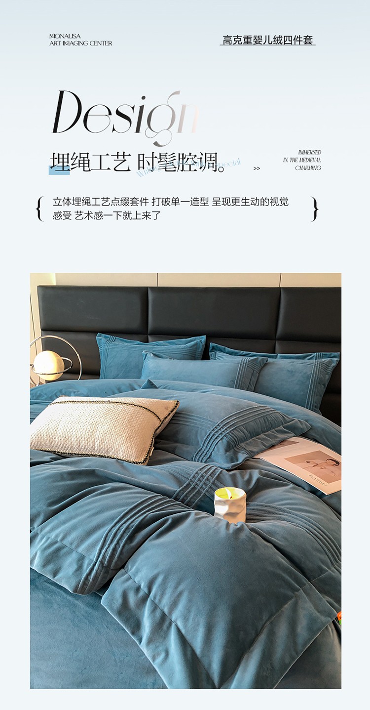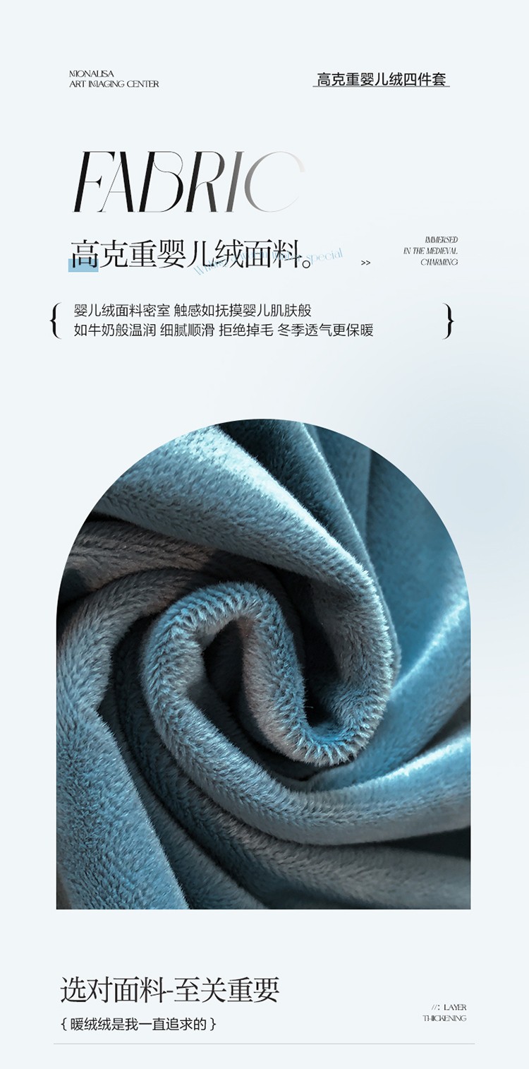 商品名称:嗯呢2023新款A类高克重婴儿绒牛奶绒埋绳保暖绒四件套 湖兰