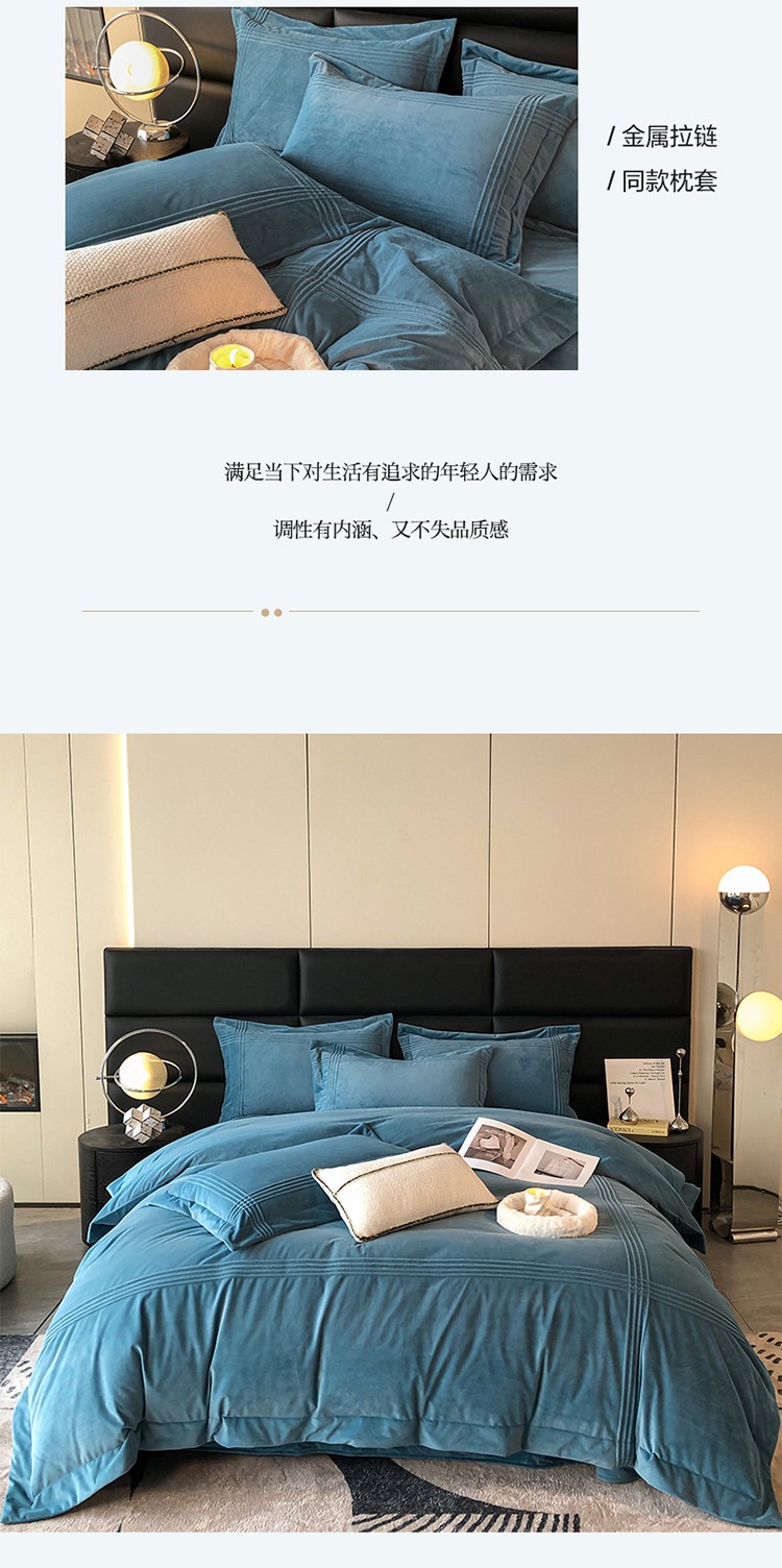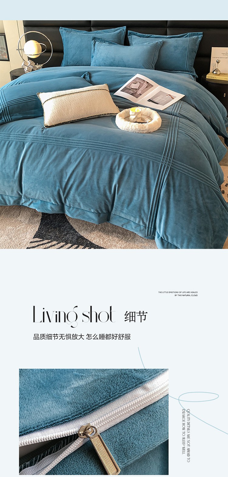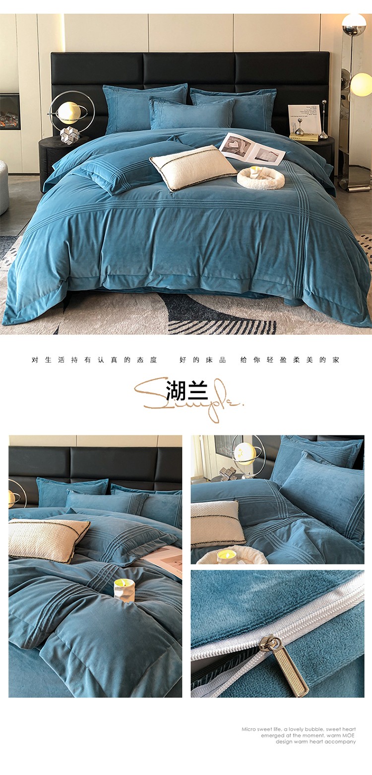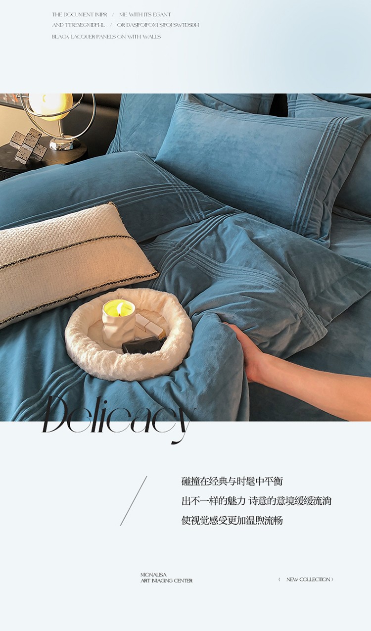 商品名称:嗯呢2023新款A类高克重婴儿绒牛奶绒埋绳保暖绒四件套 湖兰