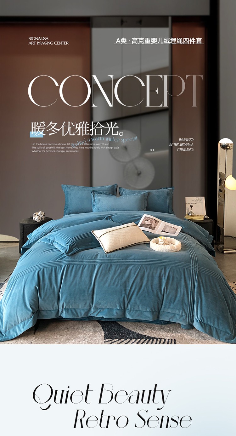 (总)嗯呢2023新款A类高克重全消光婴儿绒牛奶绒埋绳轻奢四件套,茶粉,丁香紫,湖兰,藕粉,天兰,烟灰