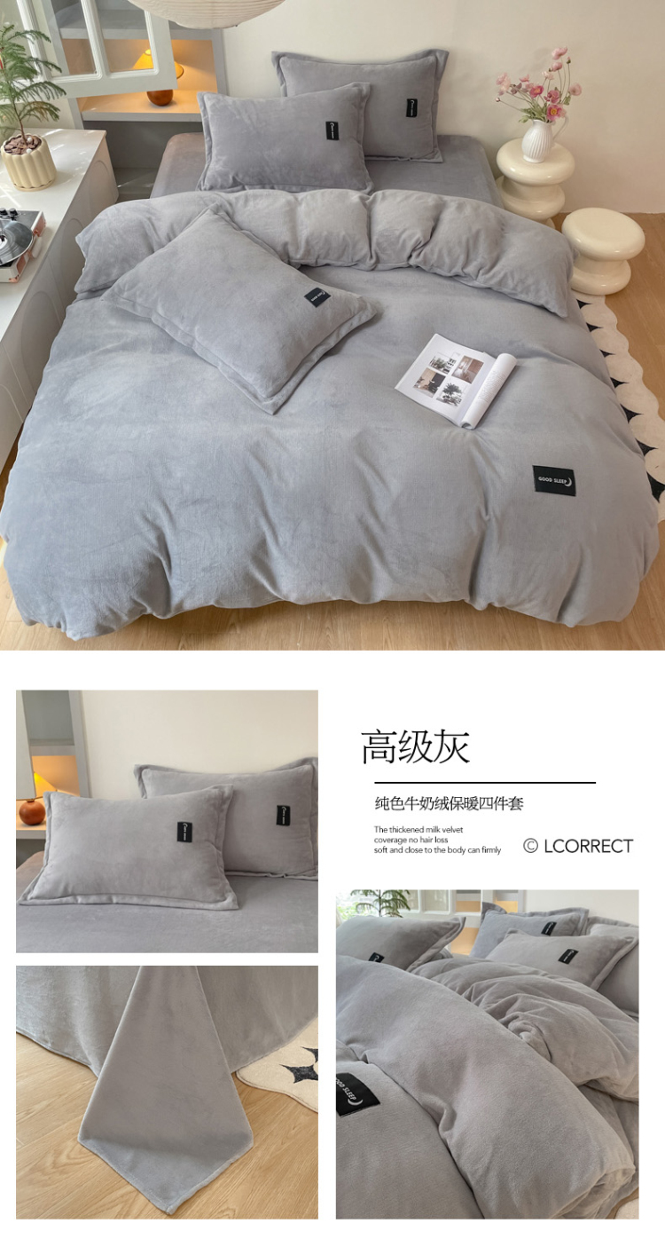当前位置: 91家纺网 > 商品网购 > 床品套件 > 四件套 > 牛奶绒四件套 > 柒月 2023新款纯色牛奶绒四件套 高级灰