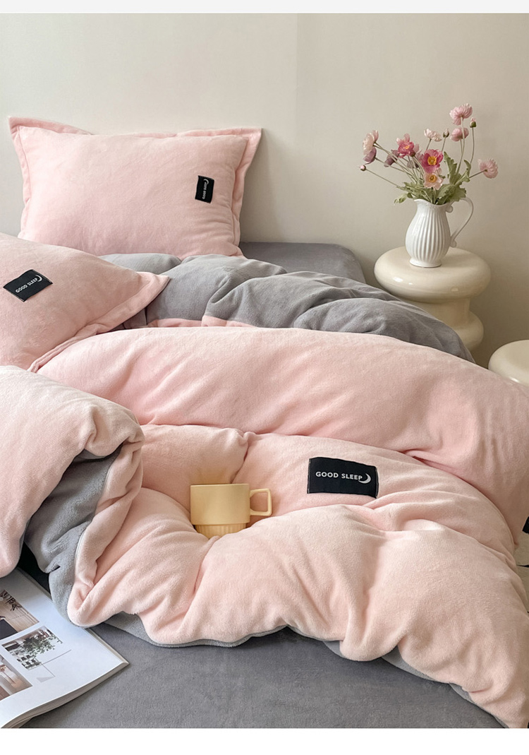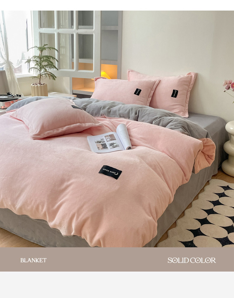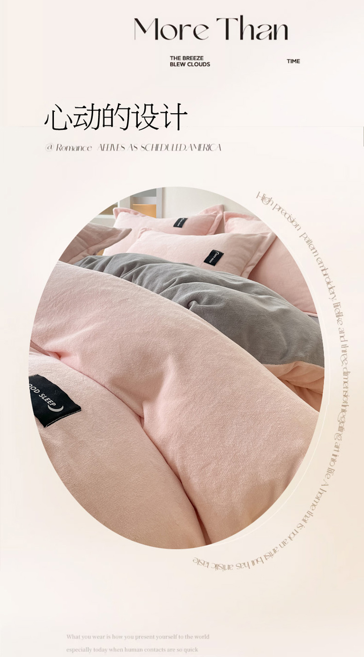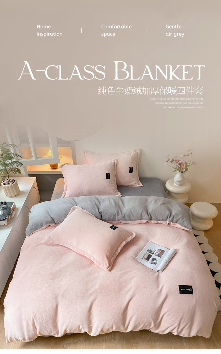当前位置: 91家纺网 > 商品网购 > 床品套件 > 四件套 > 牛奶绒四件套 > 柒月 2023新款纯色牛奶绒四件套 樱花粉+绅士灰