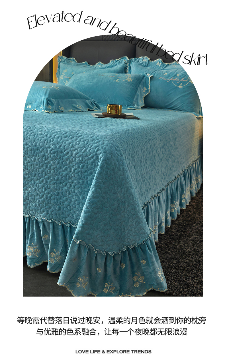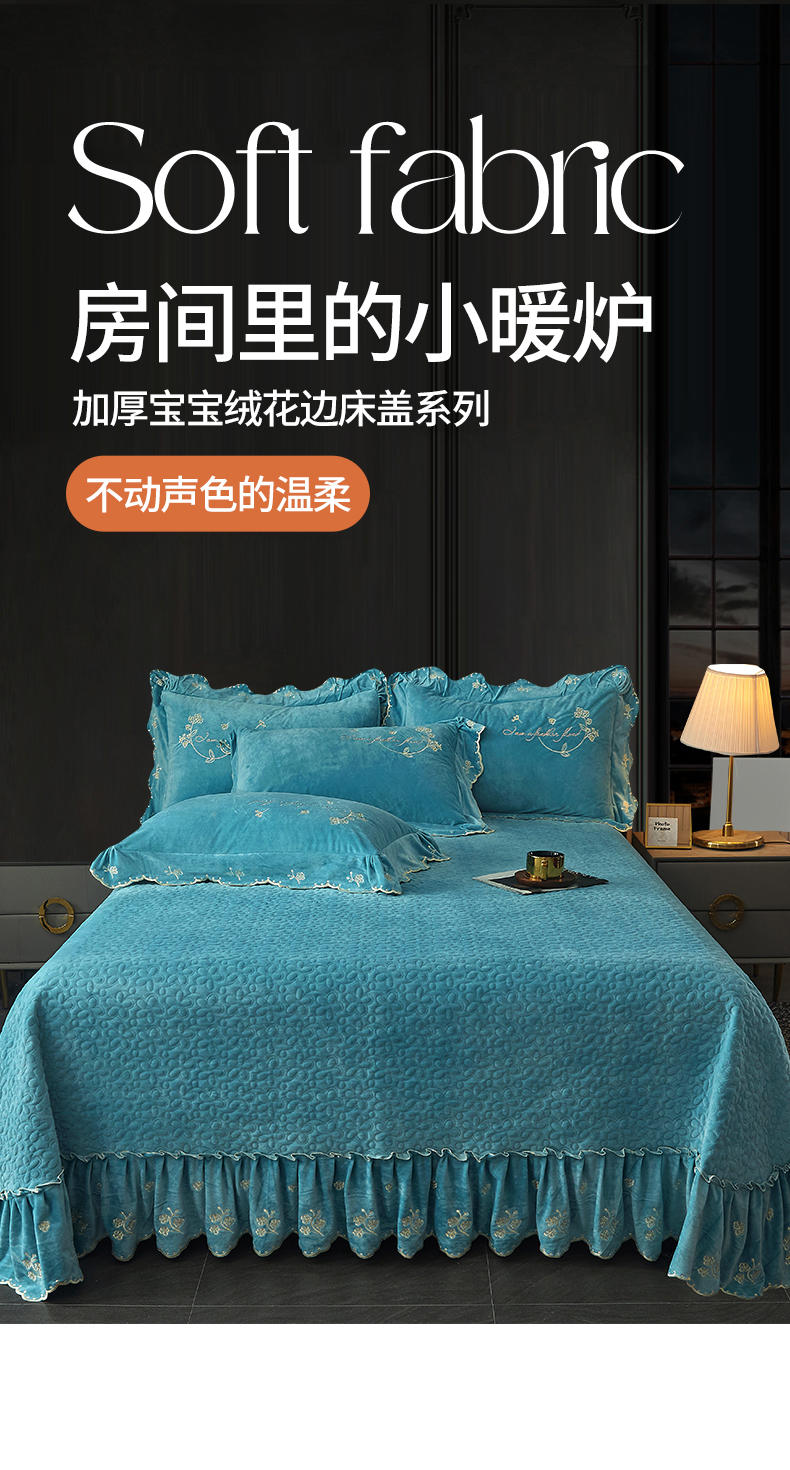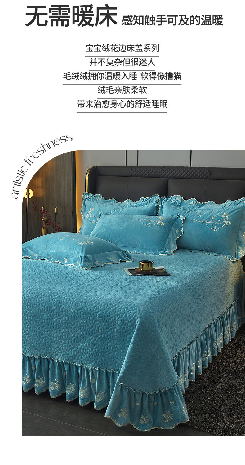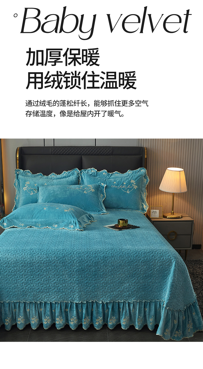 (总)恒爱 2022新款秋冬轻奢宝宝绒刺绣单床裙,爱玛橙,宾利蓝,豆沙红,橄榄绿,高级灰,酒红,梦想粉,浅灰蓝,温馨粉,喜庆红,香妃粉,香芋紫