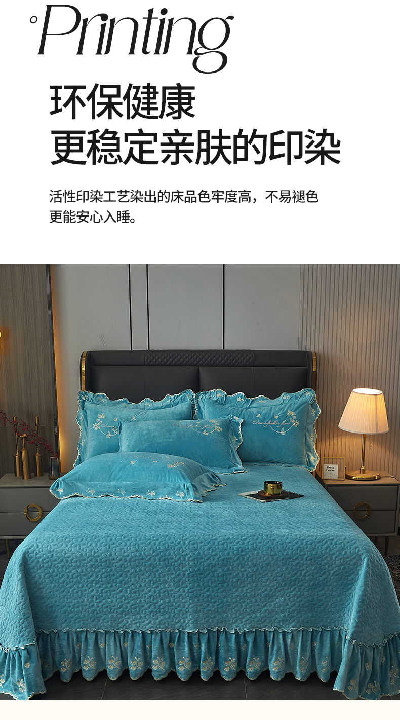 (总)恒爱 2022秋冬水晶绒翩翩花舞夹棉床裙四件套,大红色,豆沙红,橄榄绿,公主粉,桔色,咖啡色,孔雀绿,拉菲红,罗兰紫,玫红色,美人玉,米白色,米驼色,抹茶绿,浅灰色,紫色