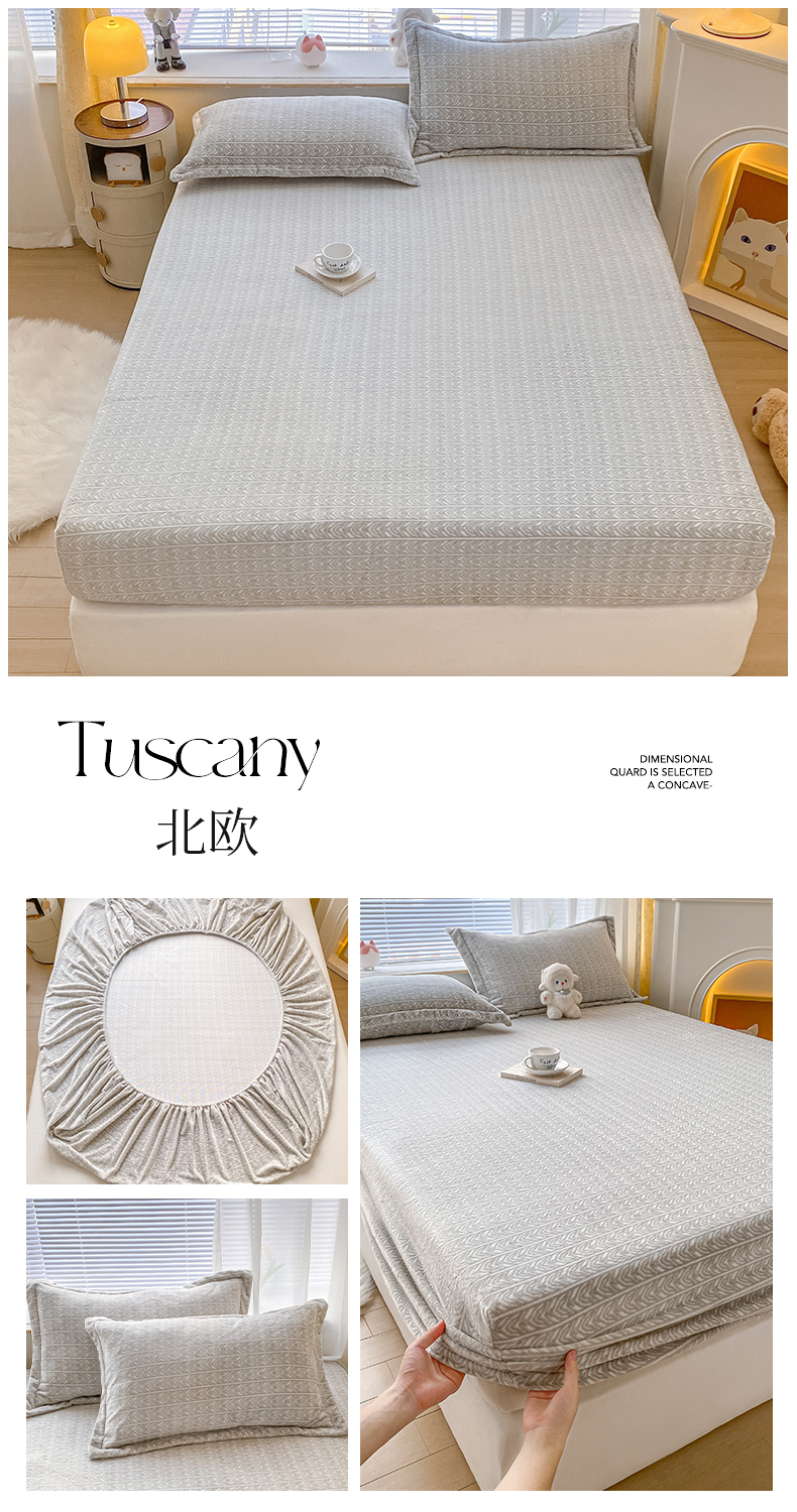 (总)欧邦 2025新款提花暖阳绒单床笠,苍穹蓝,初雪白,海棠粉,慕斯灰,青瓷绿,檀木咖