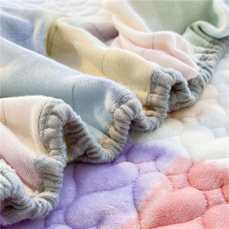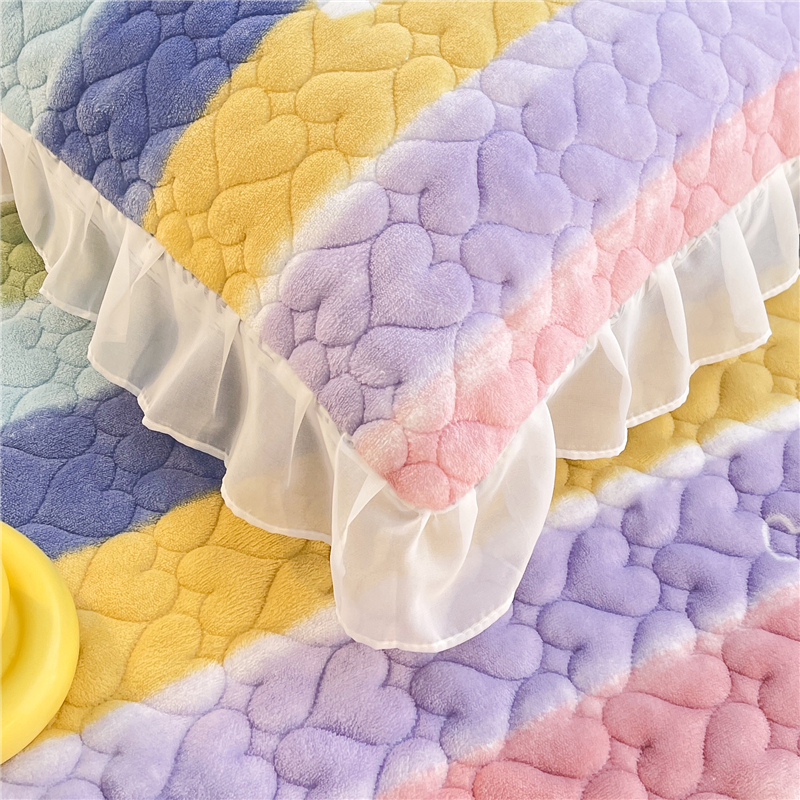 • 91家纺网 家纺一手货源 找家纺 喜居 2023新款印花牛奶绒床笠花边款牛奶绒床笠大豆夹棉床笠 彩虹桃子