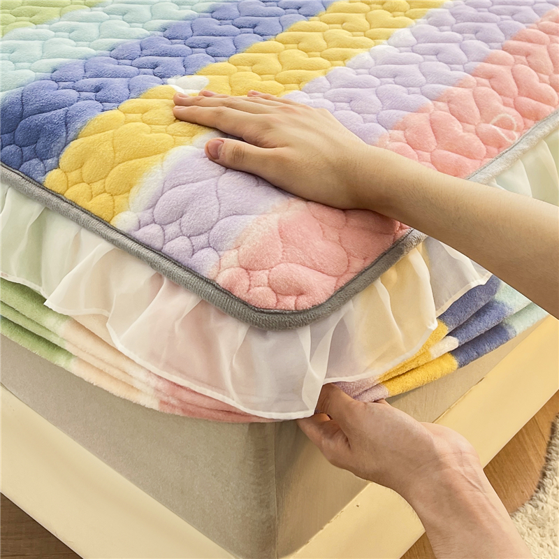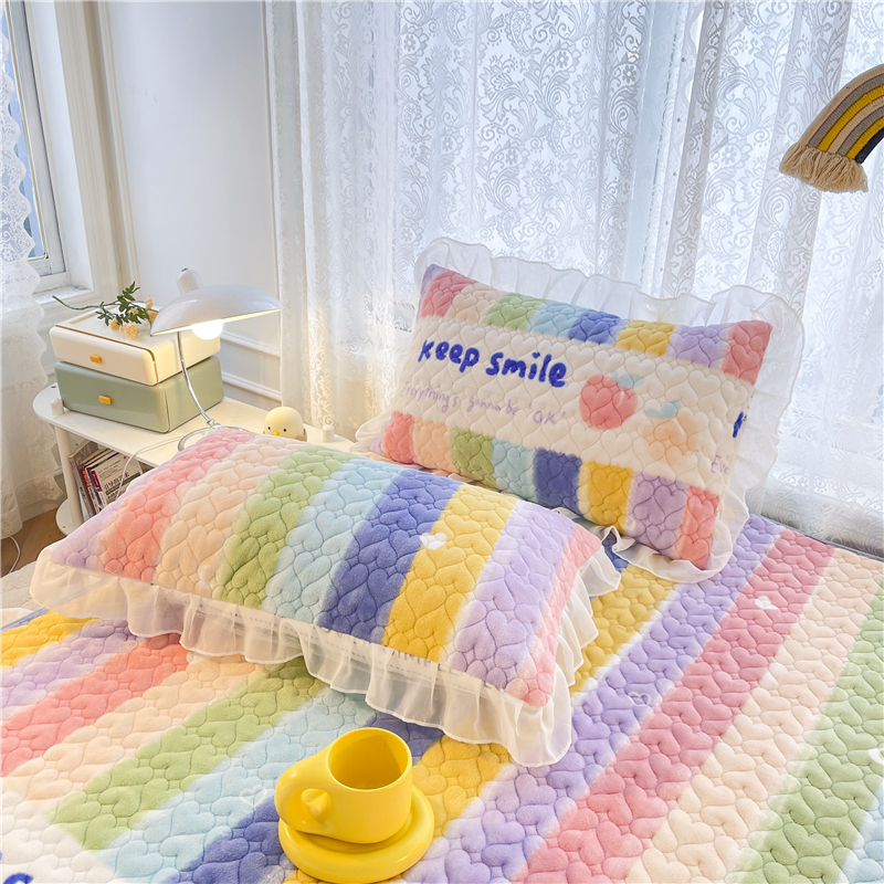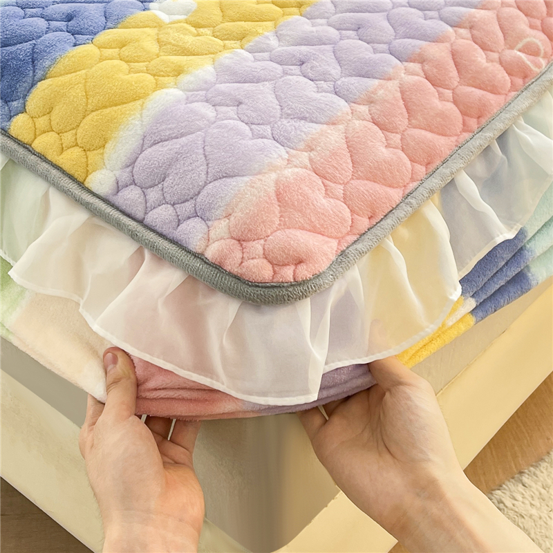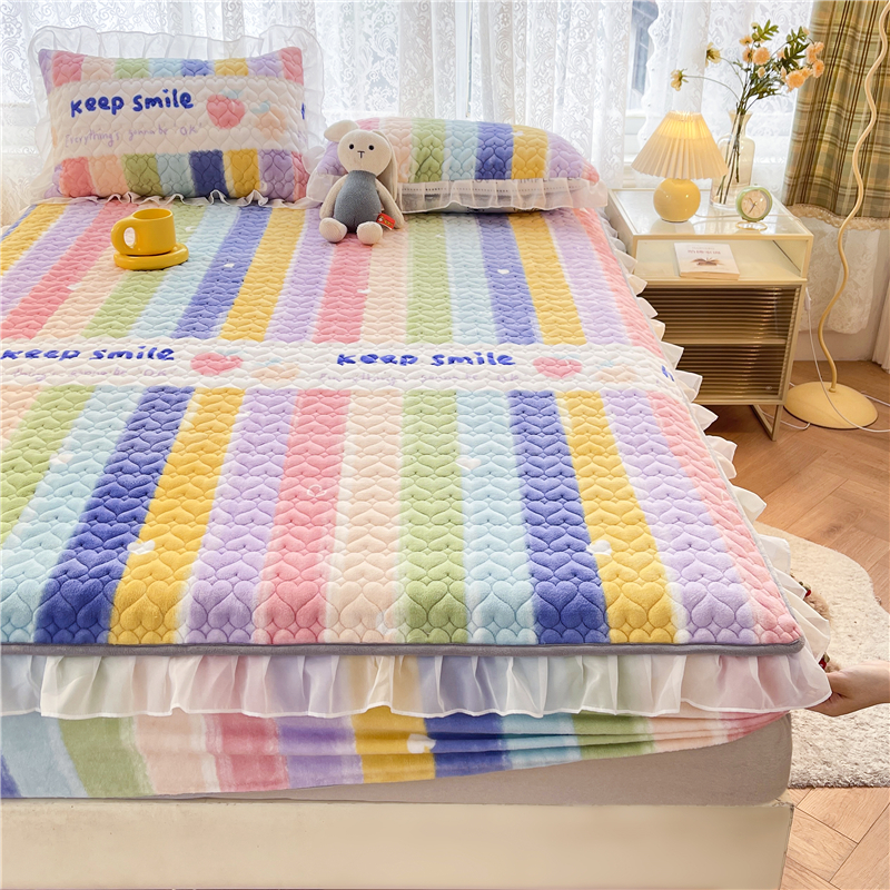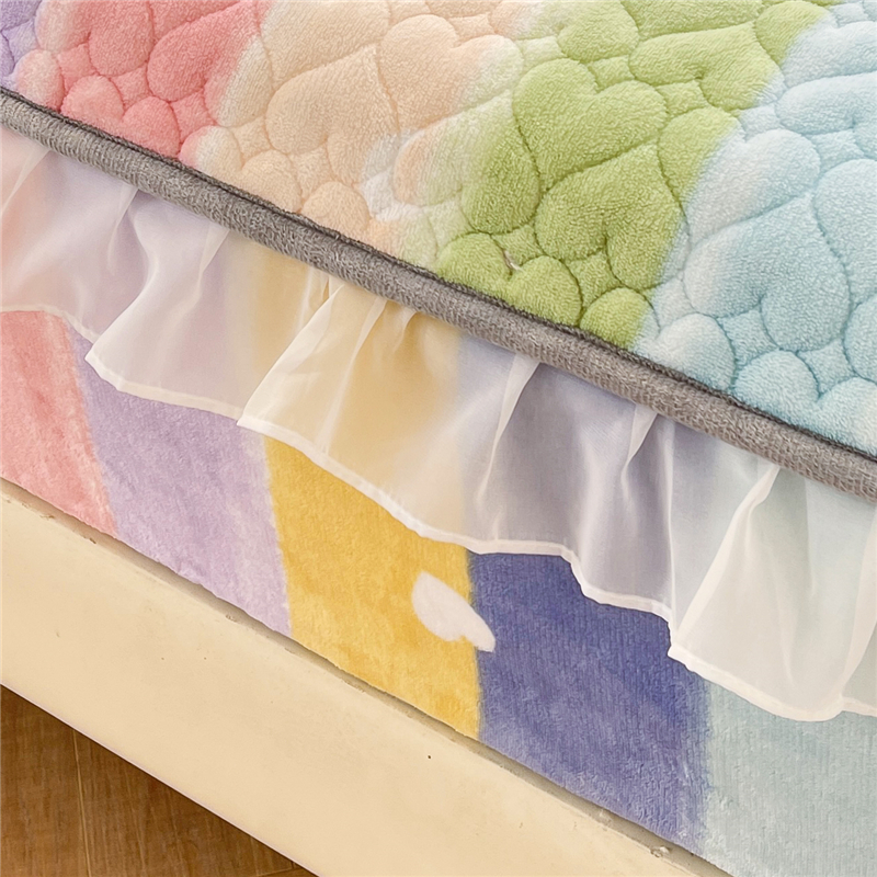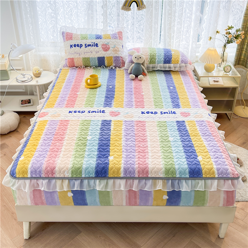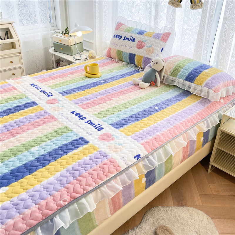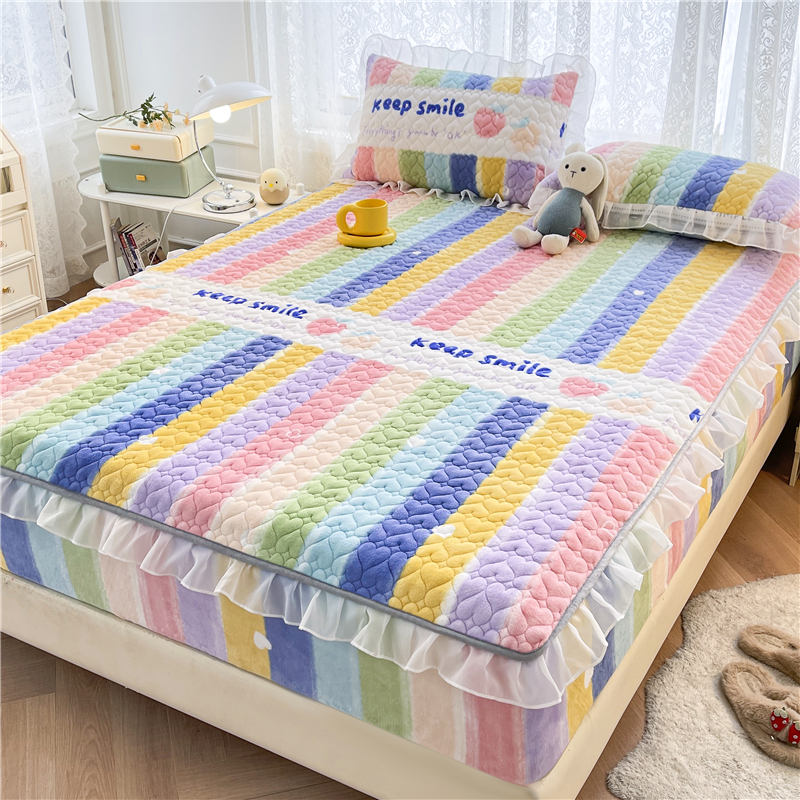 喜居 2023新款印花牛奶绒床笠花边款牛奶绒床笠大豆夹棉床笠 彩虹桃子