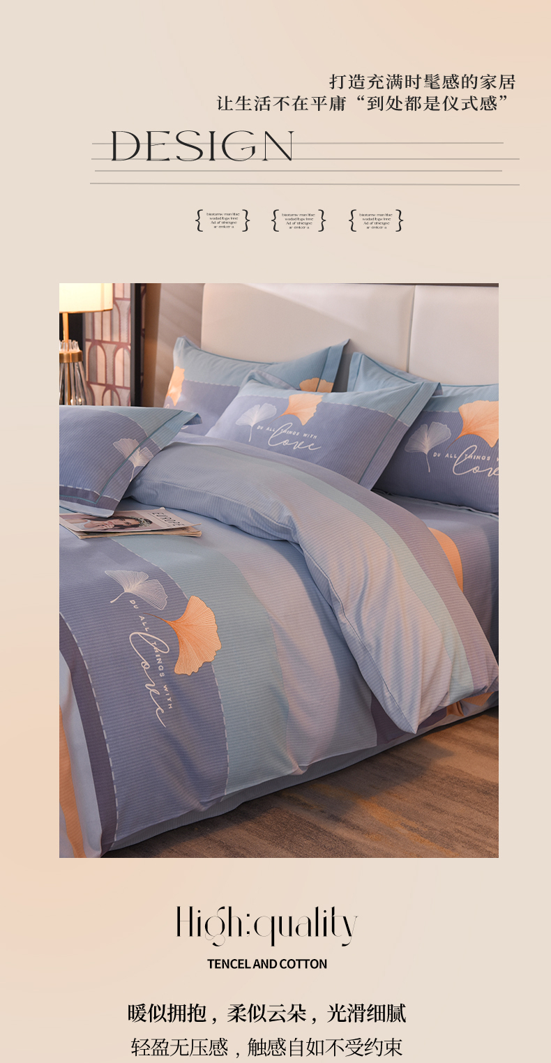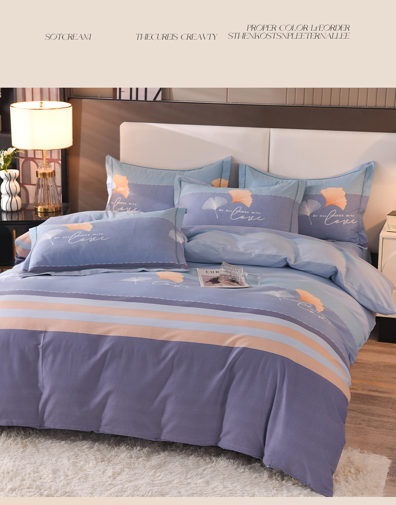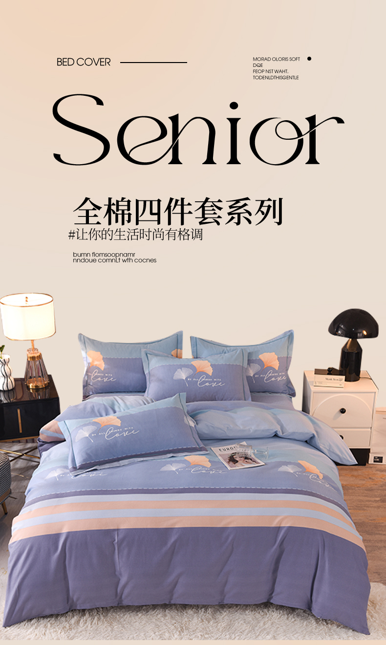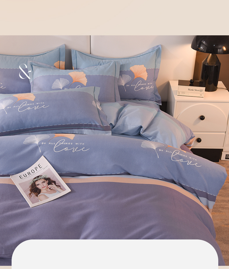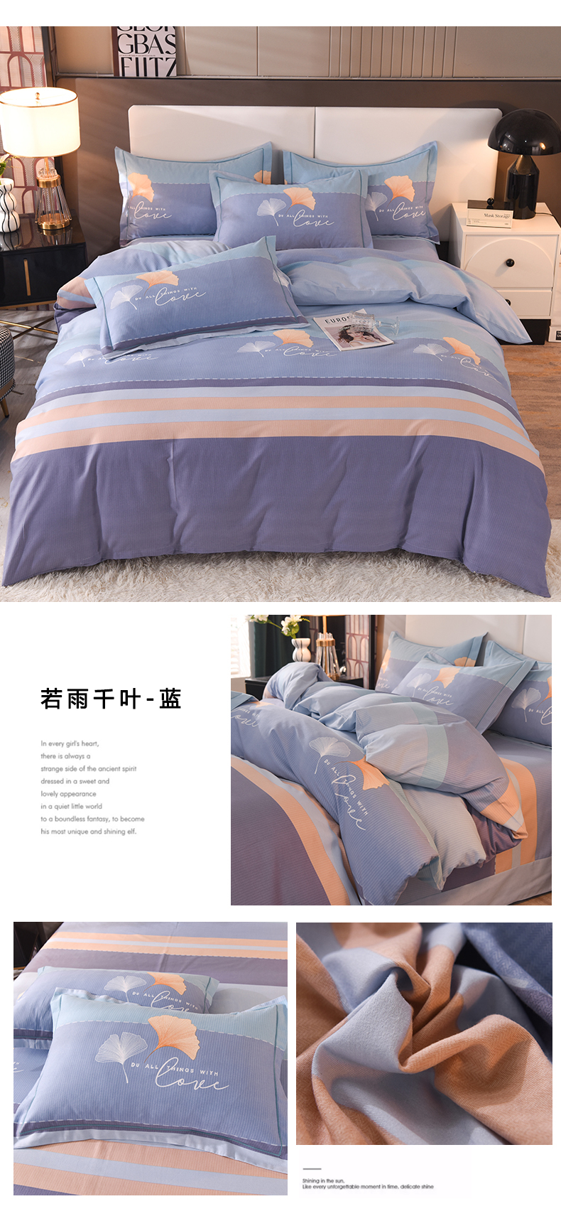 当前位置: 91家纺网 > 商品网购 > 床品套件 > 四件套 > 全棉普通四件套 > 简如 2025新款全棉磨毛印花四件套 若雨千叶-蓝