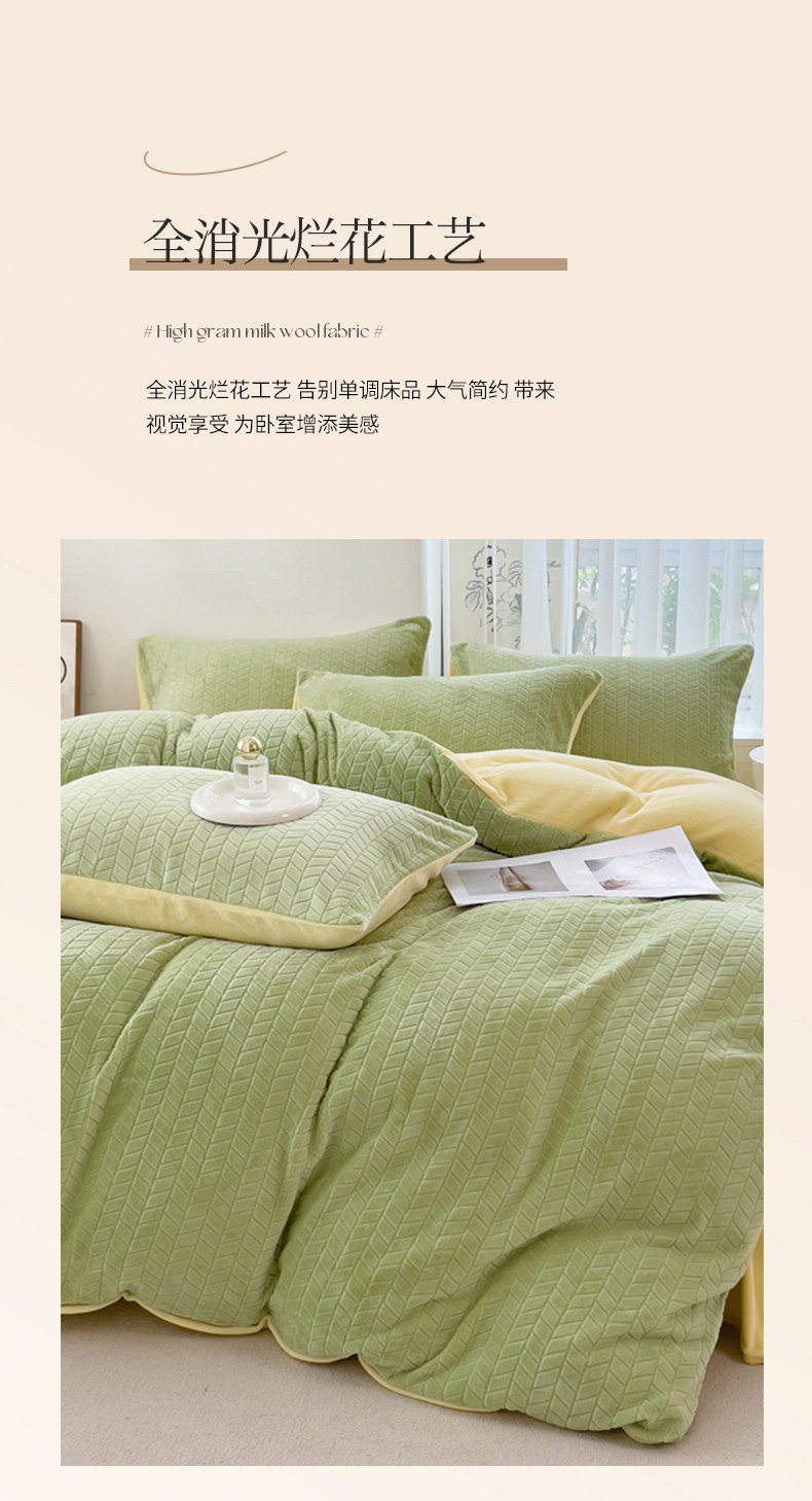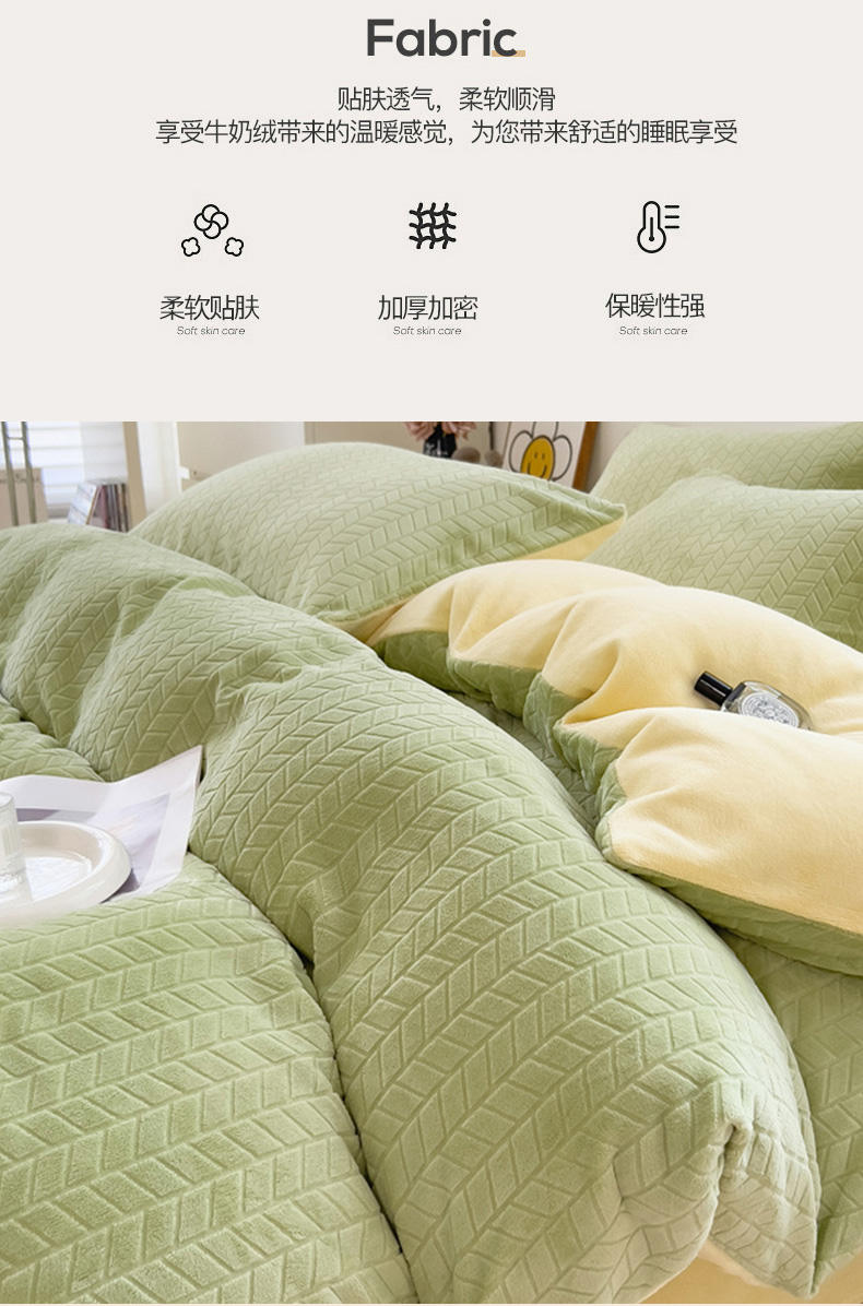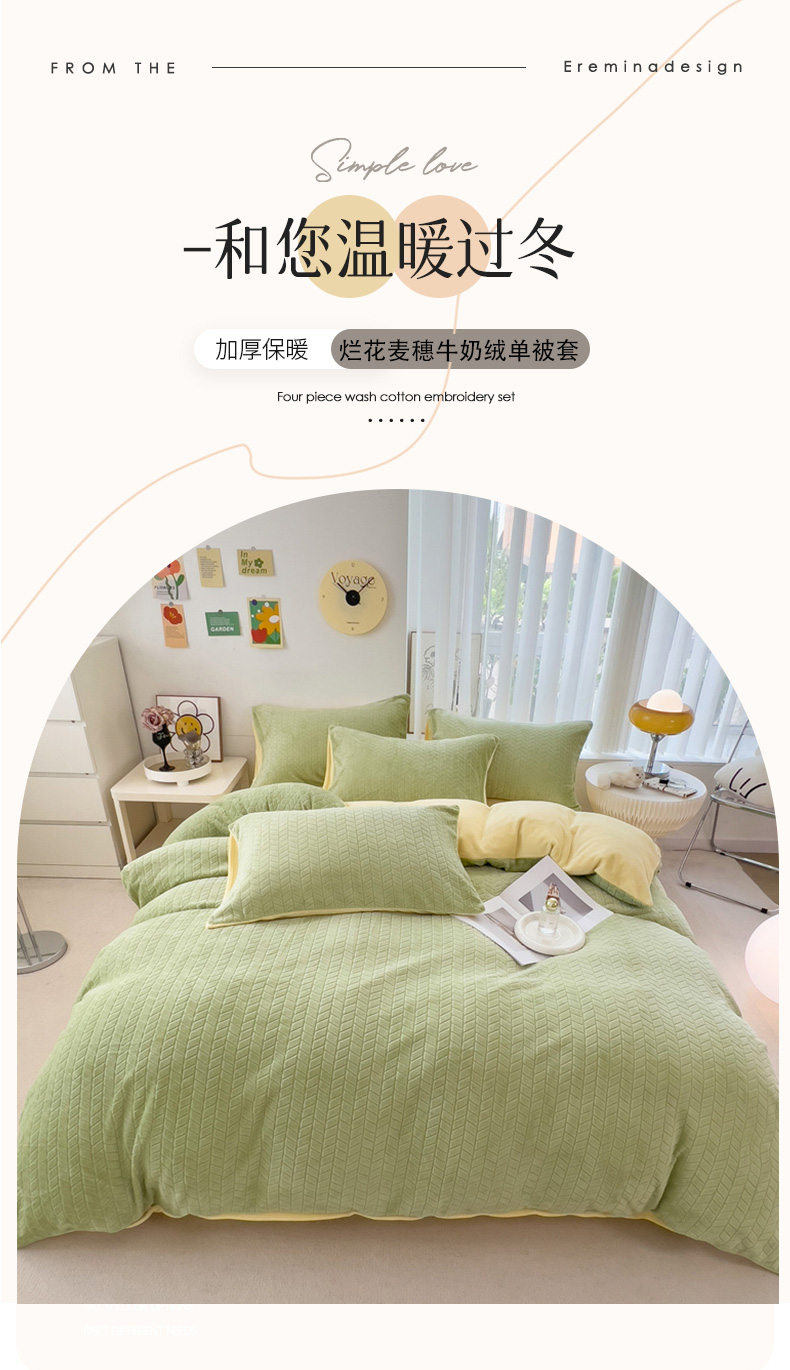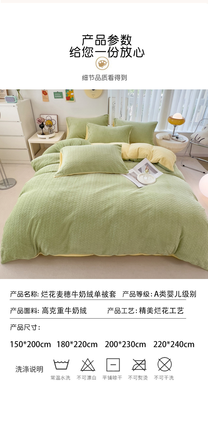 商品名称:全季家居 2023新款小清新A类高克重加厚印花牛奶绒被套单件 果绿+奶黄