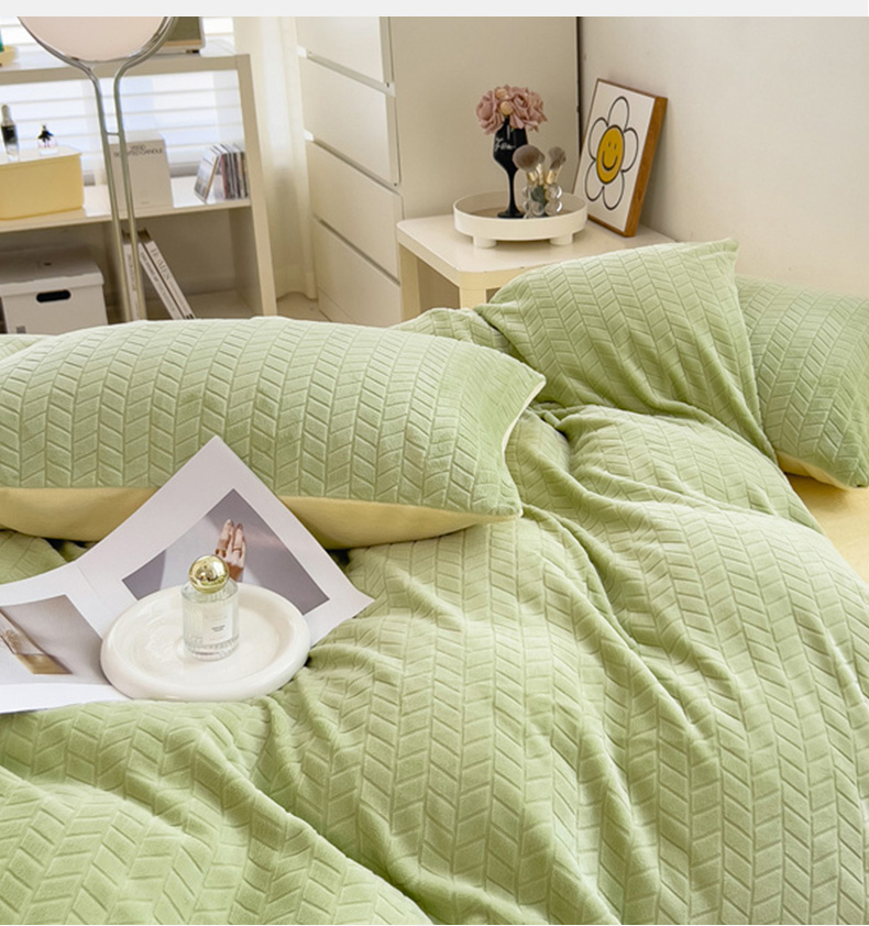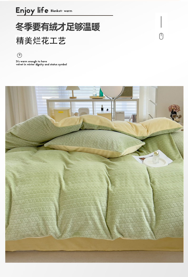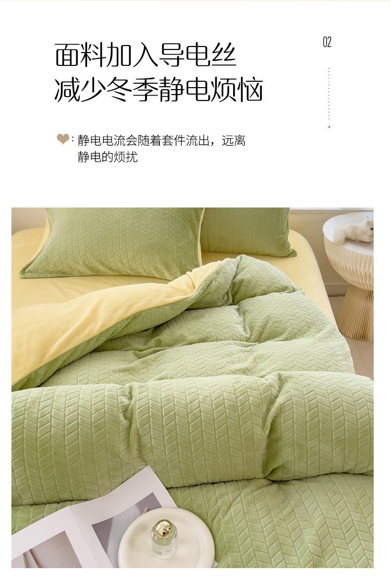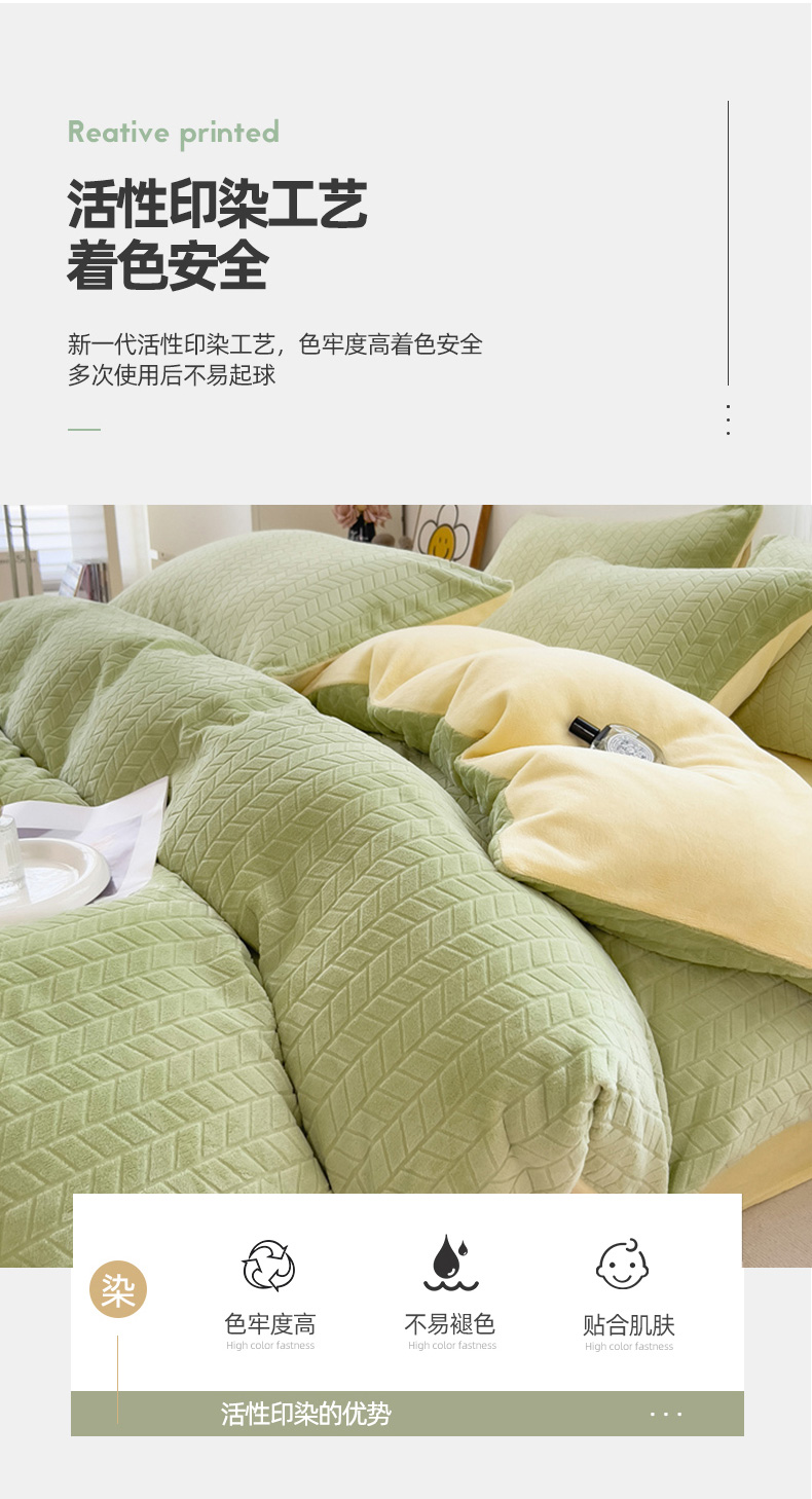 商品名称:全季家居 2023新款小清新A类高克重加厚印花牛奶绒被套单件 果绿+奶黄